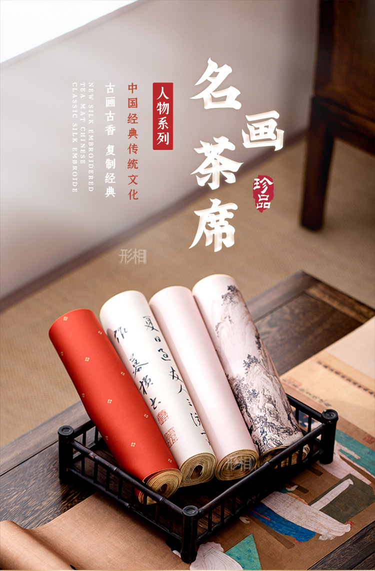 形相茶席 轻奢系列 横塘雨歇图/石湖图 新款名画复古桌旗中式禅意新茶席茶桌垫布中国风功夫茶桌茶旗垫子