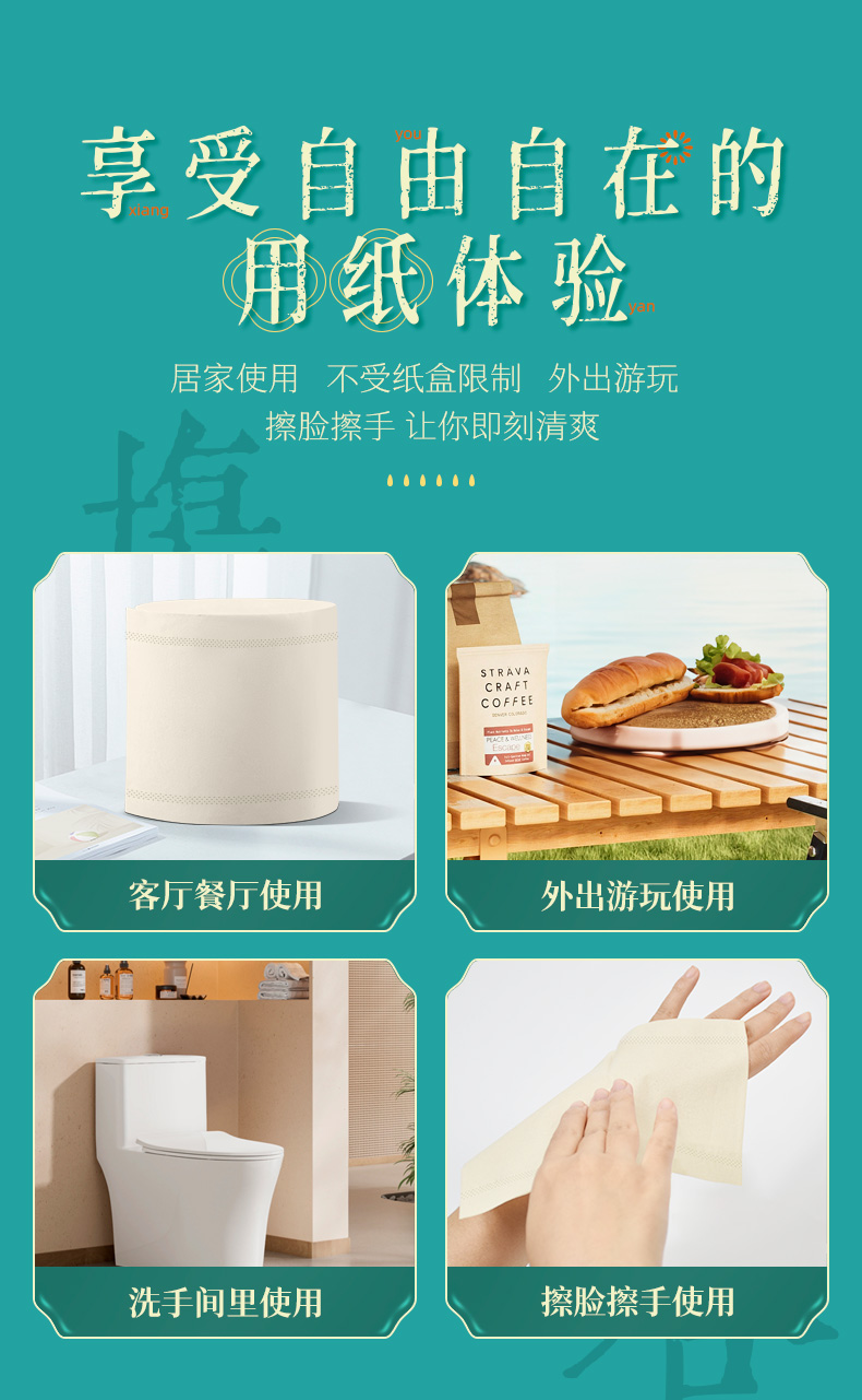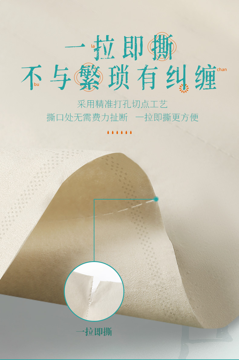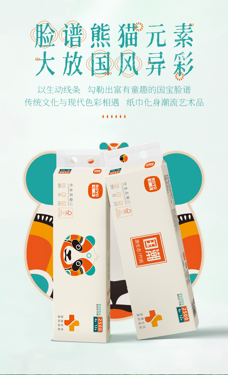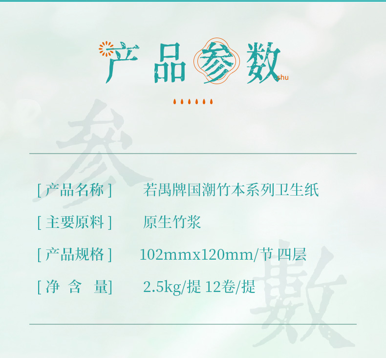若禺无芯卷纸国潮竹本系列4层加厚2500克/卷原生竹浆圆卷1件12卷/提到手6提RJ1503