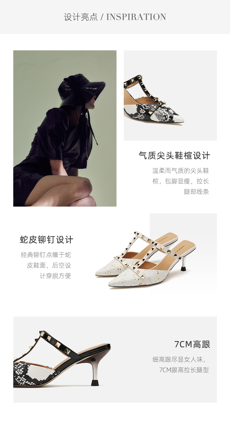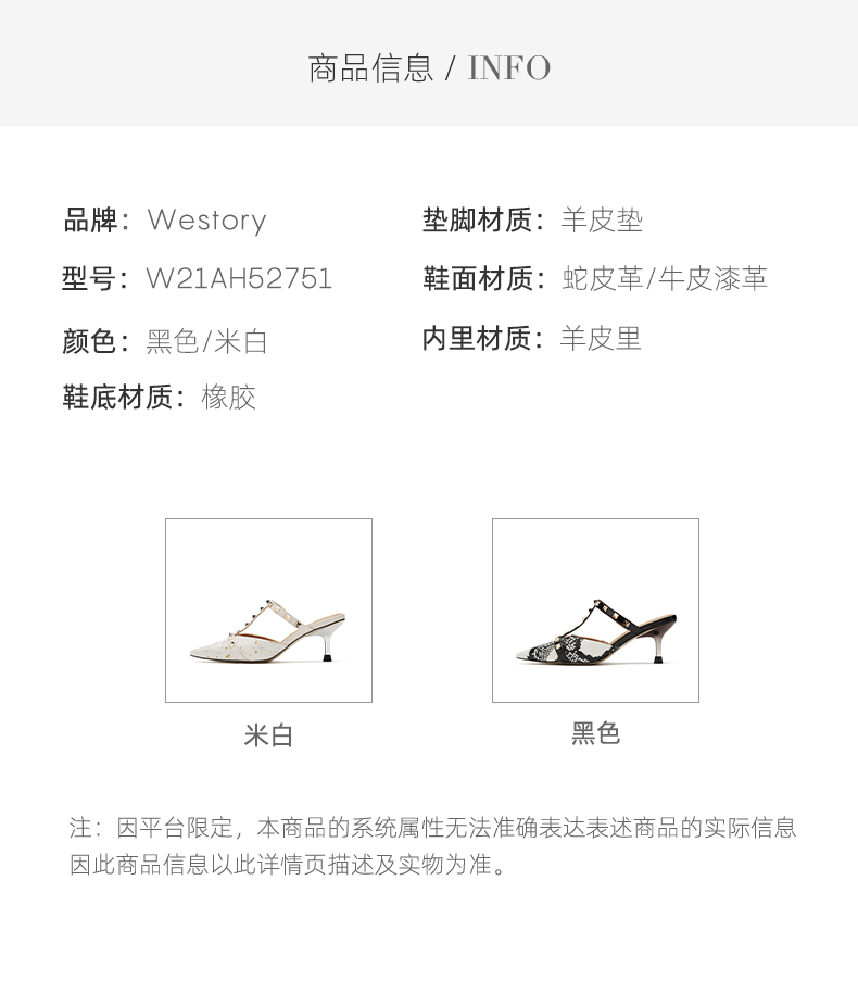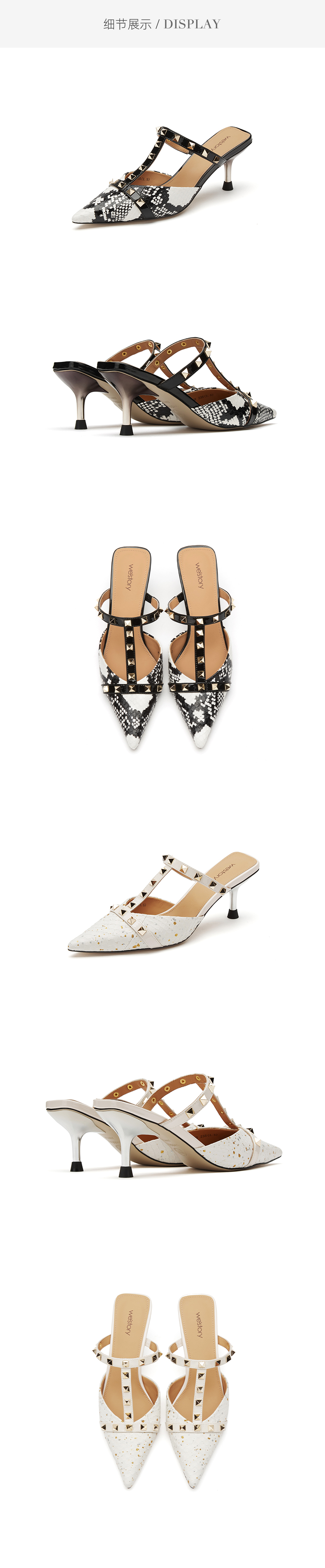 westory尖头细跟高跟鞋女2021春季新款链条一脚蹬凉鞋W21AH52751