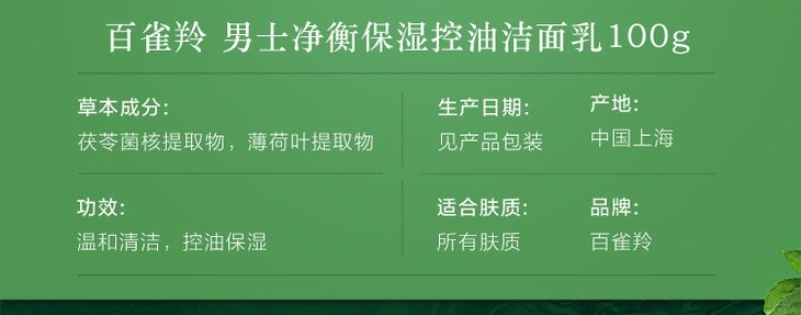 百雀羚男士净衡保湿控油洁面乳100g