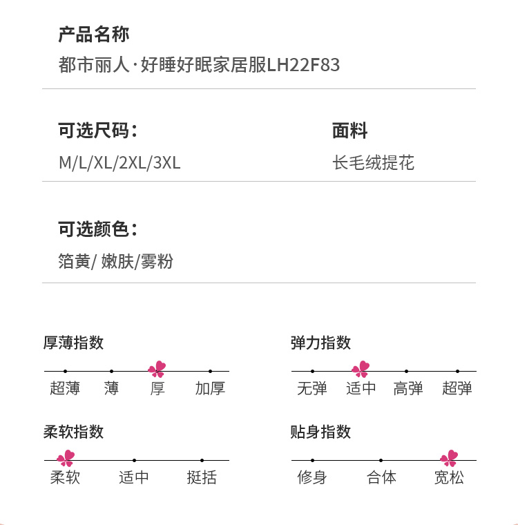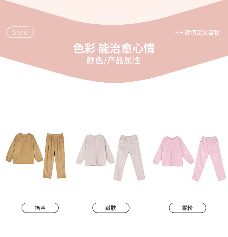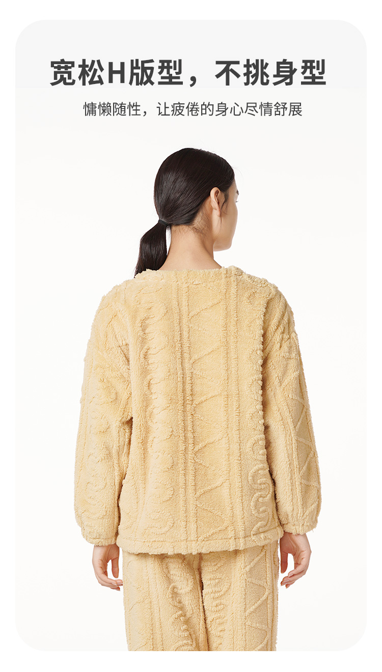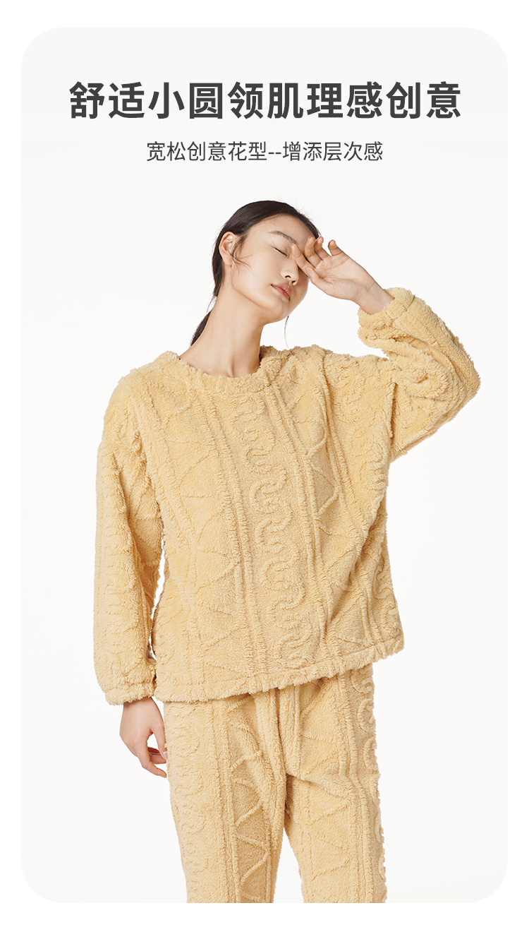 都市丽人生活家居法兰绒套装长毛绒提花厚家居服长袖睡衣LH22F8