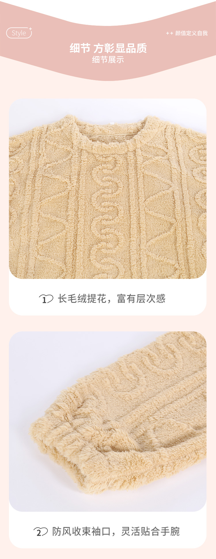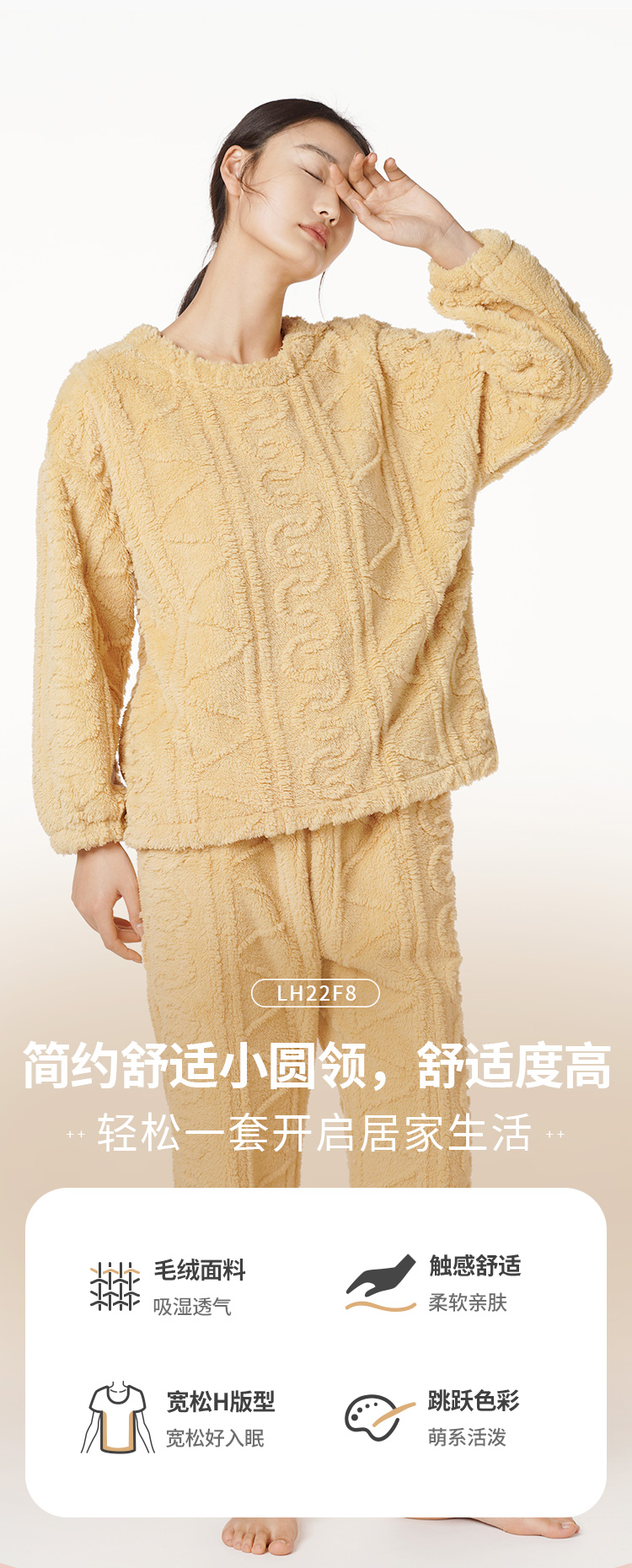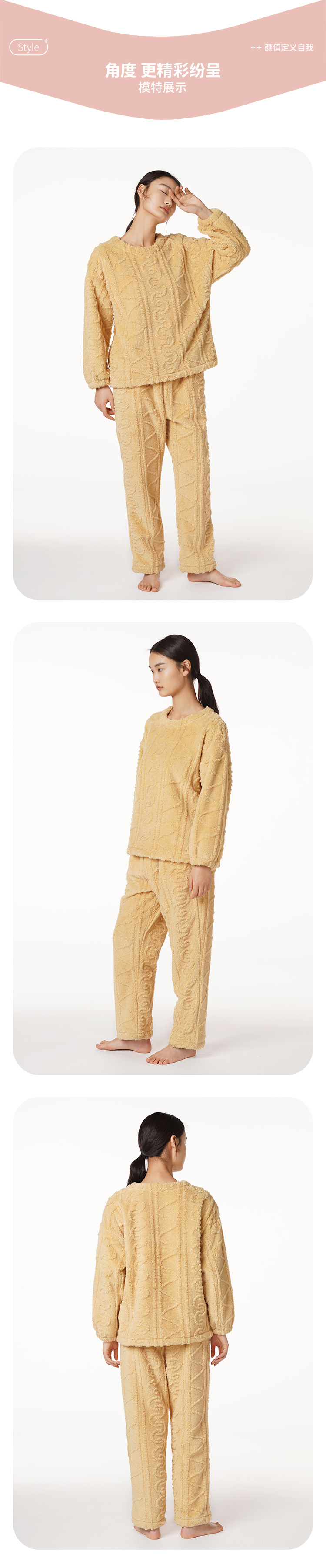 都市丽人生活家居法兰绒套装长毛绒提花厚家居服长袖睡衣LH22F8