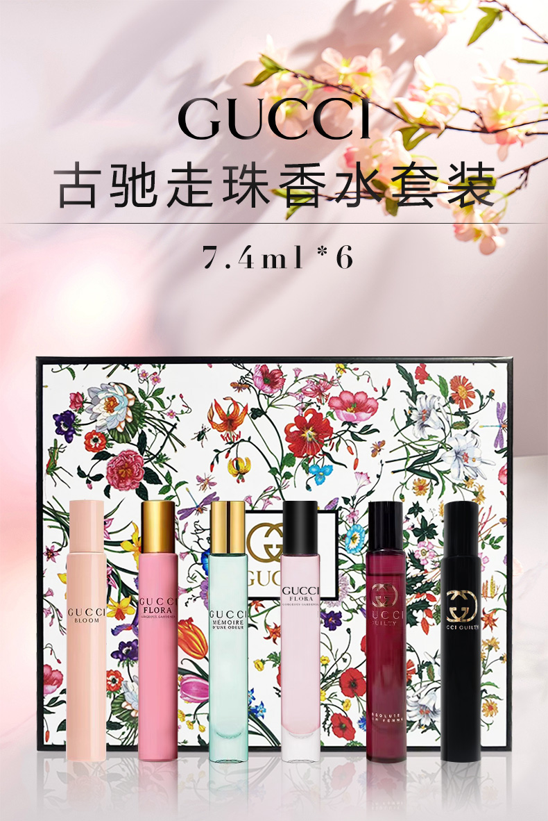 【情人节礼物!】【下单送礼袋 古驰香水走珠中样六件套】古驰CUCII走珠香水套装7.4ml*6