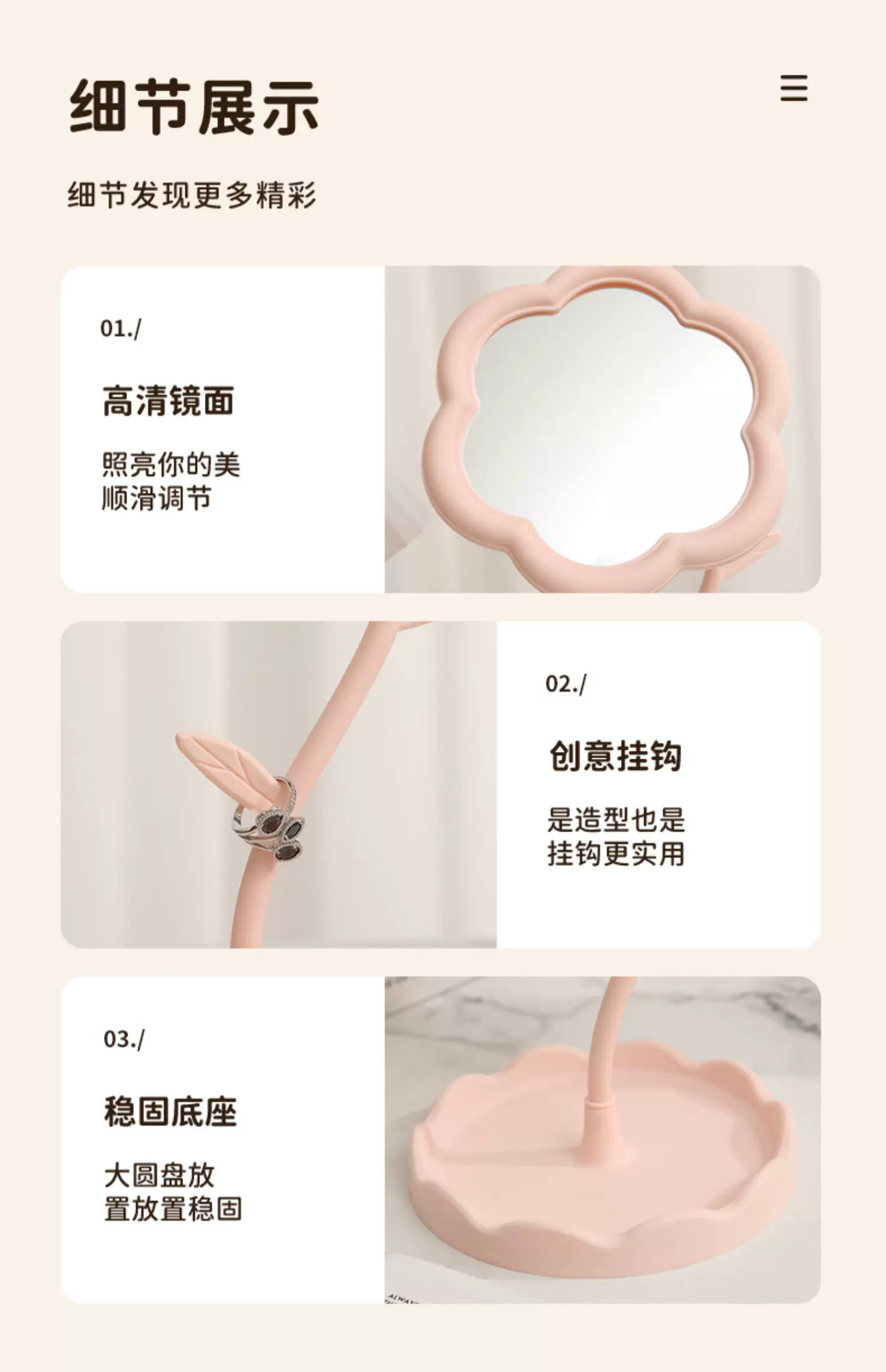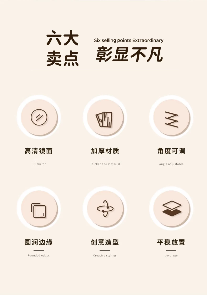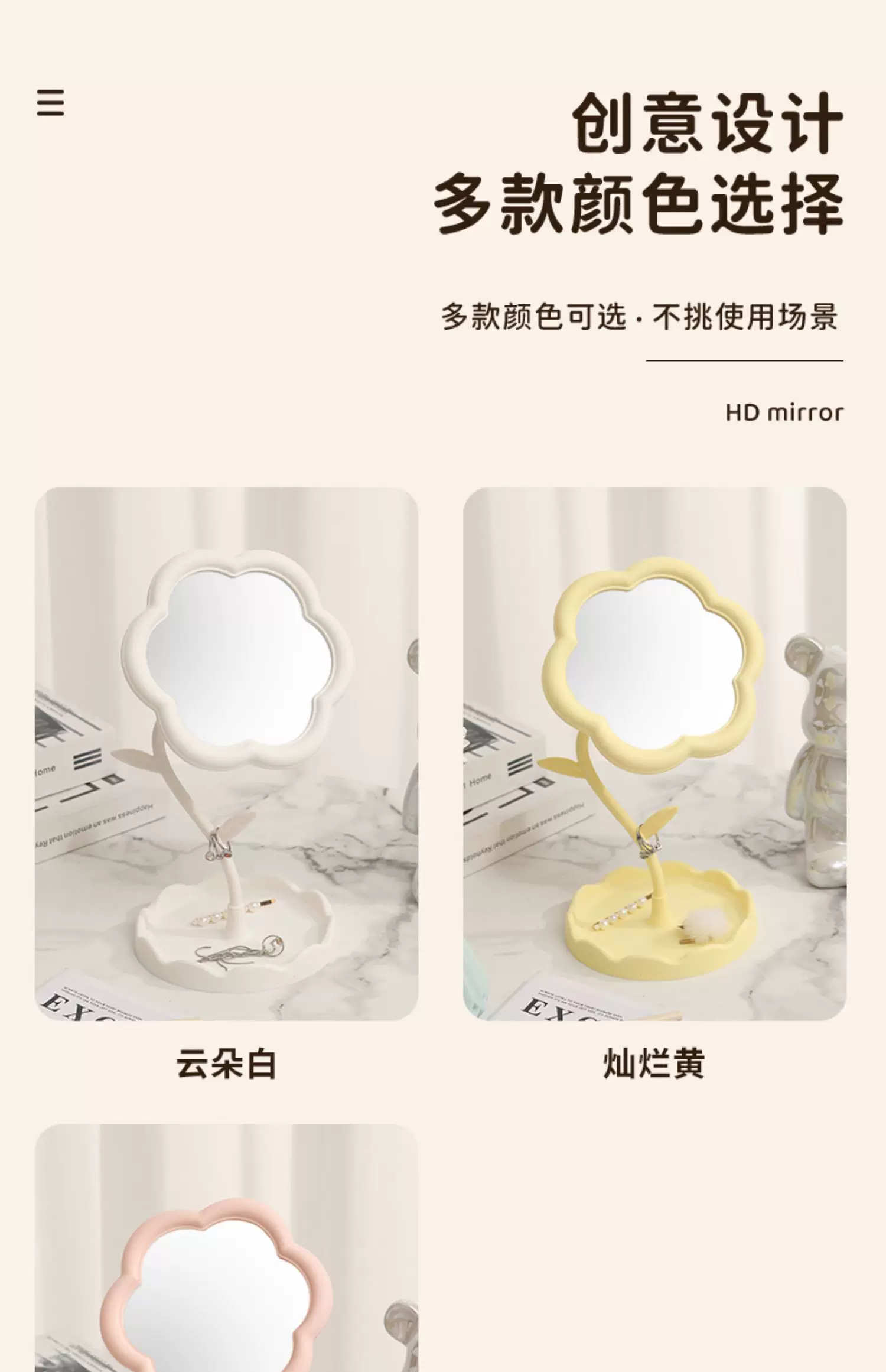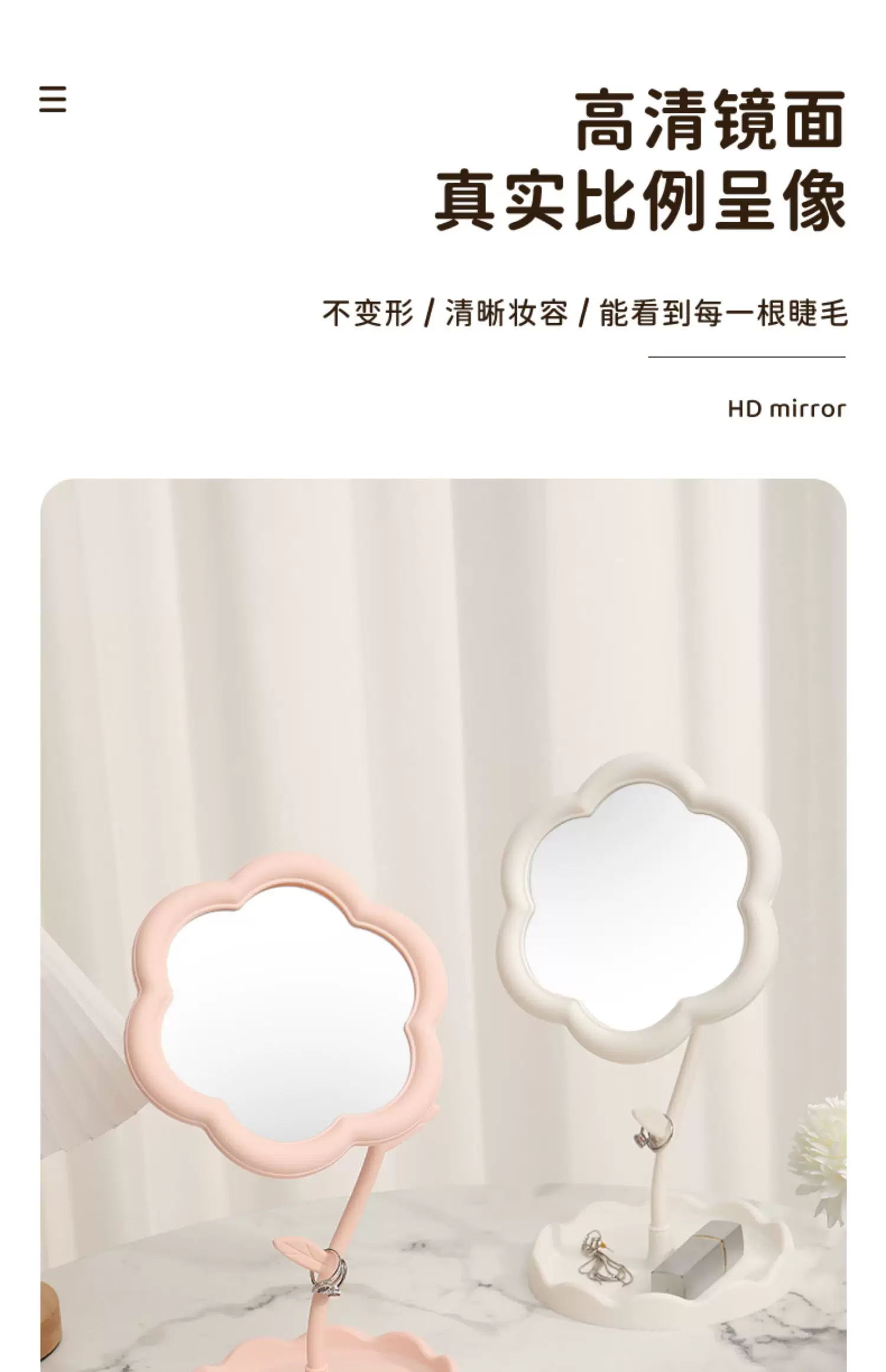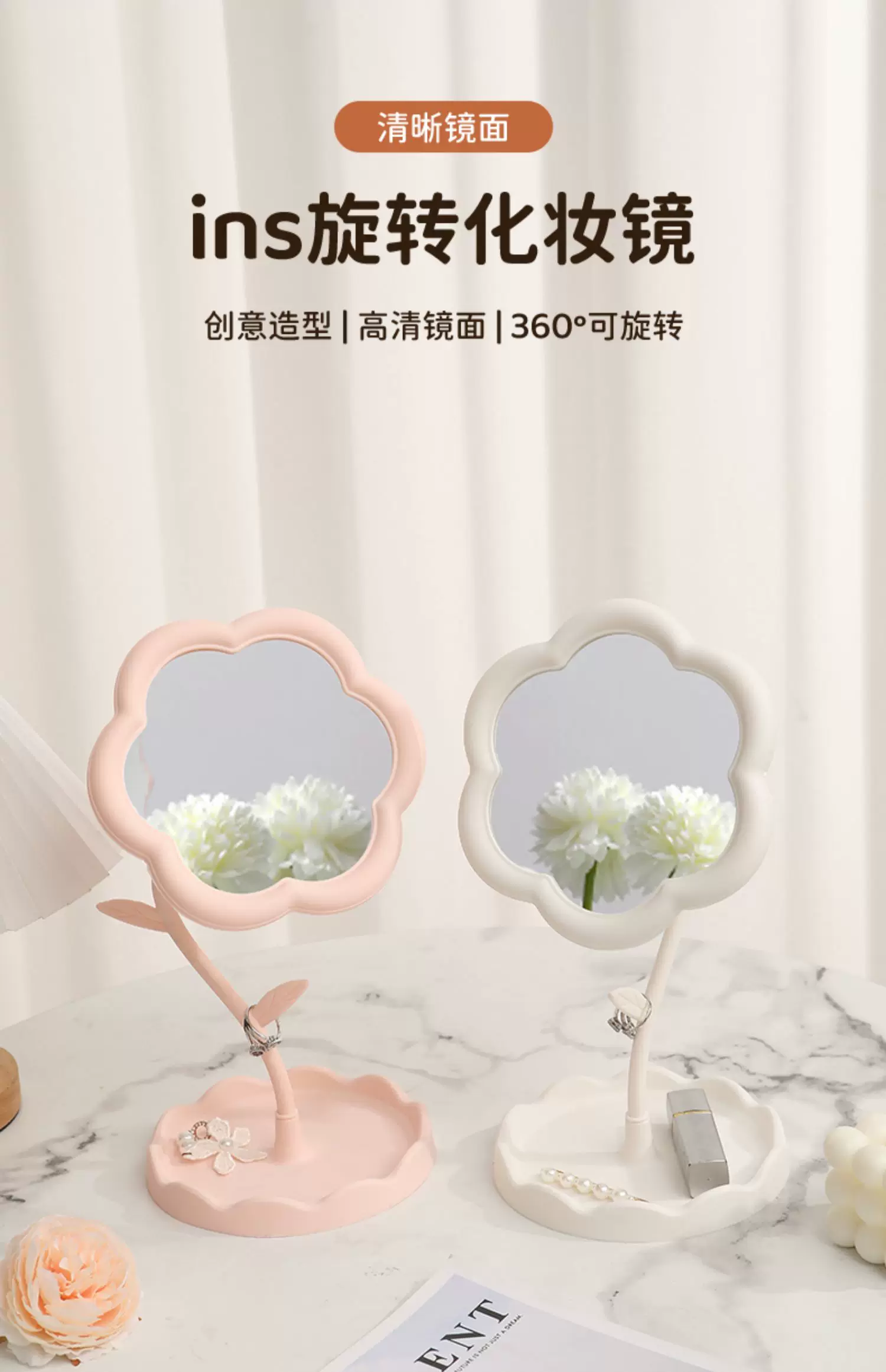INS梳妆镜子化妆镜桌面台式可折叠网红镜子
