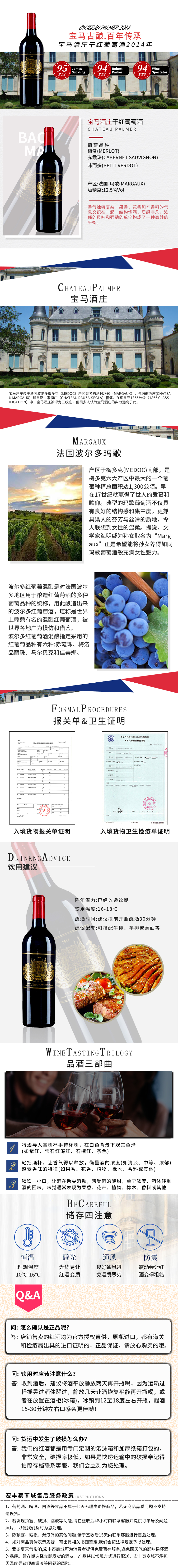 【法国】宝马酒庄干红葡萄酒2014 Chateau Palmer, Margaux, France