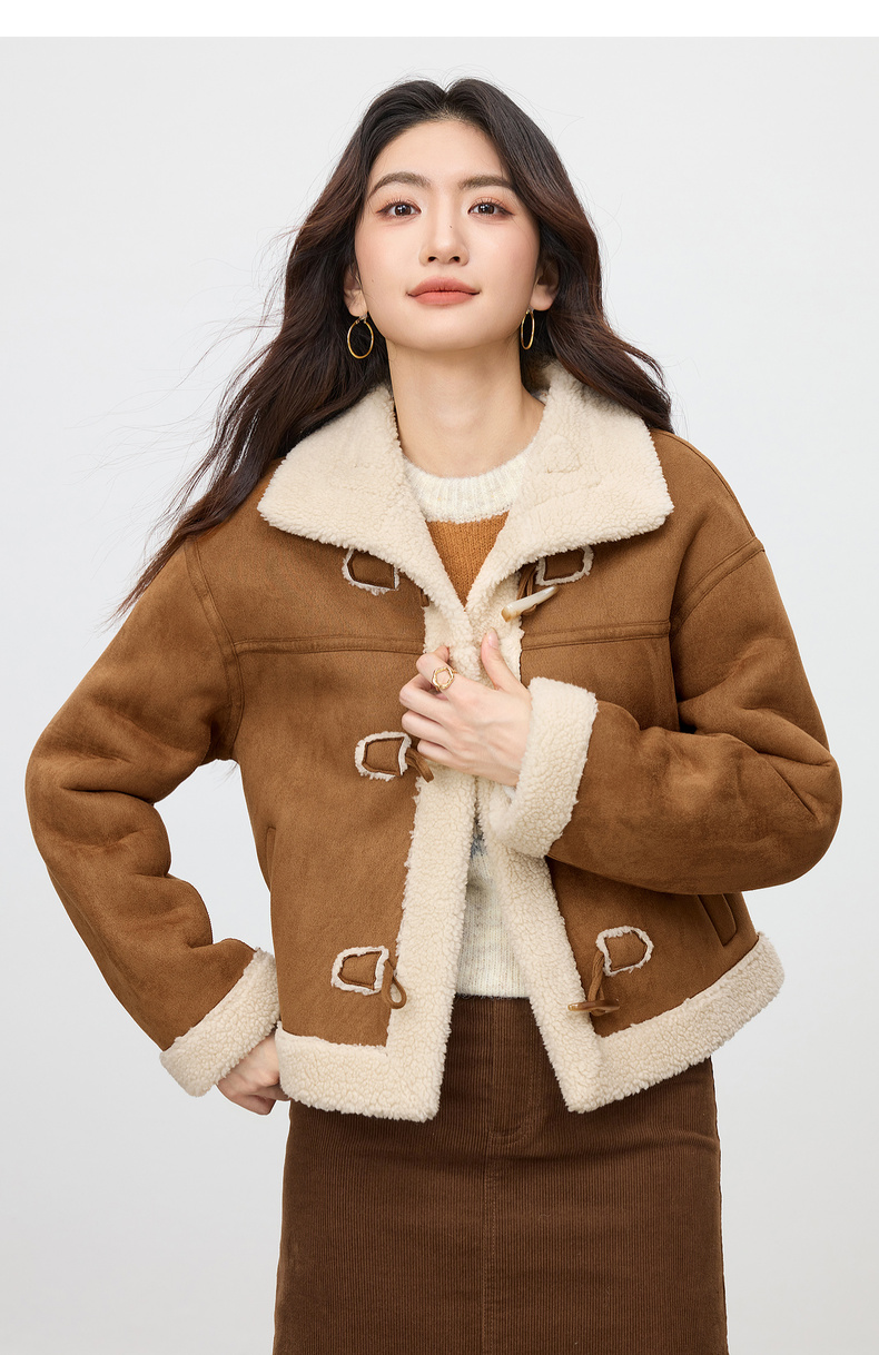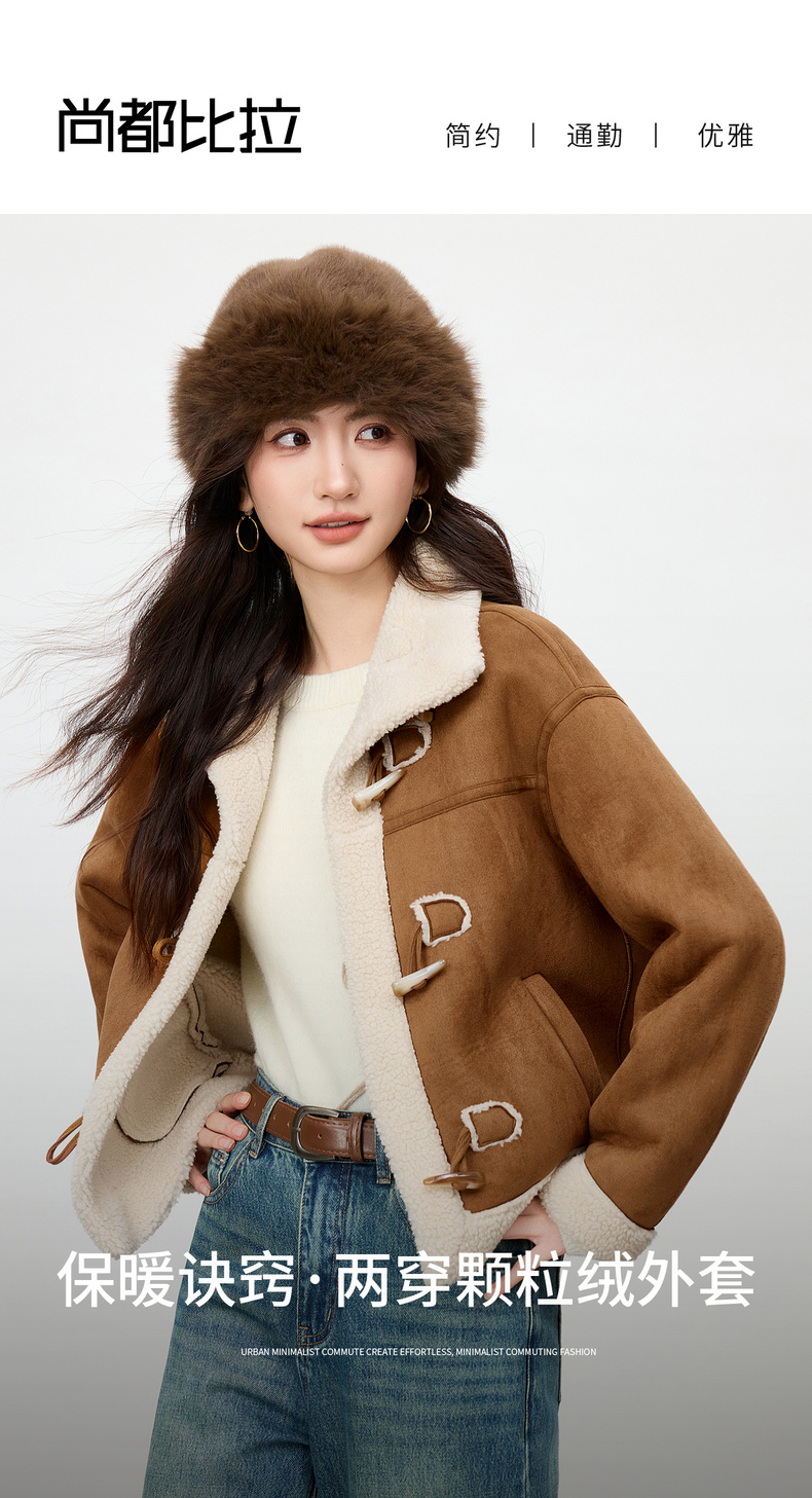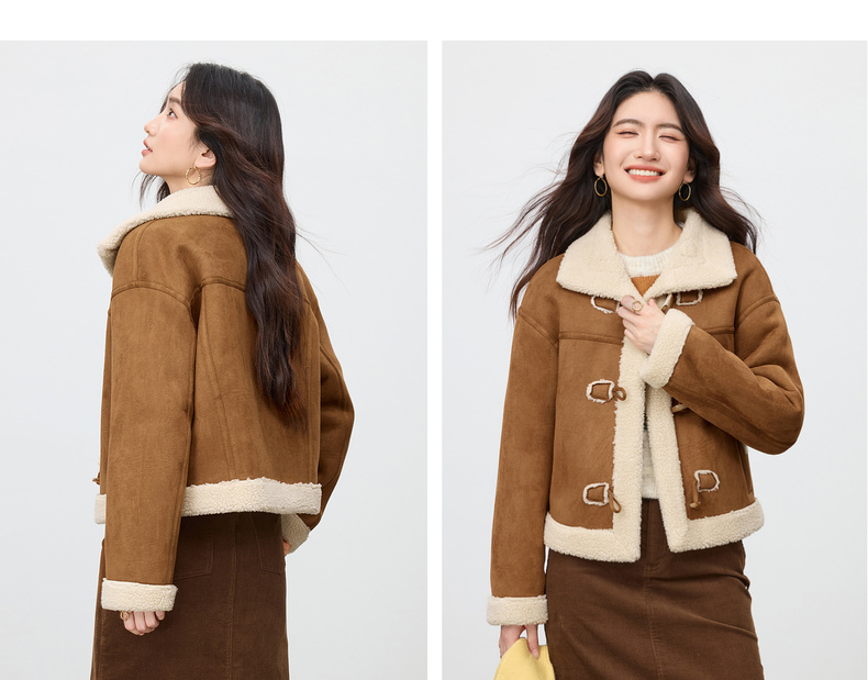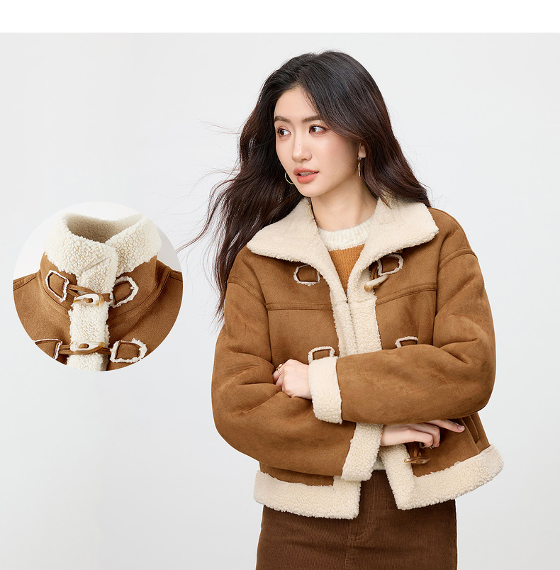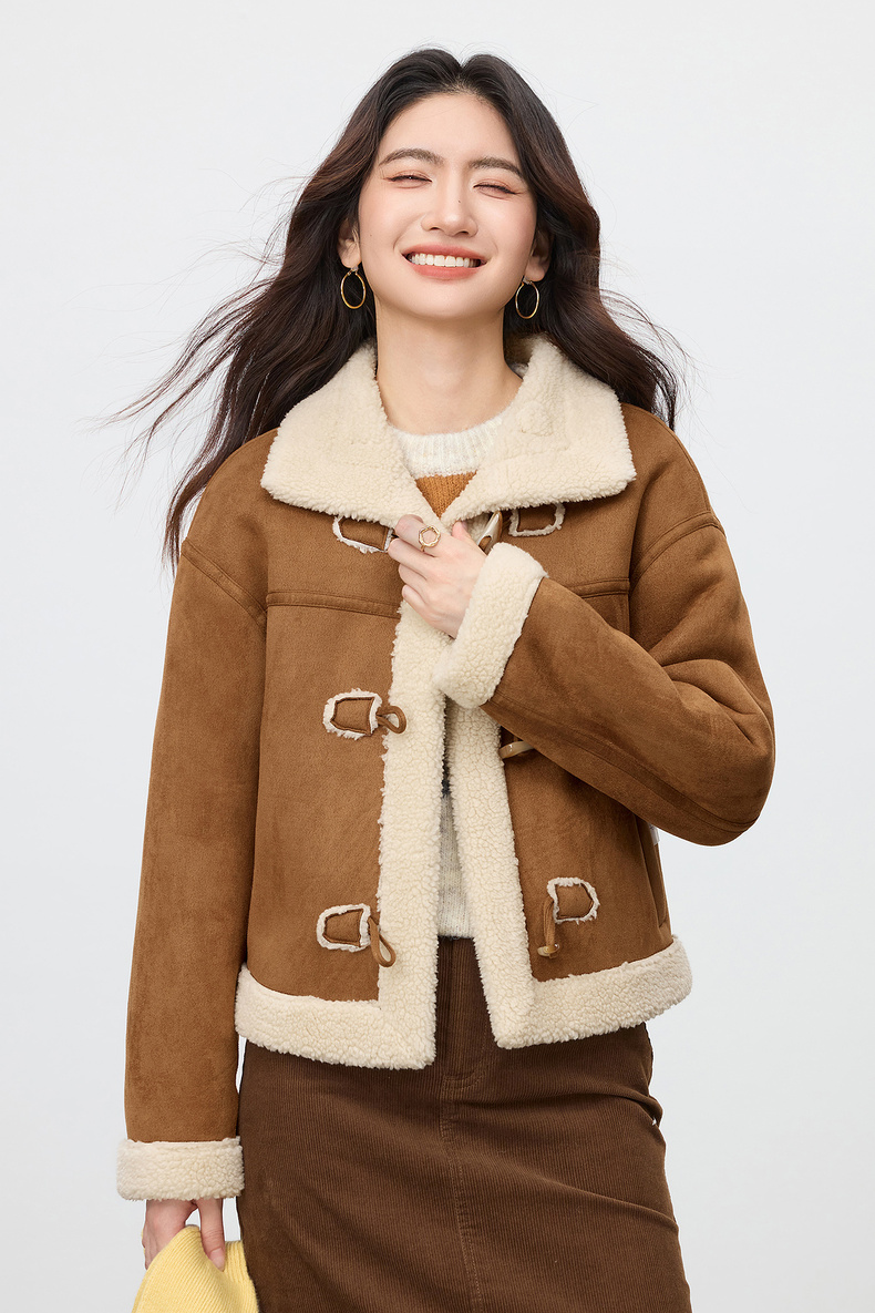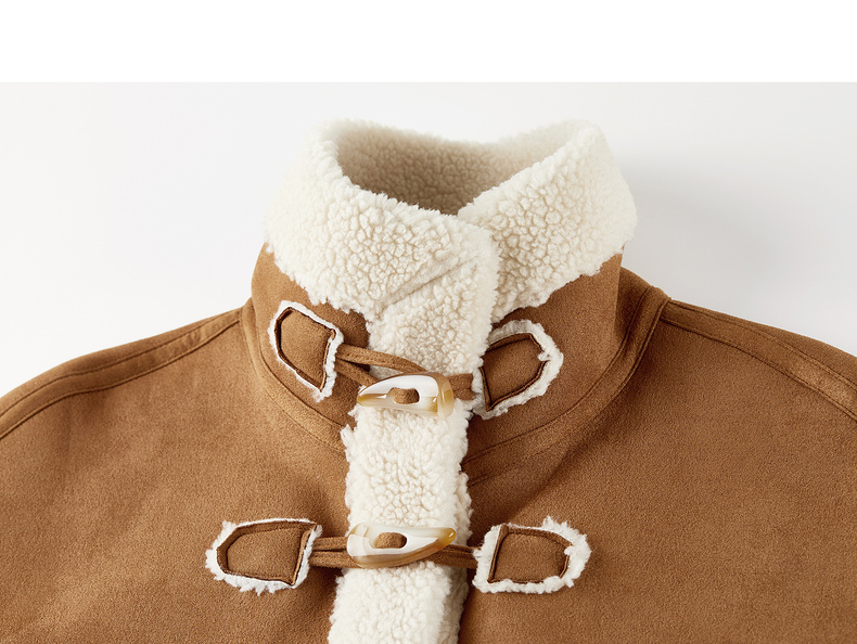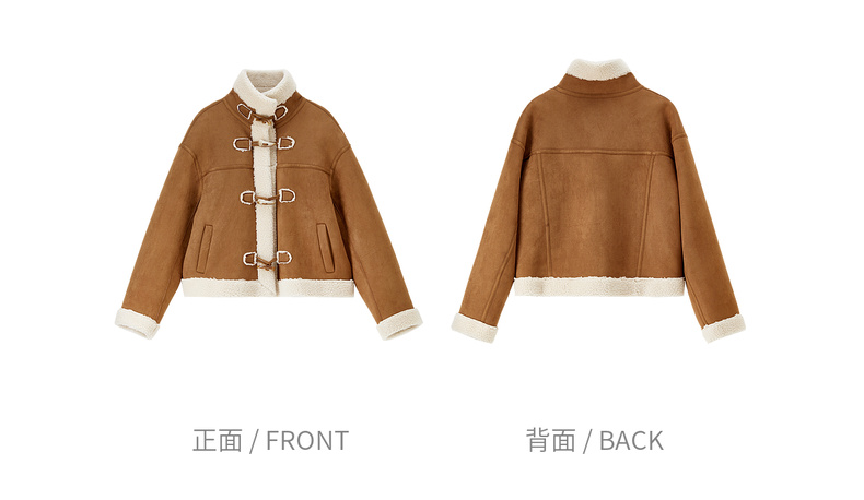 【内购】【皮毛绒保暖】雅丹凤撞色立领/翻领两穿牛角扣皮绒颗粒绒外套-W54PA4096