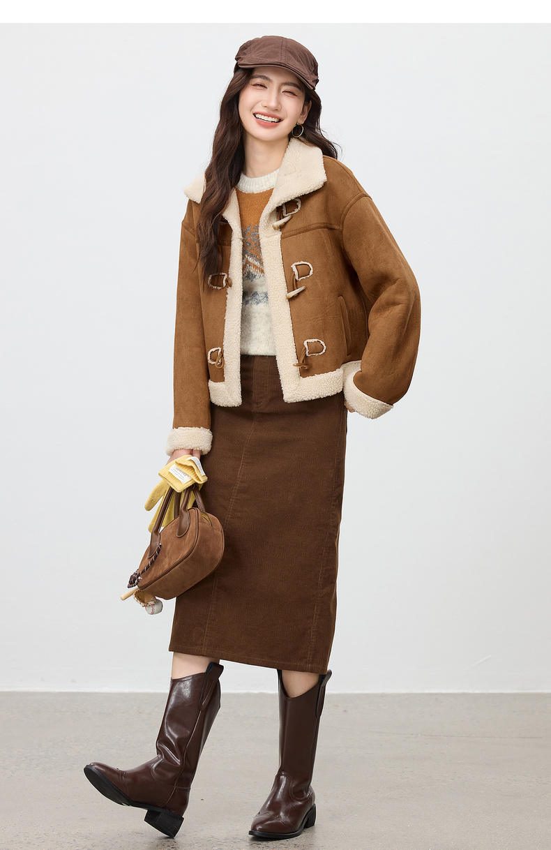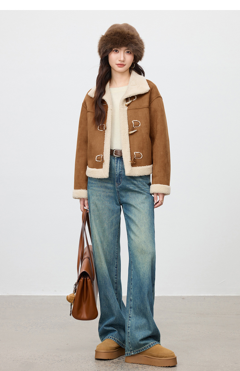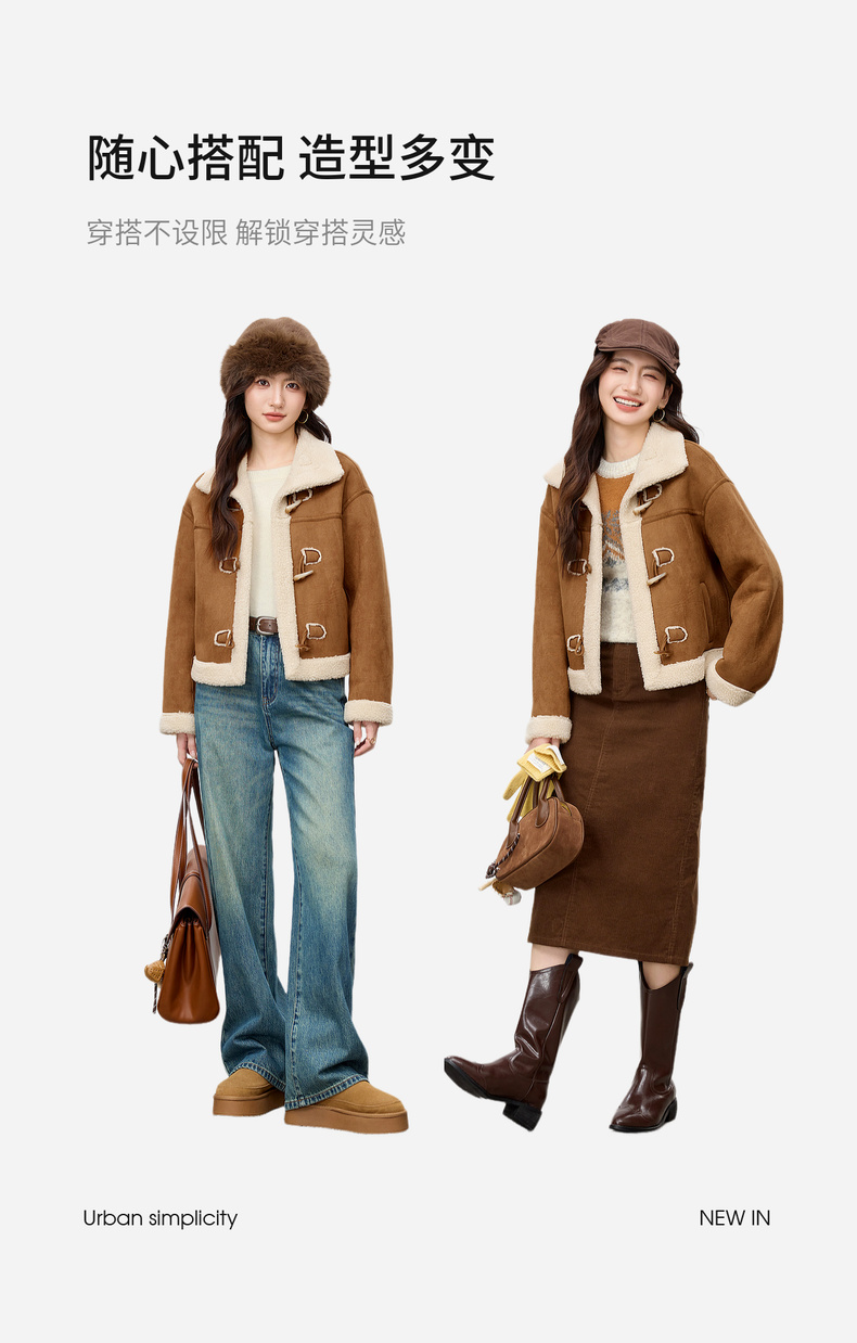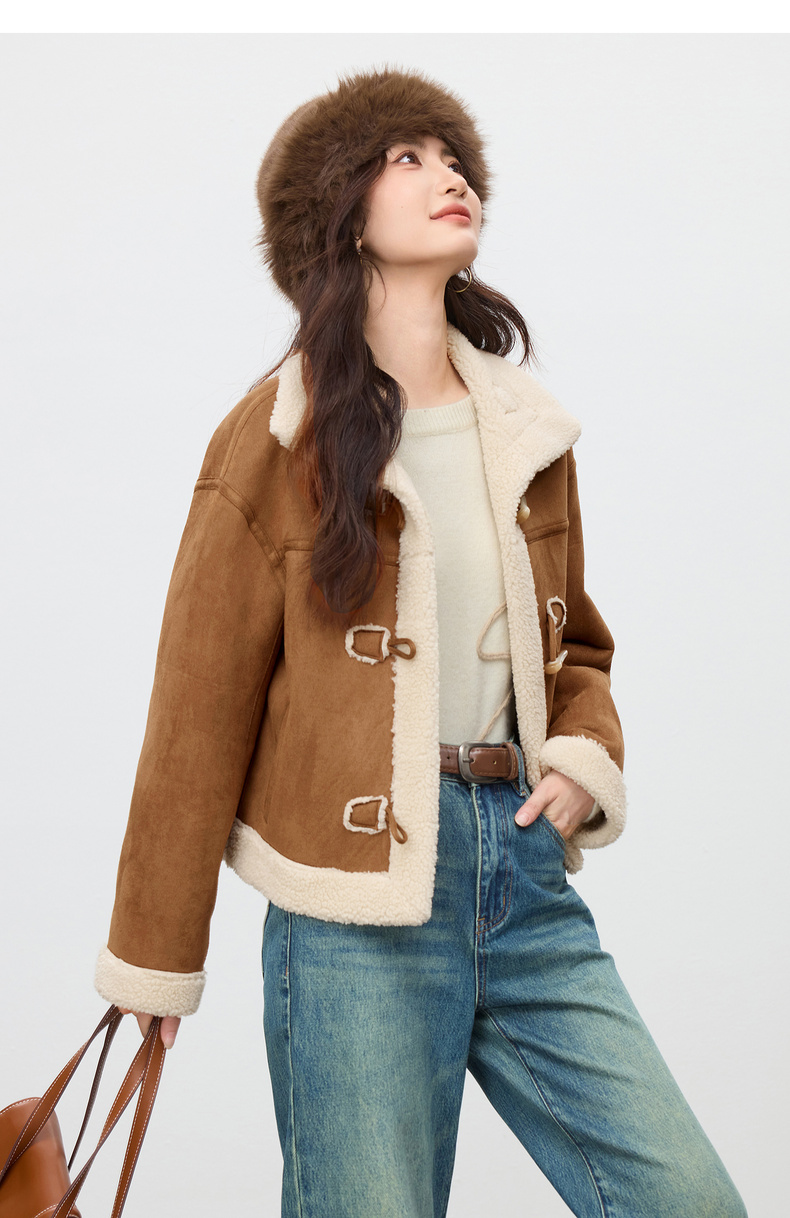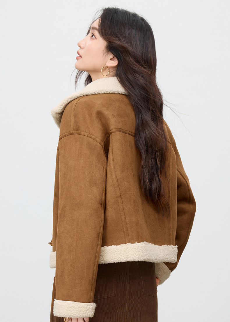 【内购】【皮毛绒保暖】雅丹凤撞色立领/翻领两穿牛角扣皮绒颗粒绒外套-W54PA4096
