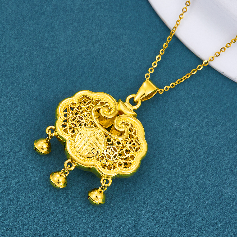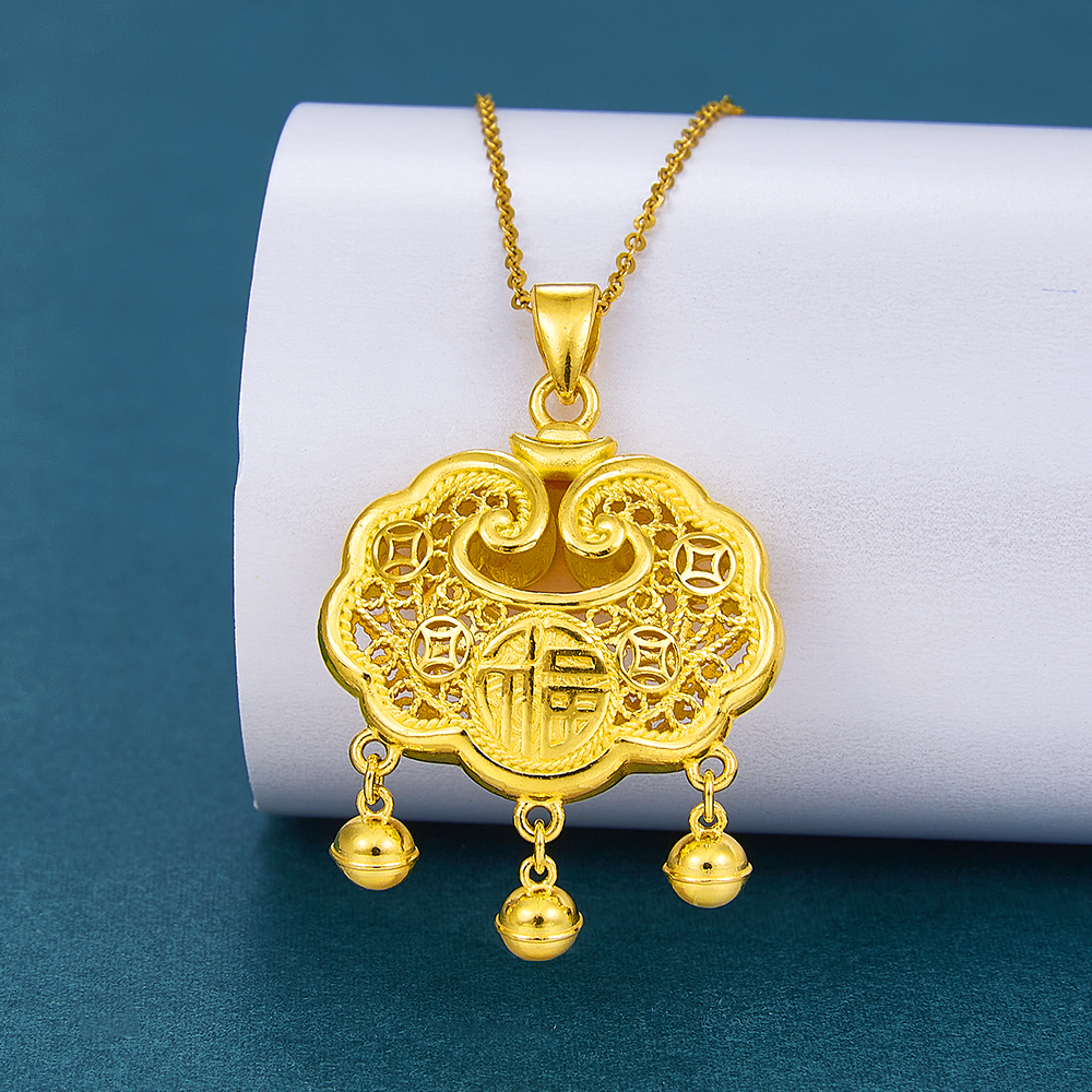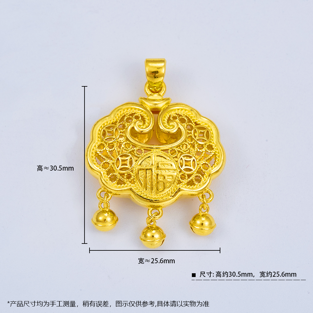 【限时克减150元】足金999.9 #儿童/宝宝 镂空双面福字锁包如意铃铛福字锁包吊坠网红锁包(不含链)(DZ00602-01)(预售产品下单后不退款不退货不换货不补差价)
