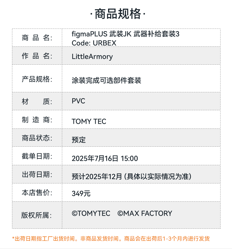 【GSC现货】figmaPLUS 武装JK 武器补给套装3 Code:URBEX LittleArmory