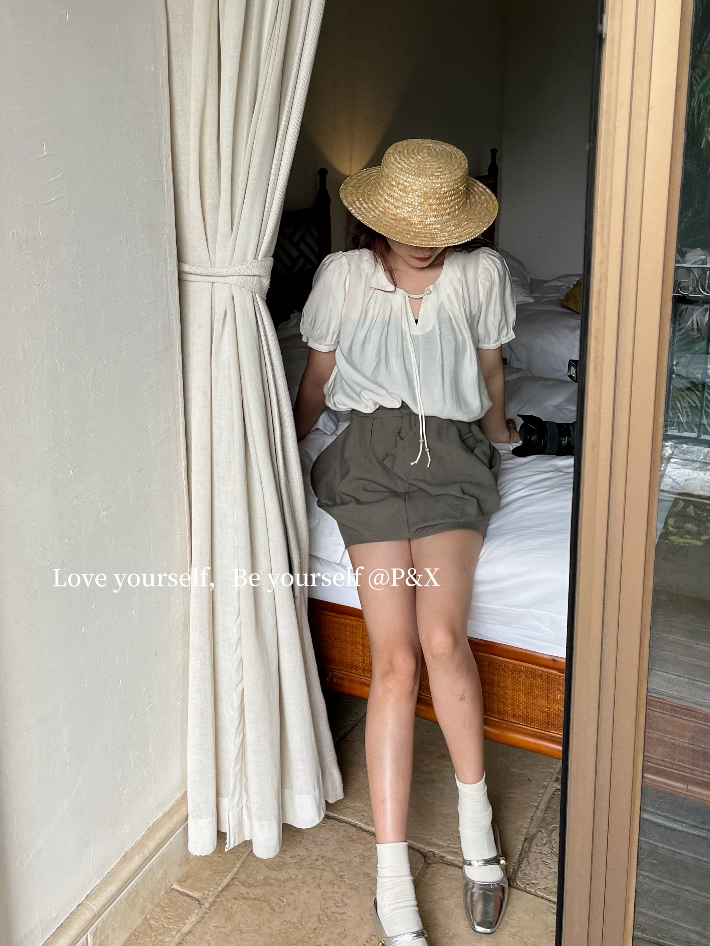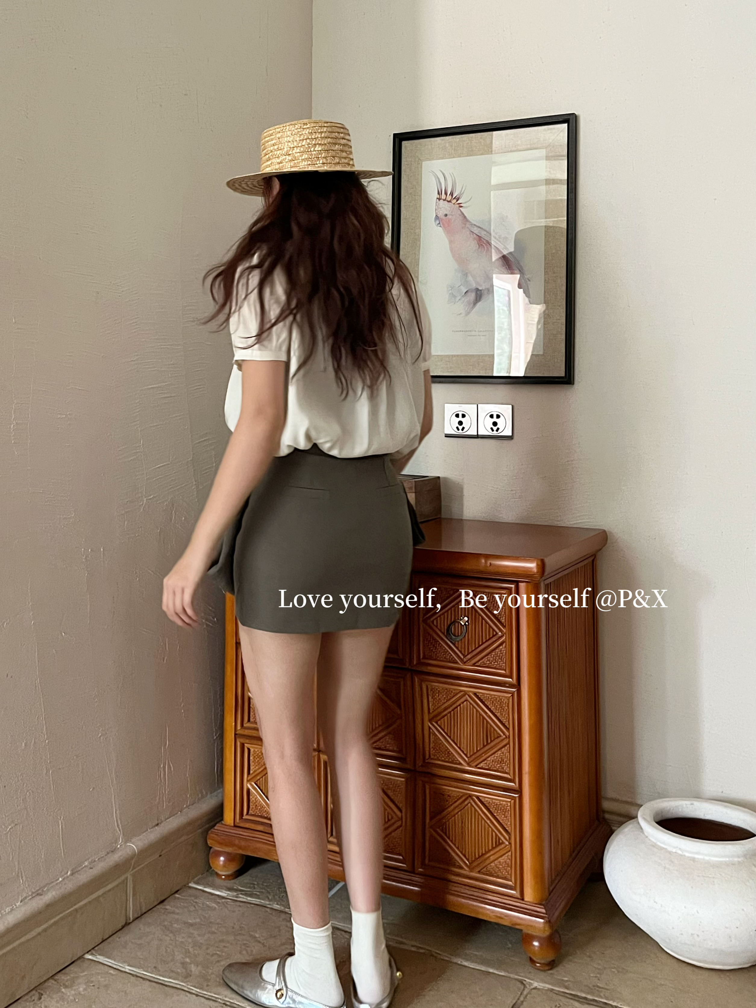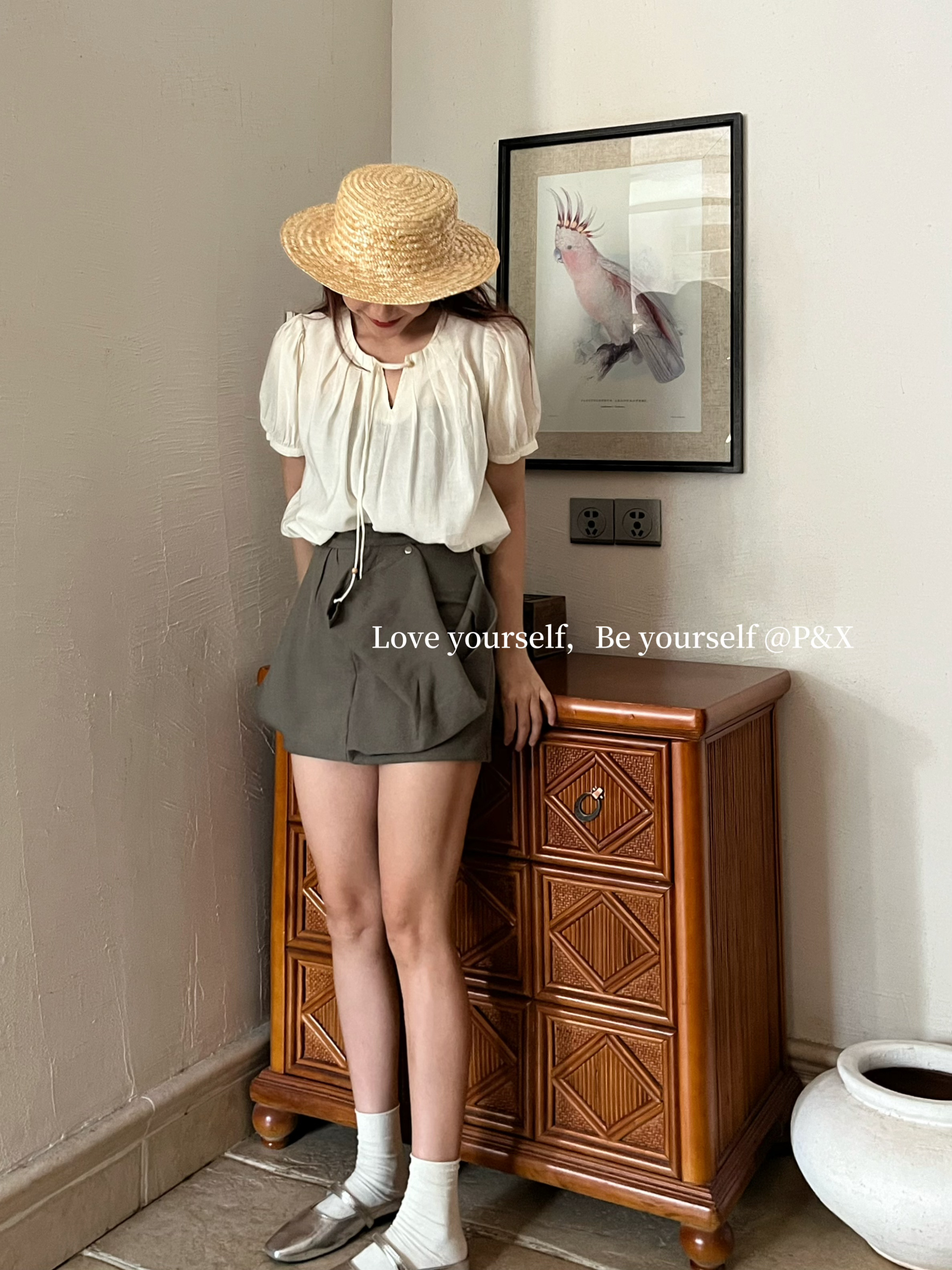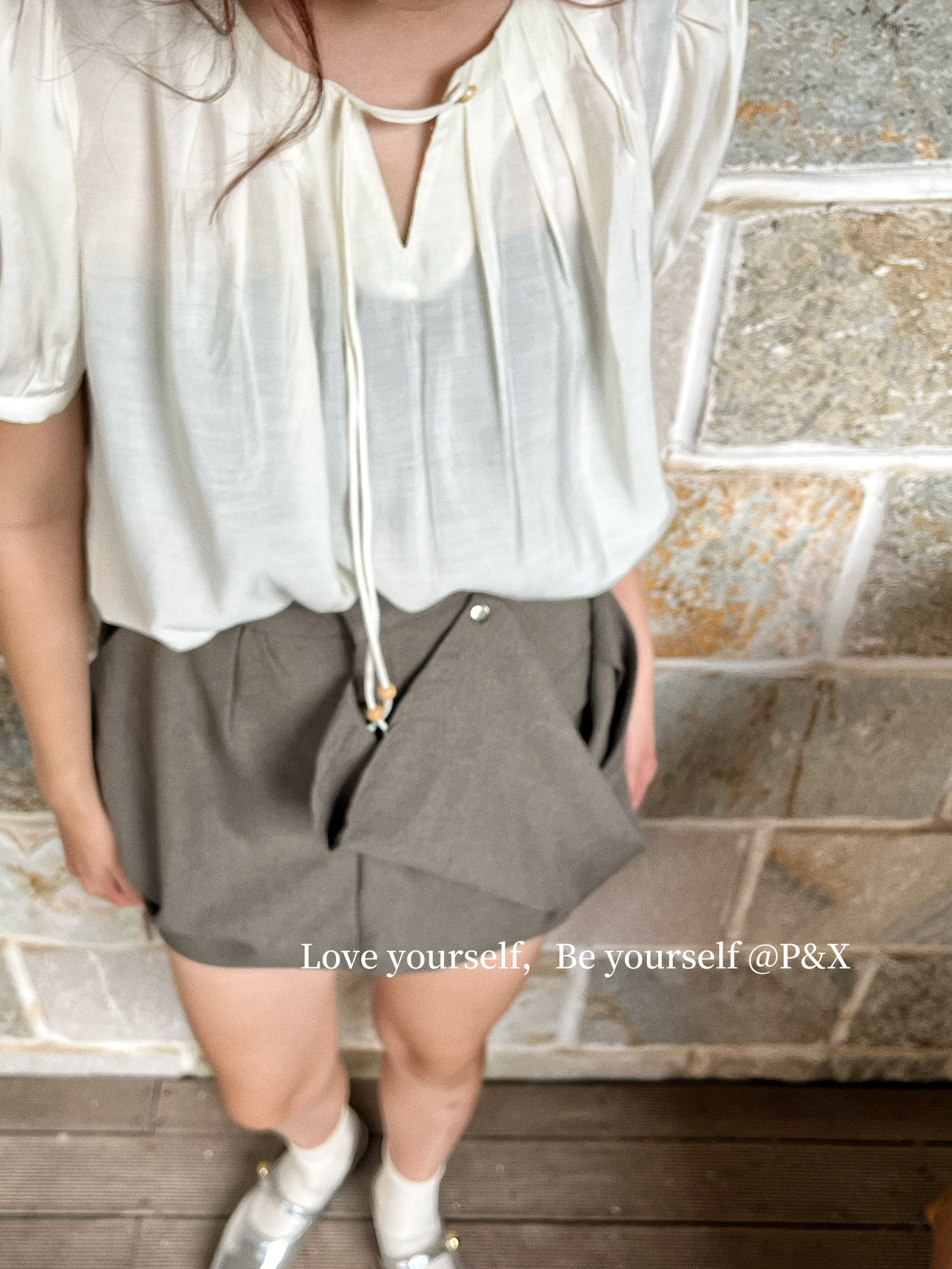 P&X设计师女装夏季韩版百搭时尚短款上衣衬衫 824228169 杏色