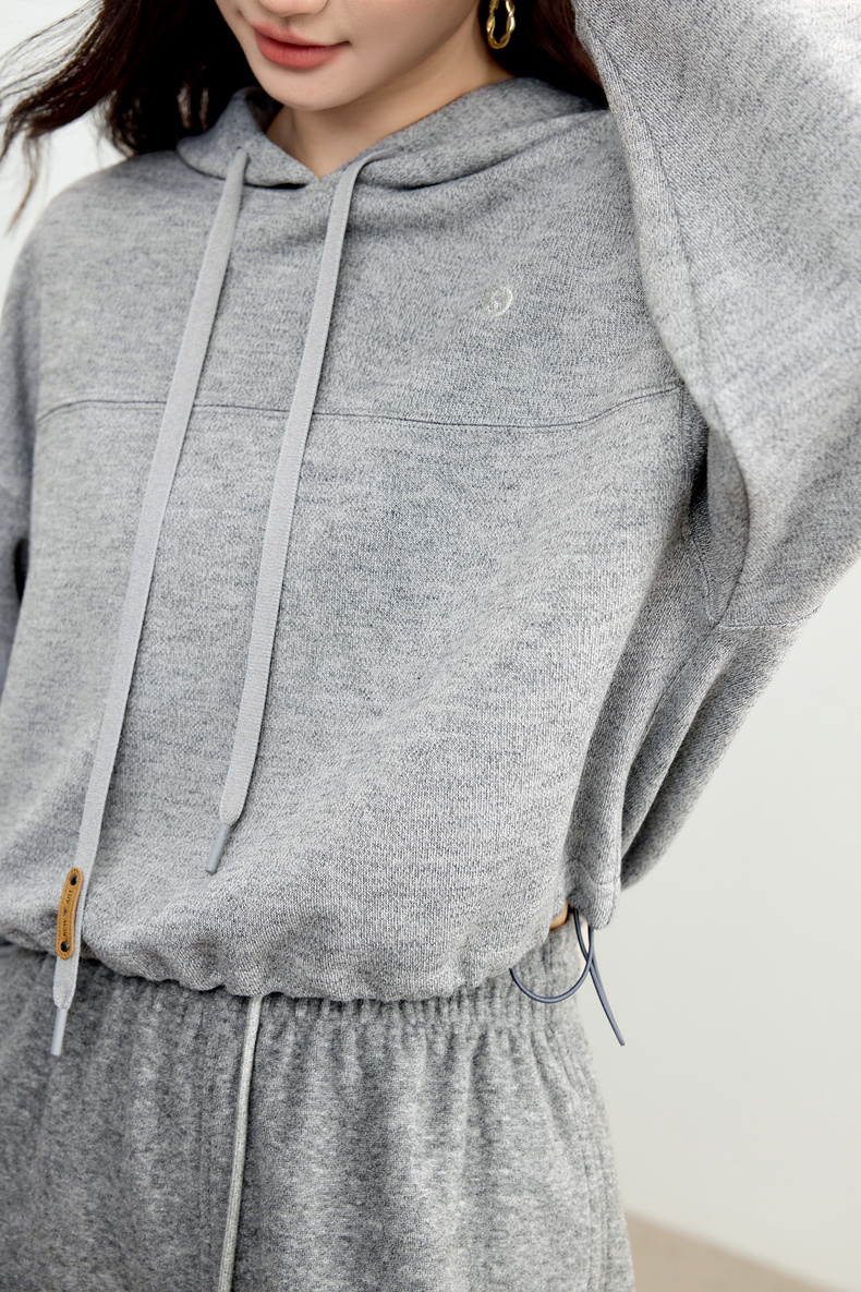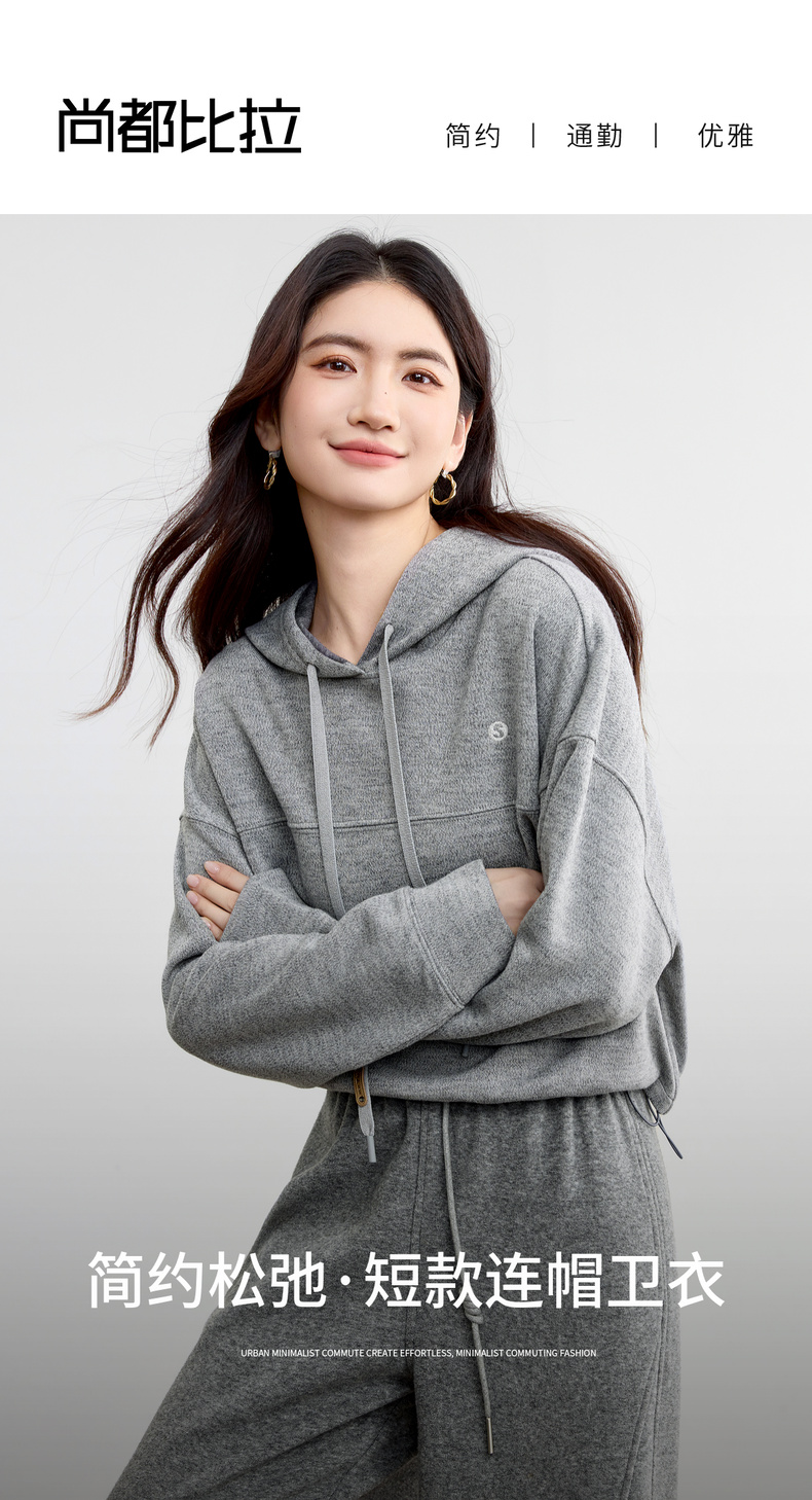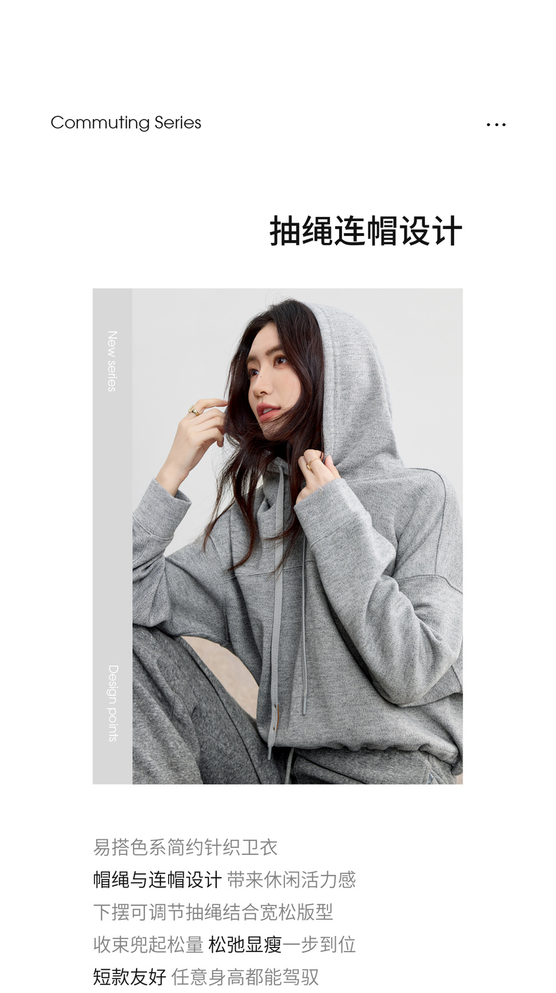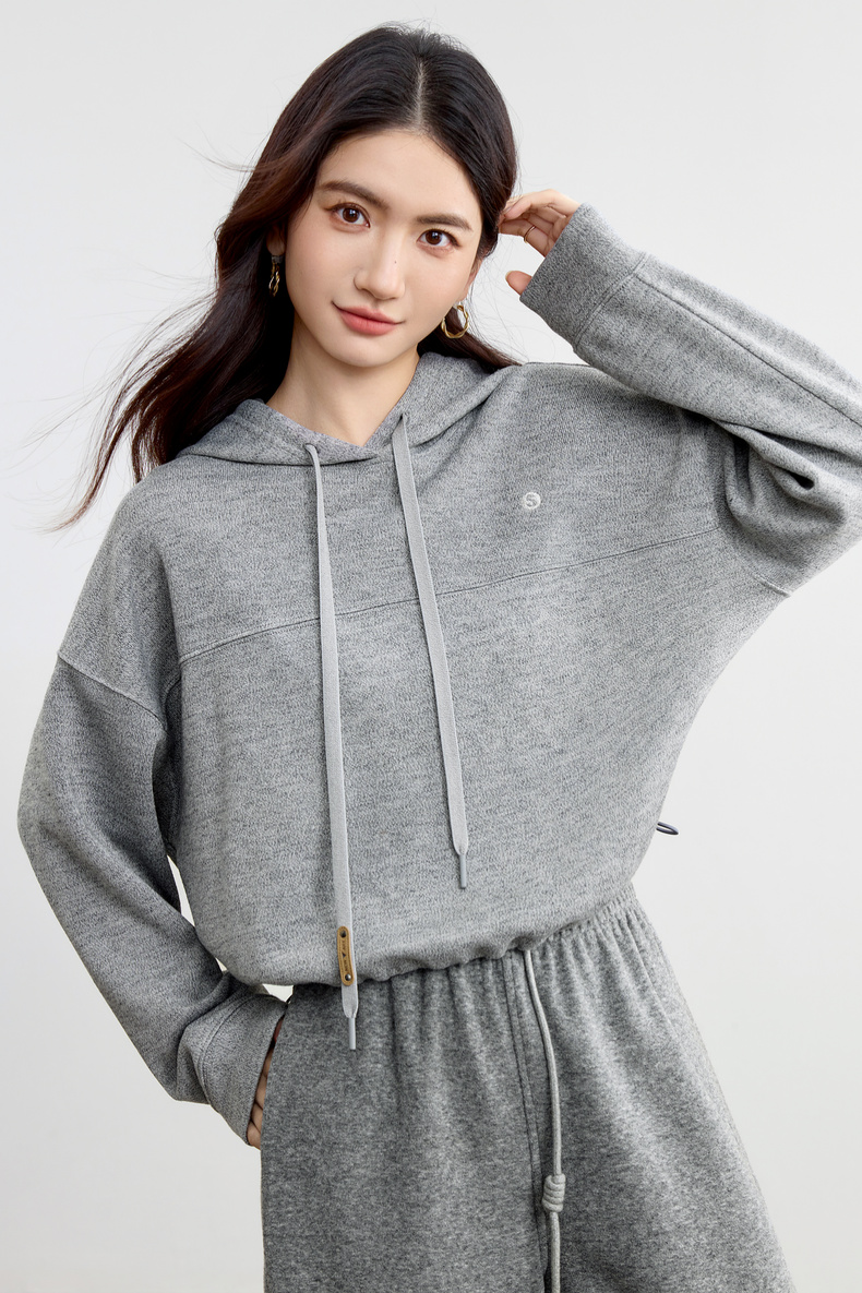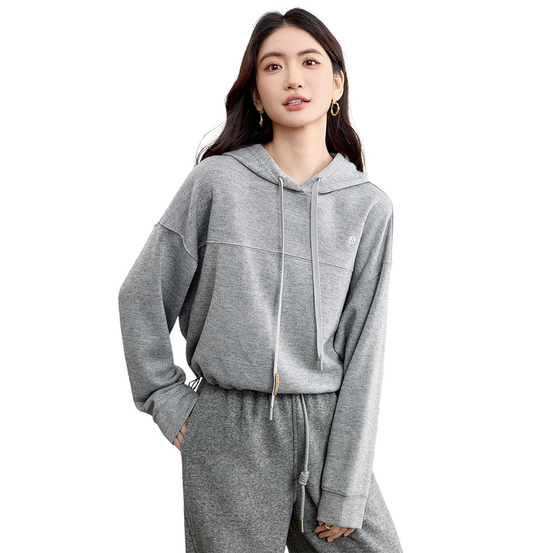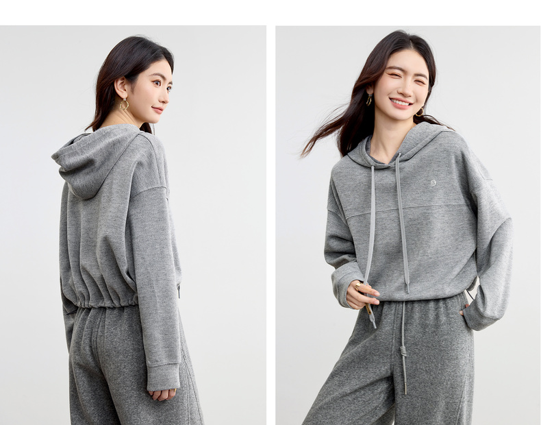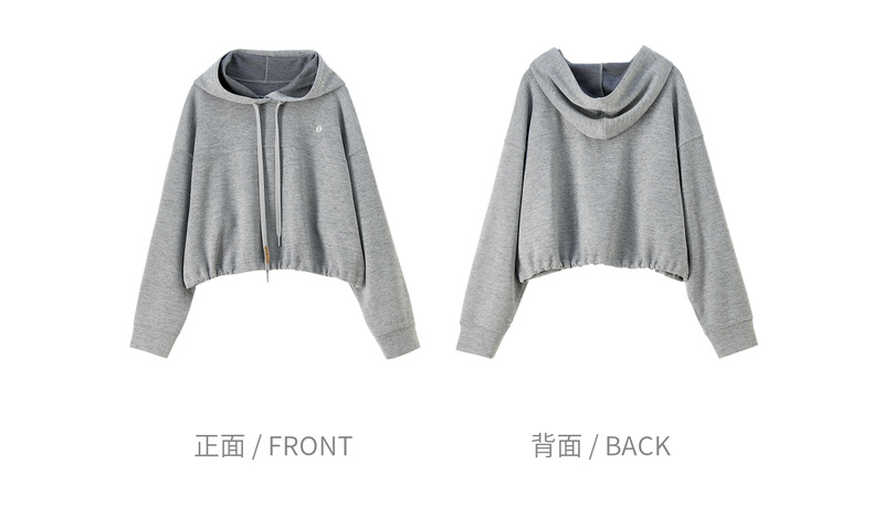 【内购】【易搭配】抽绳连帽字母刺绣分割设计下摆抽绳落肩袖短款针织卫衣-153AG2448