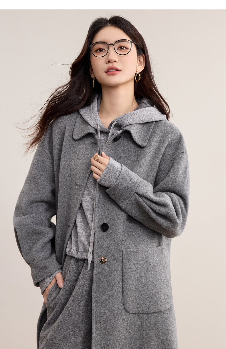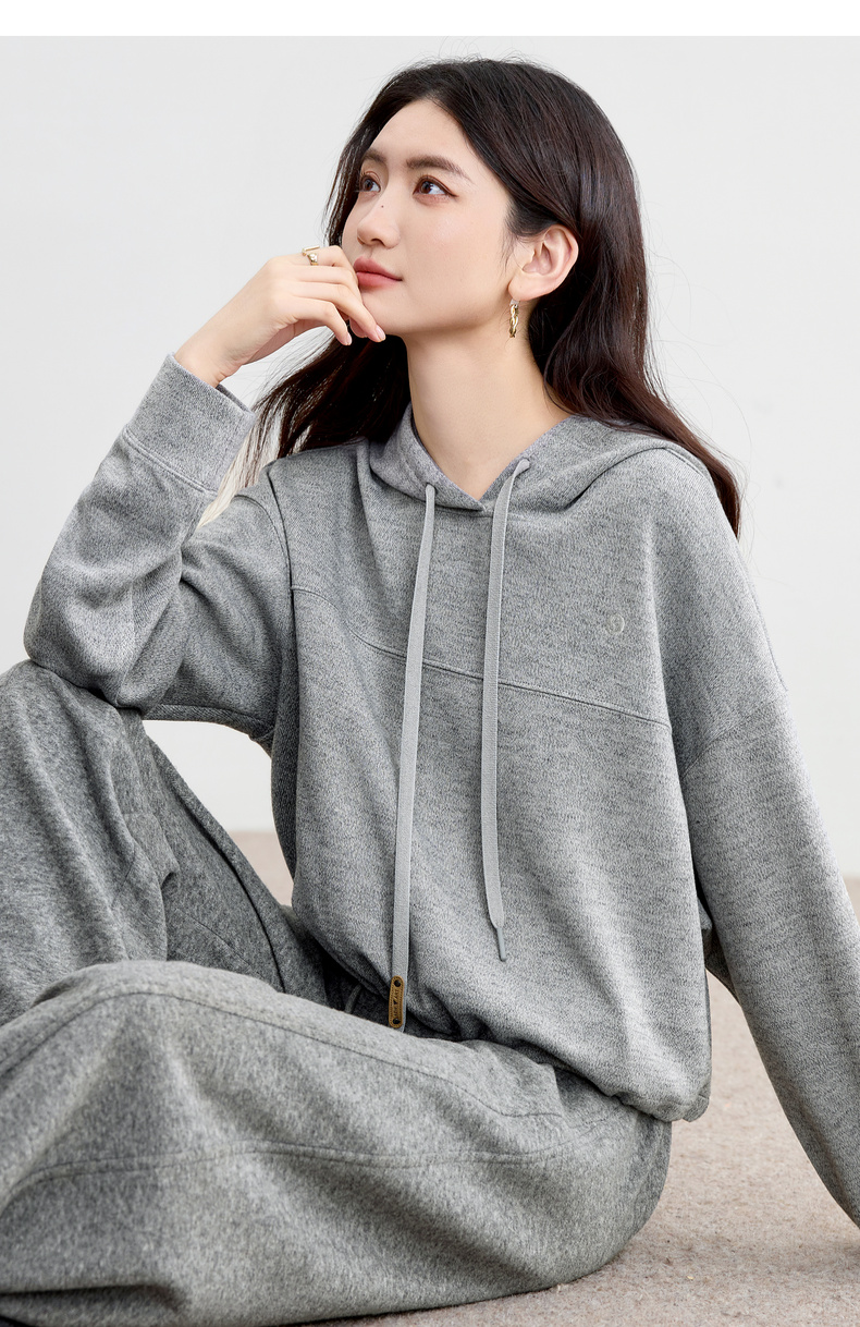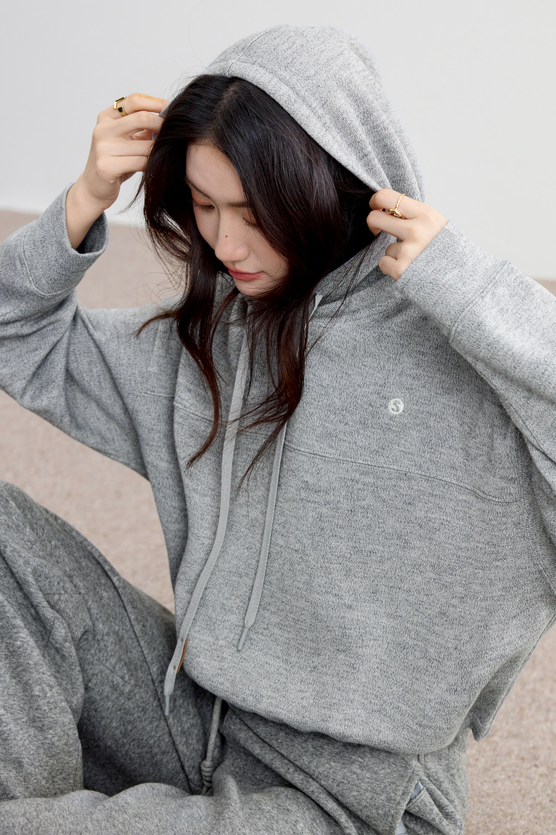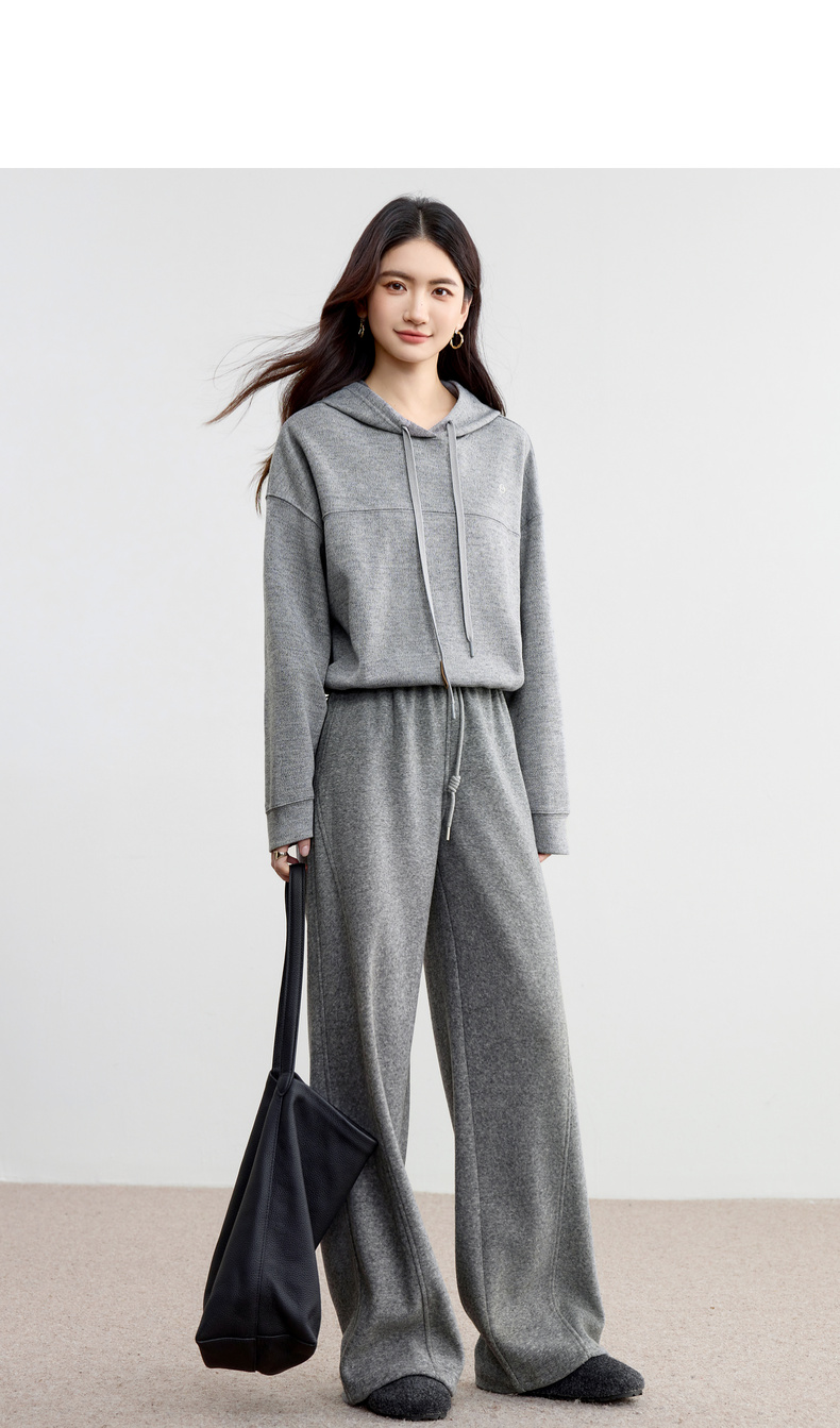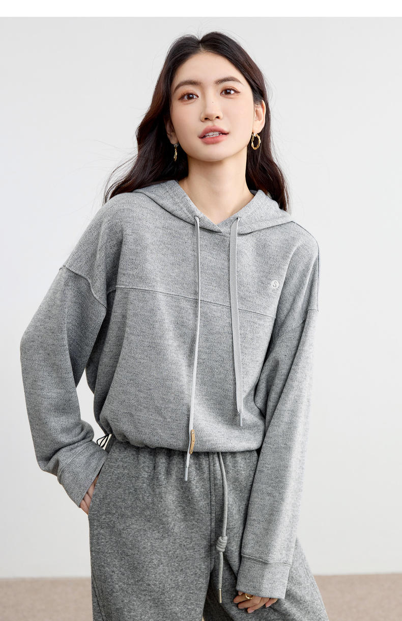 【内购】【易搭配】抽绳连帽字母刺绣分割设计下摆抽绳落肩袖短款针织卫衣-153AG2448