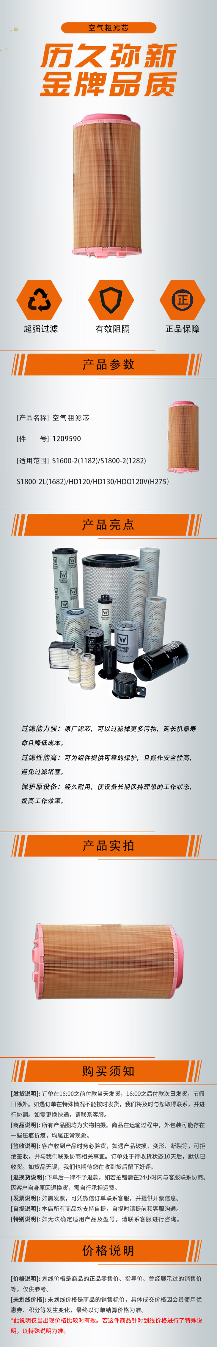 【空气滤芯1209590】 适用于S1600-2(1182)/S1800-2(1282)/S1800-2L(1682)/HD120/HD130/HDO120V(H275)