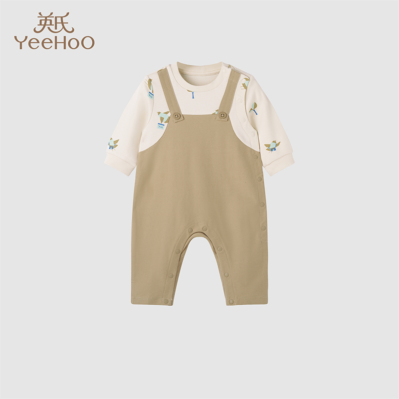 英氏婴儿衣服春新生儿宝宝假两件连体衣爬服2024新款YRHAJ1Q172A