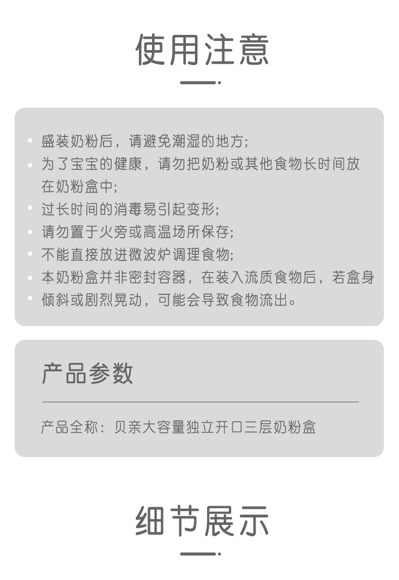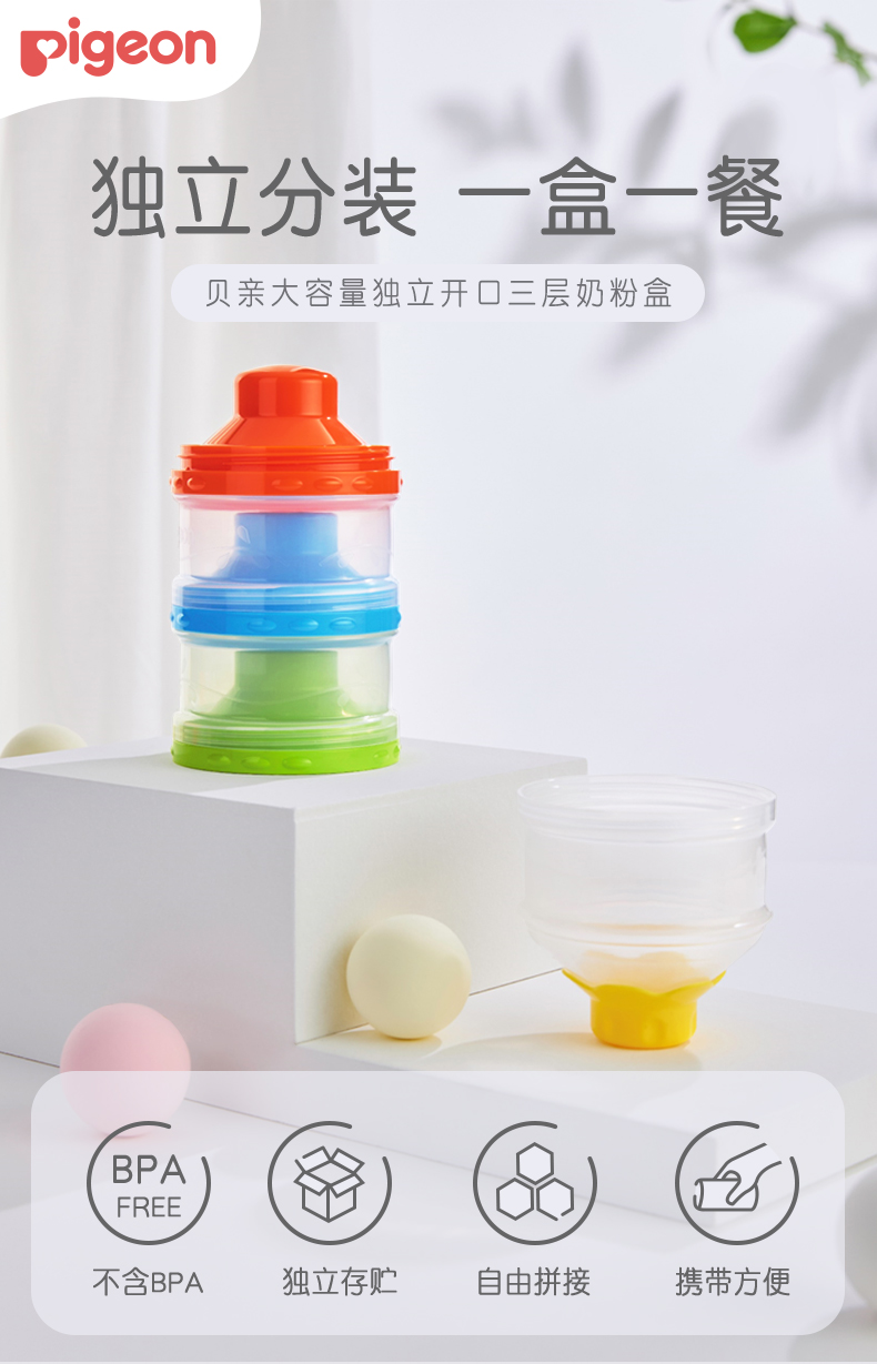 贝亲大容量独立开口三层奶粉盒CA07#
