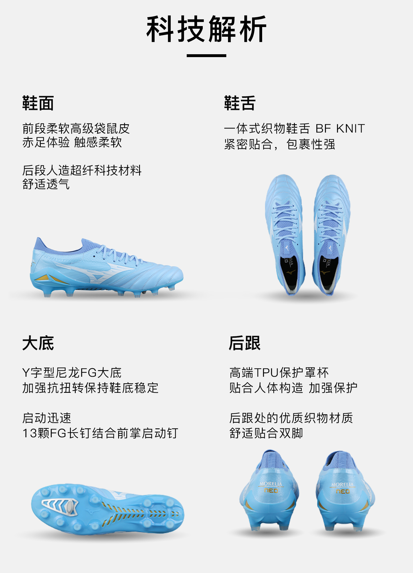 小李子Mizuno美津浓 莫雷拉Morelia Neo 4 高端FG长钉袋鼠皮成人足球鞋男