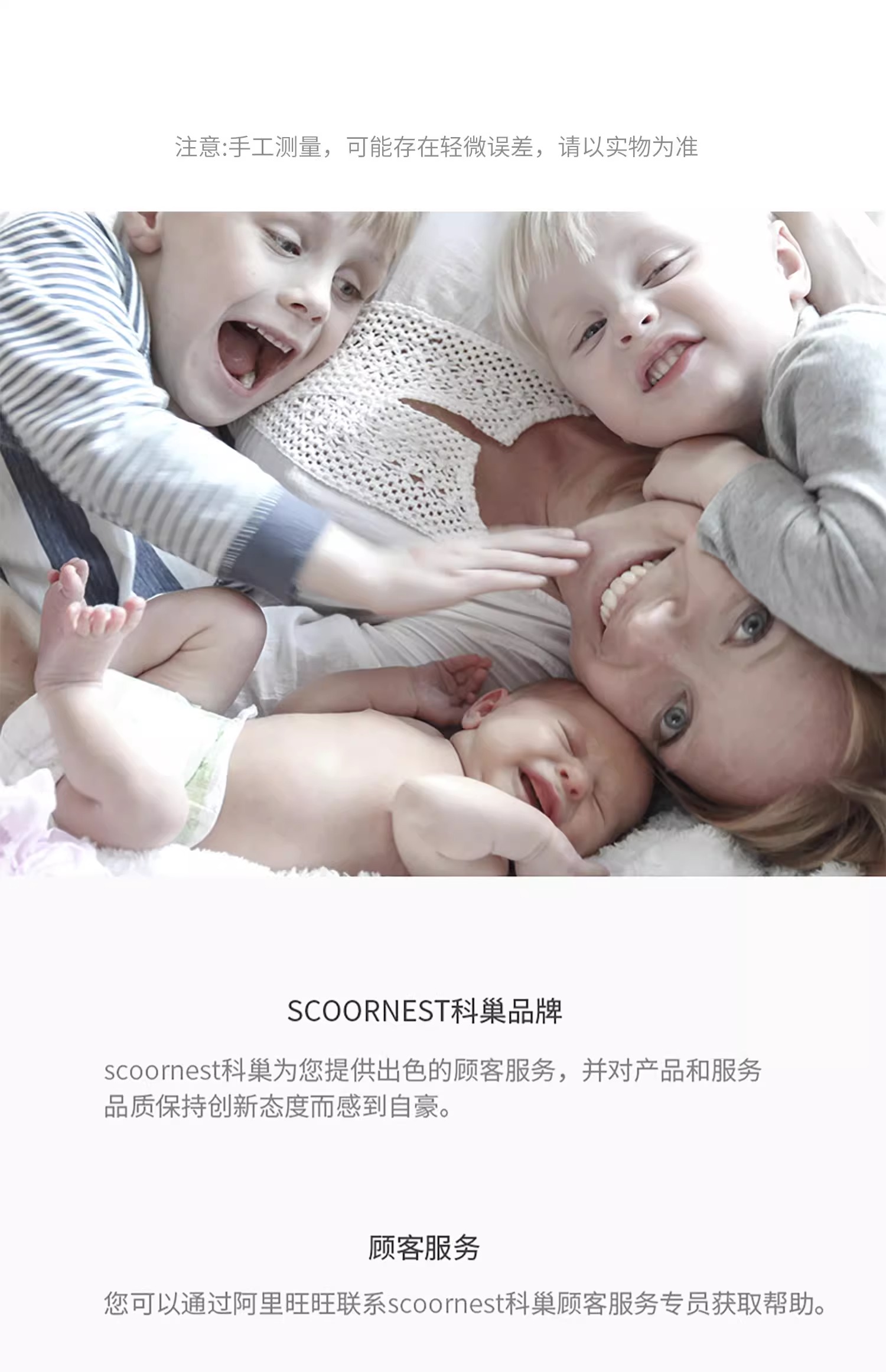 - Scoornest始终秉承给每一位宝宝送去科学的、关心的、创新的成长体验,通过提供商品和服务,使顾客形成守护、发展、巩固这种弥足珍贵的亲情的爱。