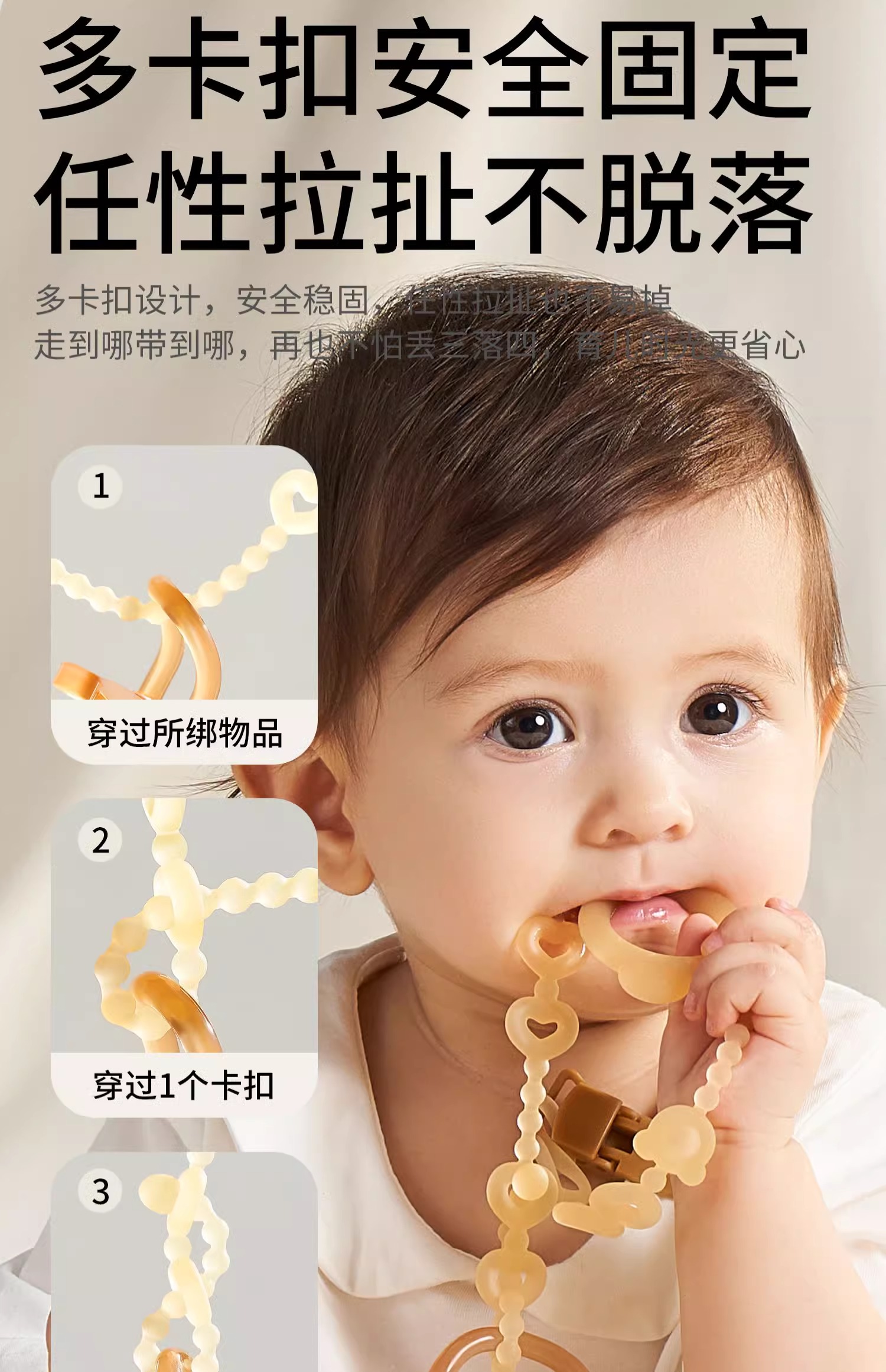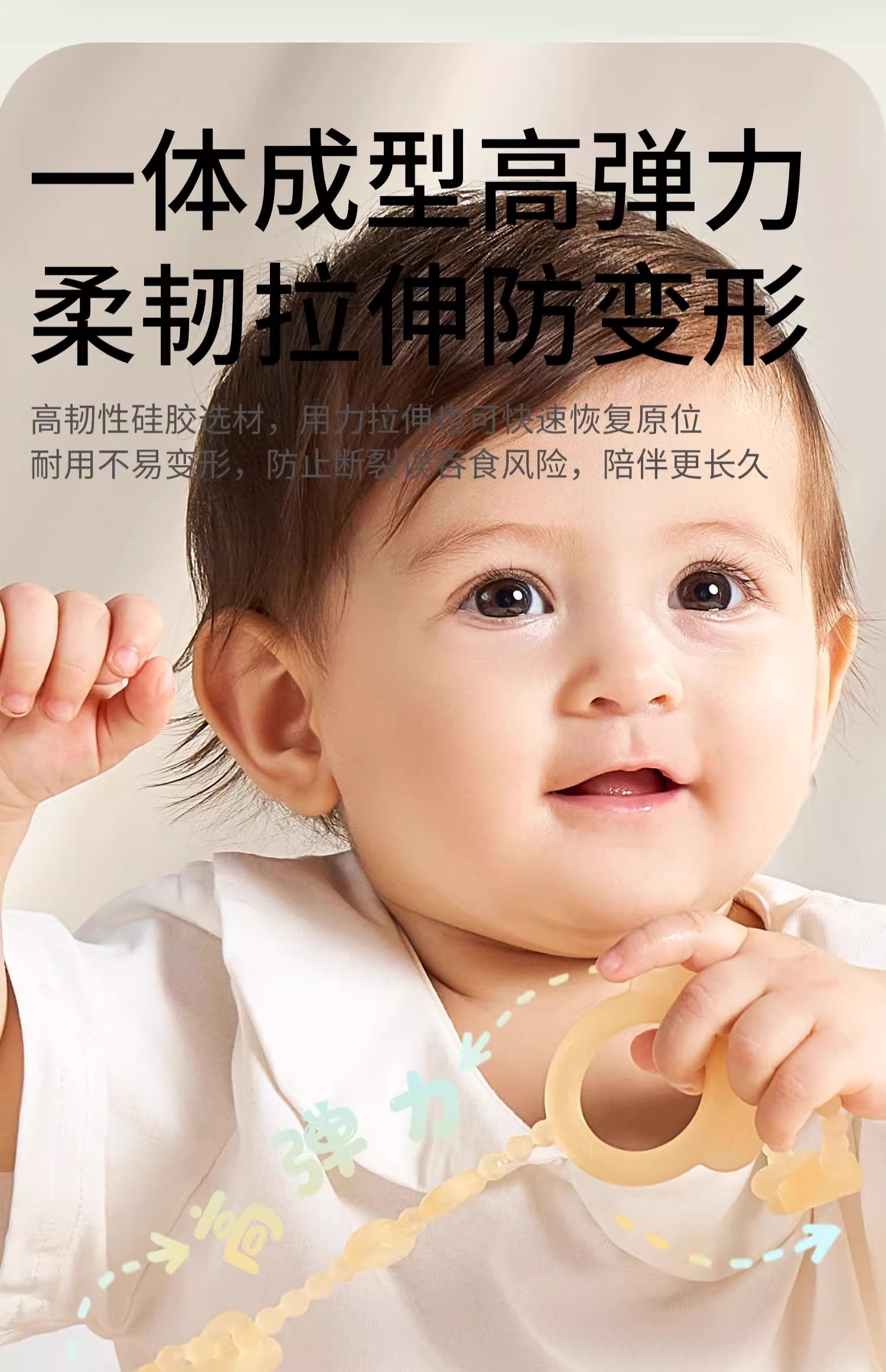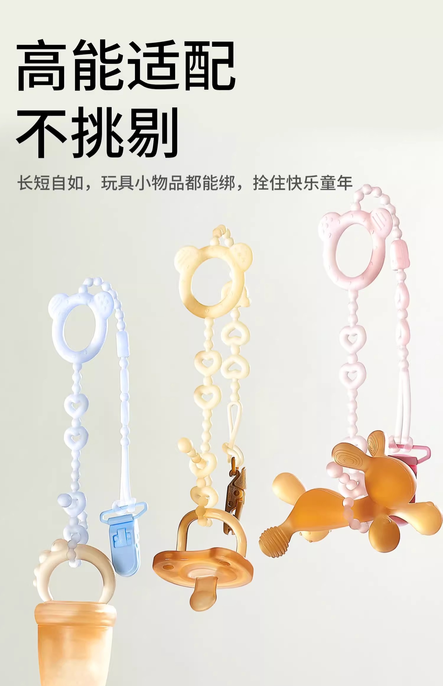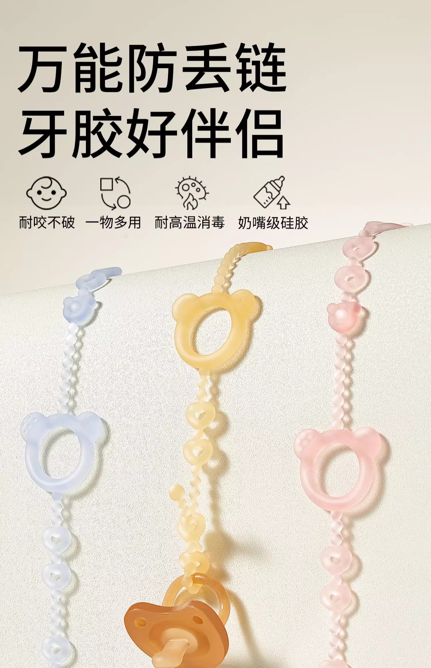 科巢婴儿牙胶防掉链绳子安抚奶嘴链夹子宝宝硅胶防丢链磨牙咬咬乐玩具
