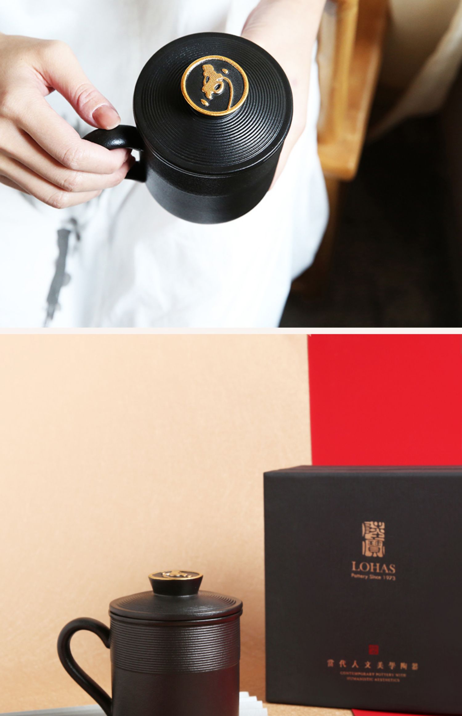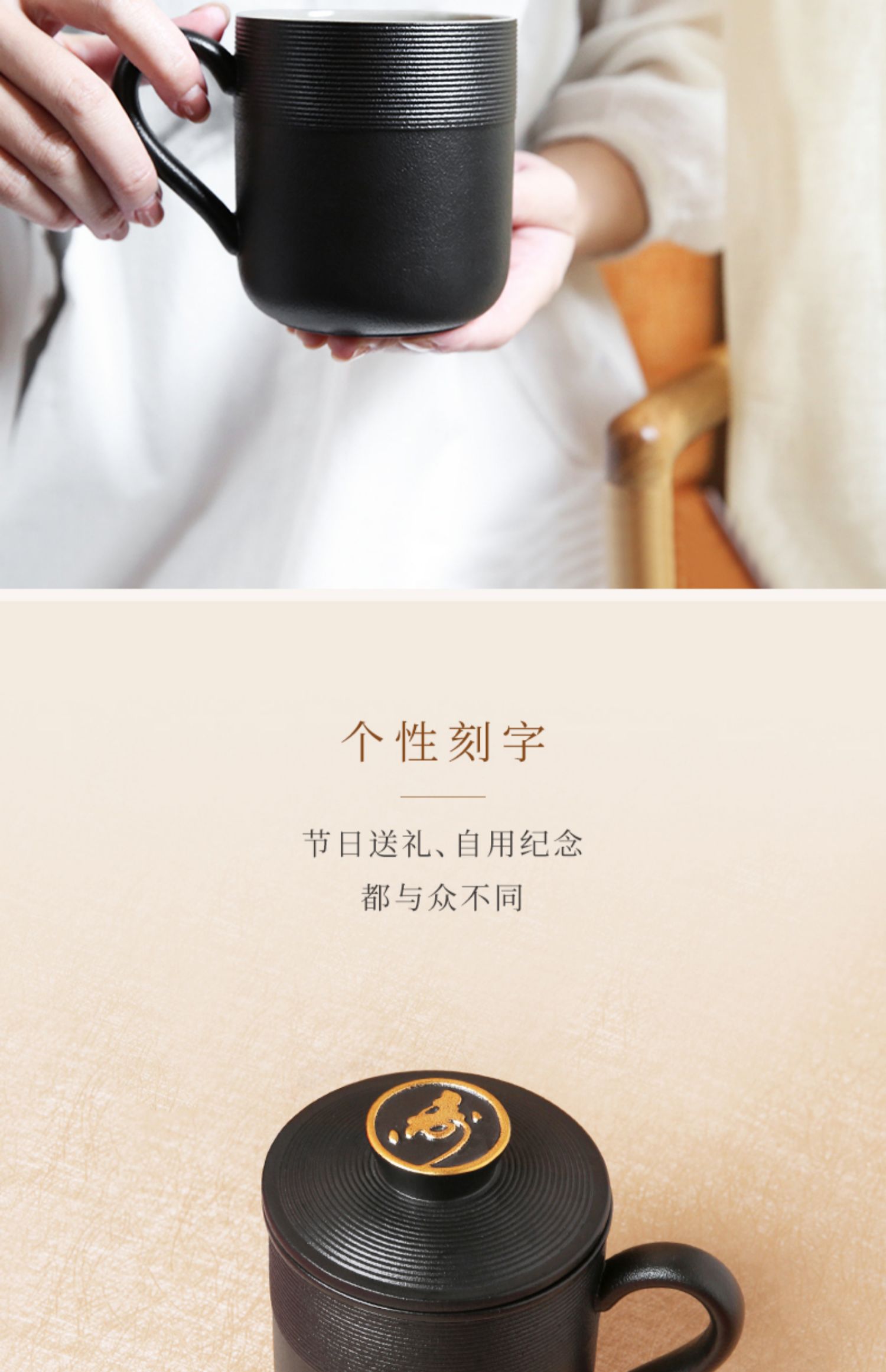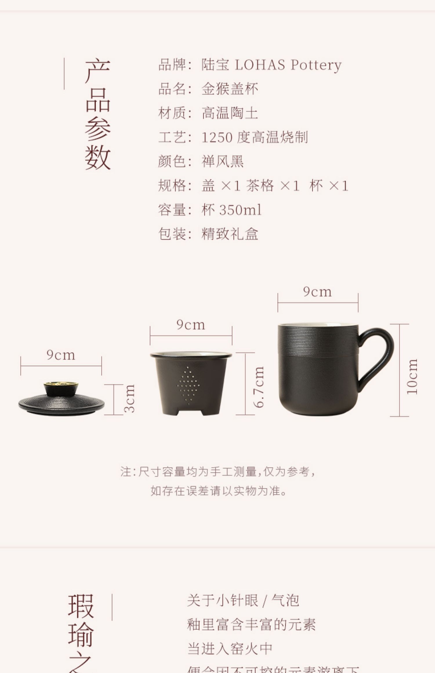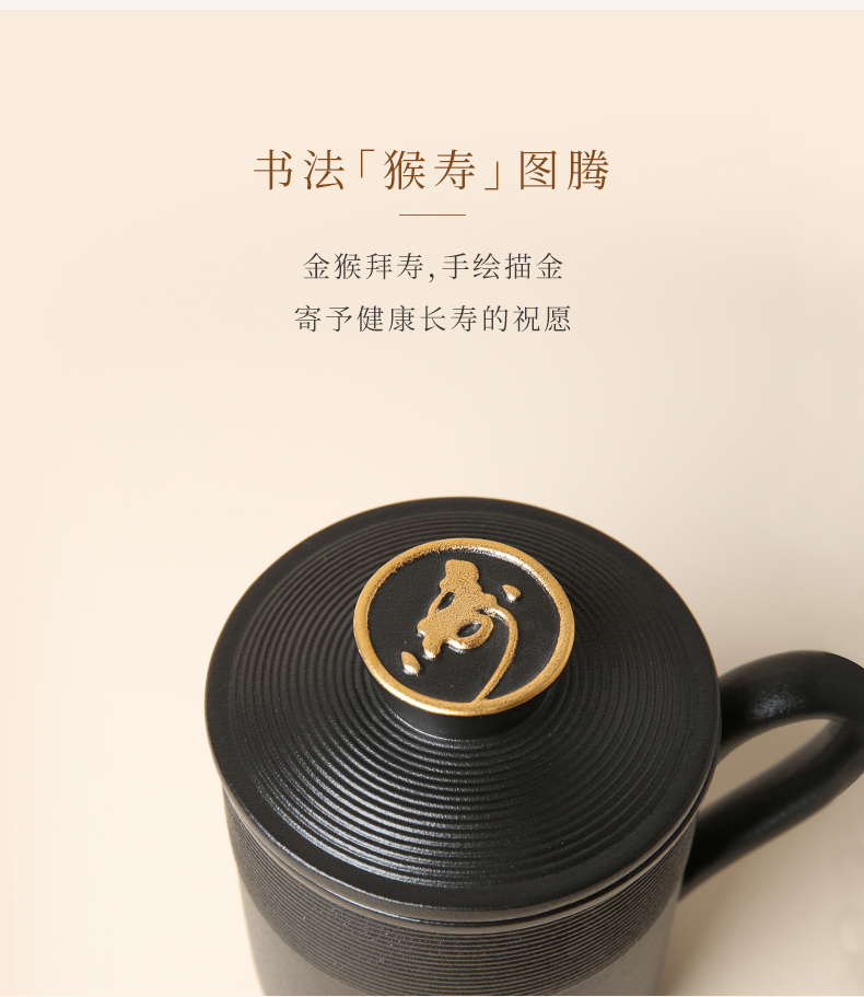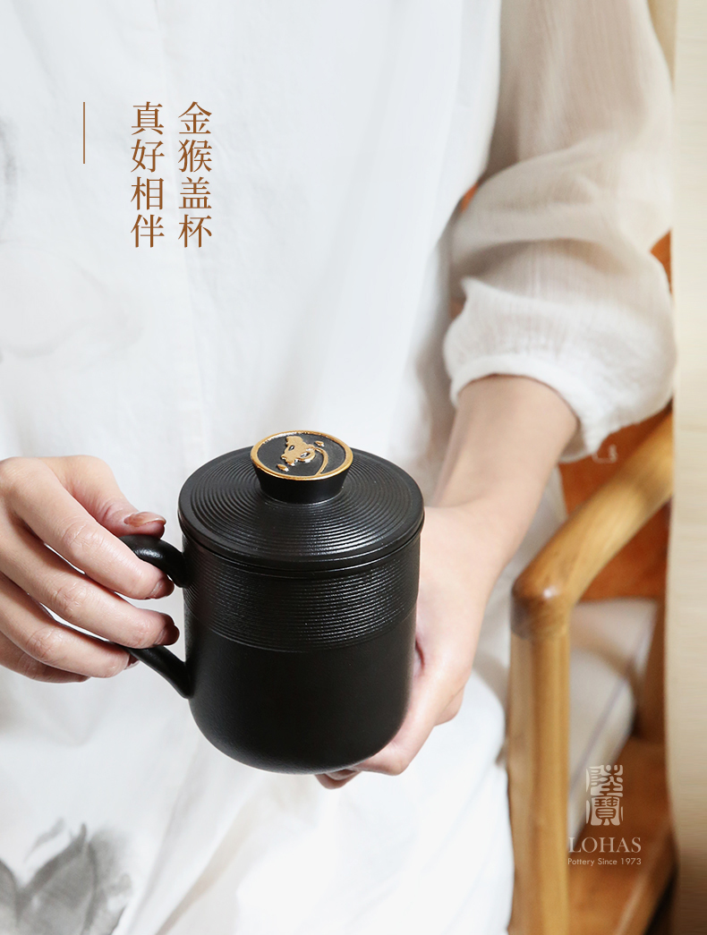陆宝陶瓷金猴盖杯茶水分离泡茶杯便携办公室喝水杯茶具