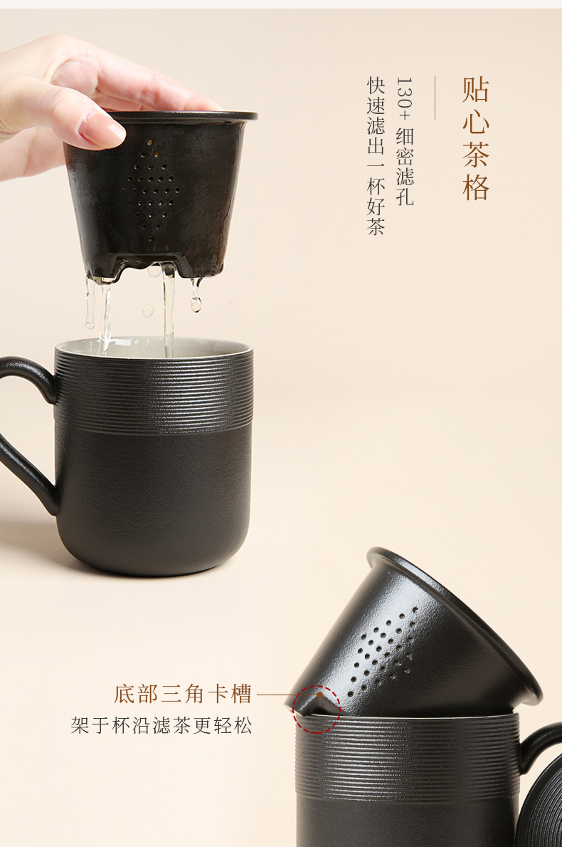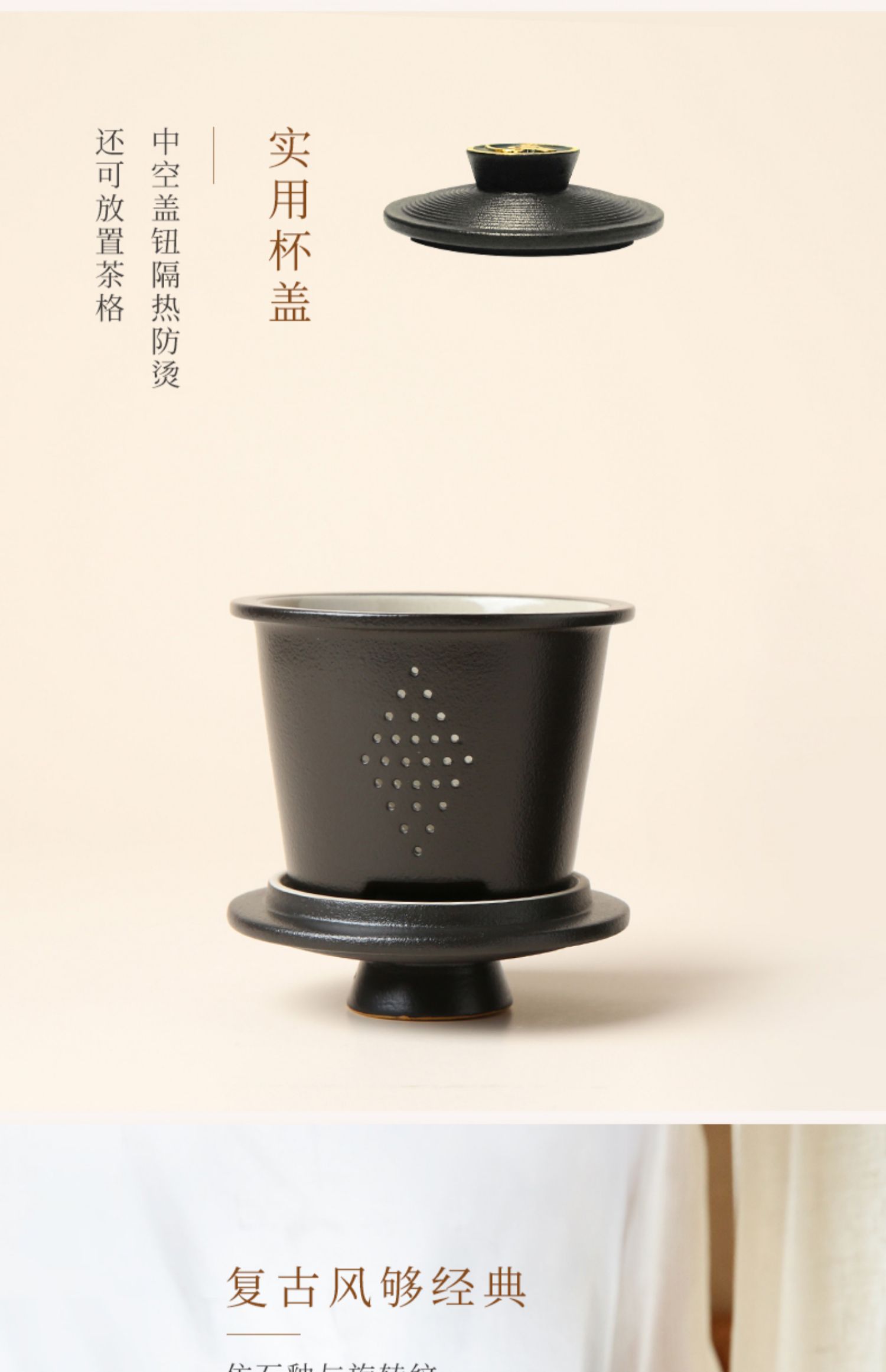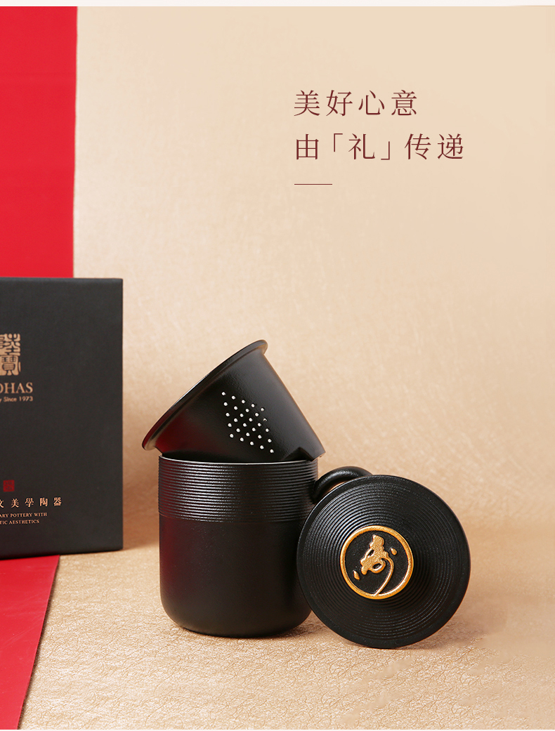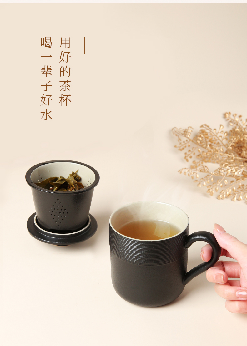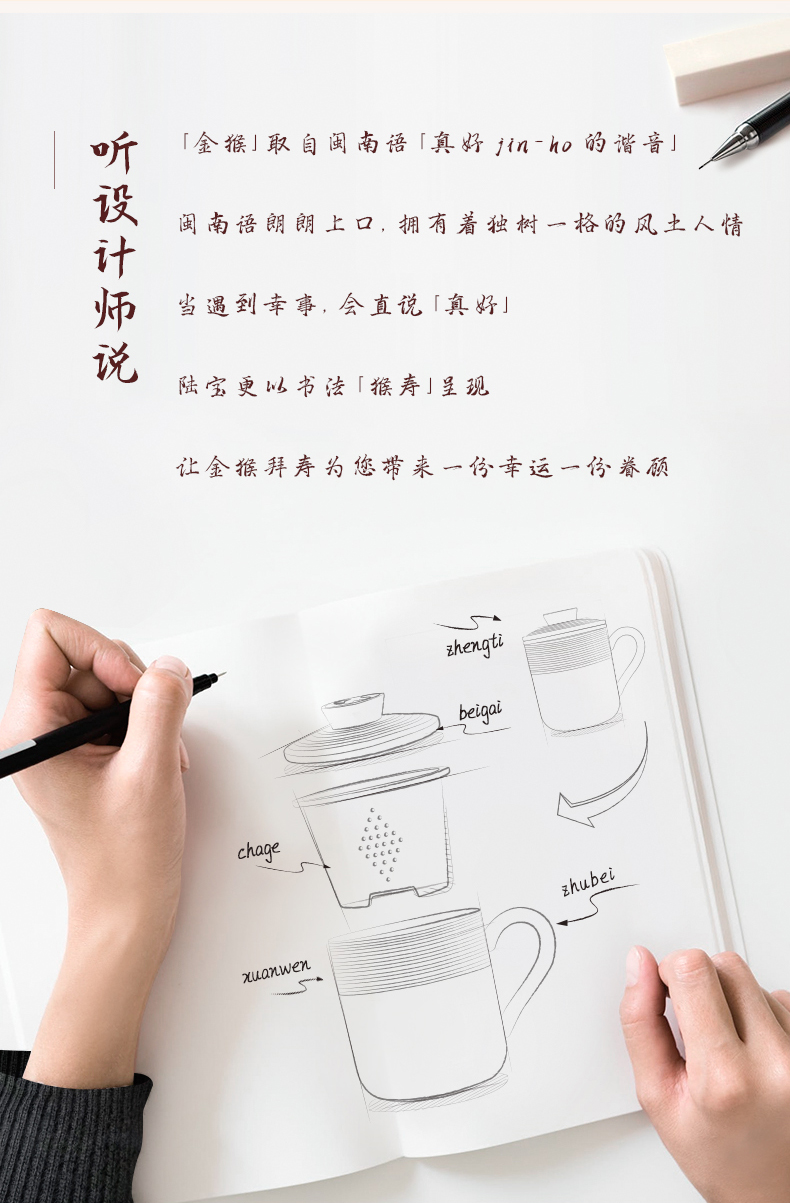 陆宝陶瓷金猴盖杯茶水分离泡茶杯便携办公室喝水杯茶具