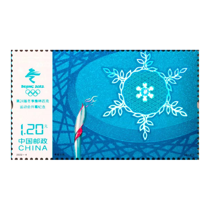 中国邮政于2022年2月4日发行了一套《第24届冬季奥林匹克运动会开幕纪念》纪念邮票一套2枚,全套邮票面值2.40元。计划发行数量为1150万套。