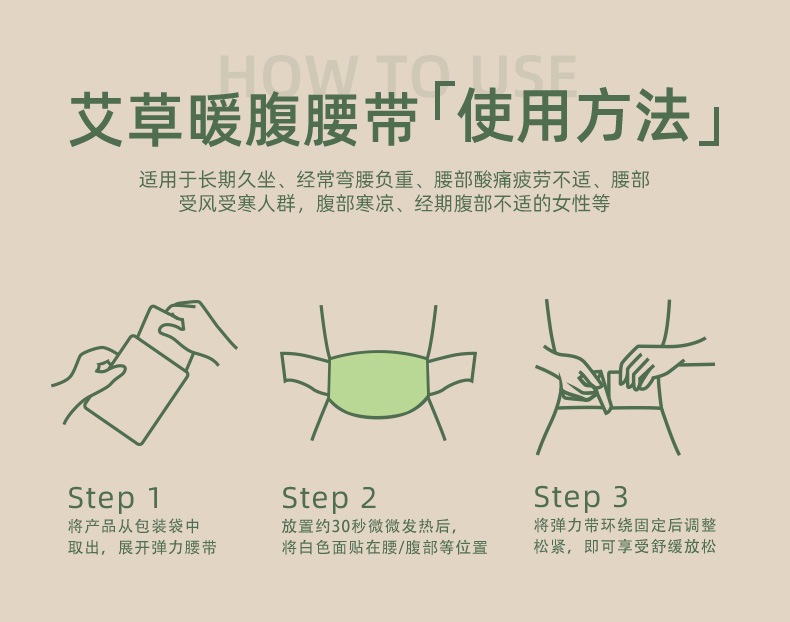 《活动:拍3减30元》【中草药包发热腰腹贴】一片能热8小时,魔术贴固定,弹性高可以伸拉,驱寒暖宫,适合各种腰围身形