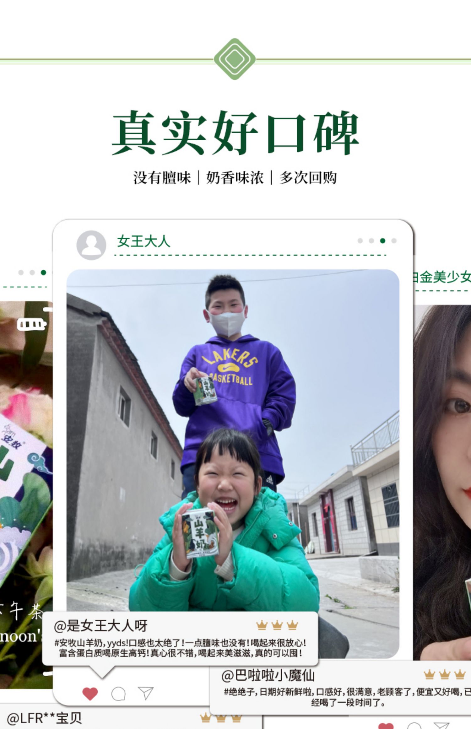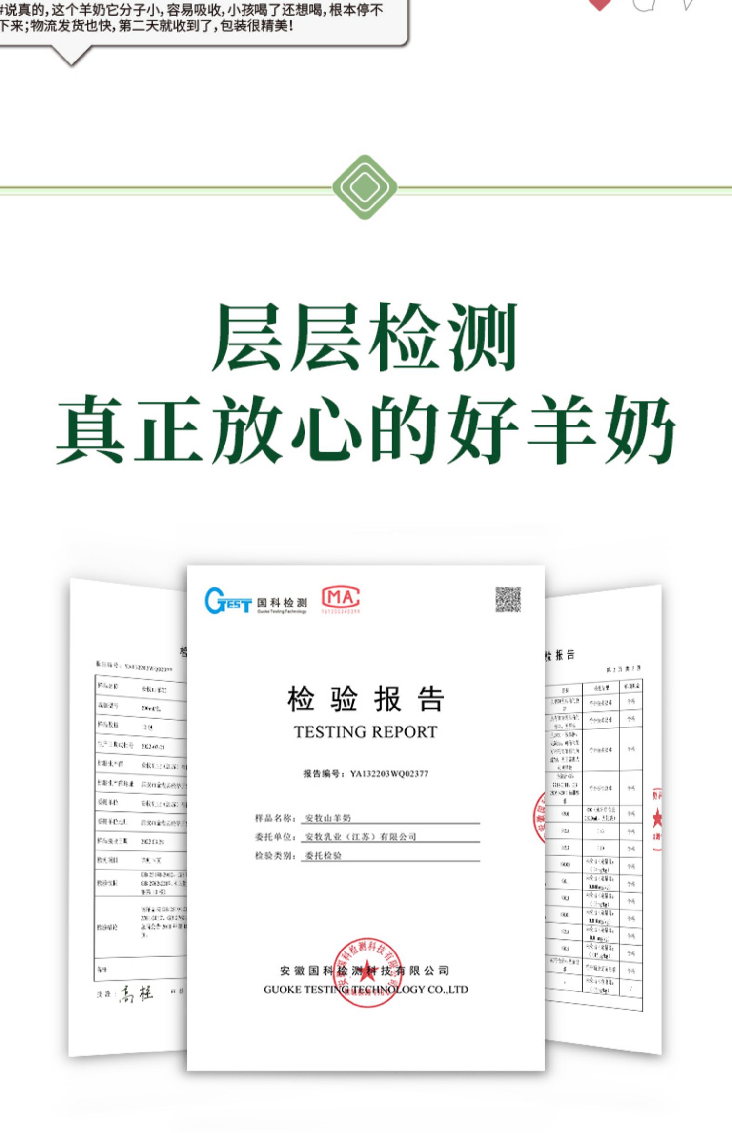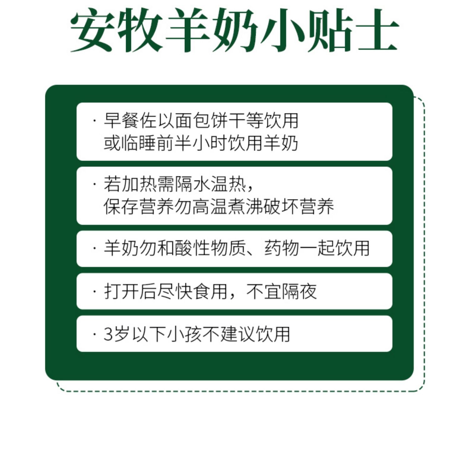 【温馨提示】因冬季气温过低,导致羊奶出现冻住的情况,属正常,请放置在屋内使其自然解冻,不影响口感,请放心饮用。
