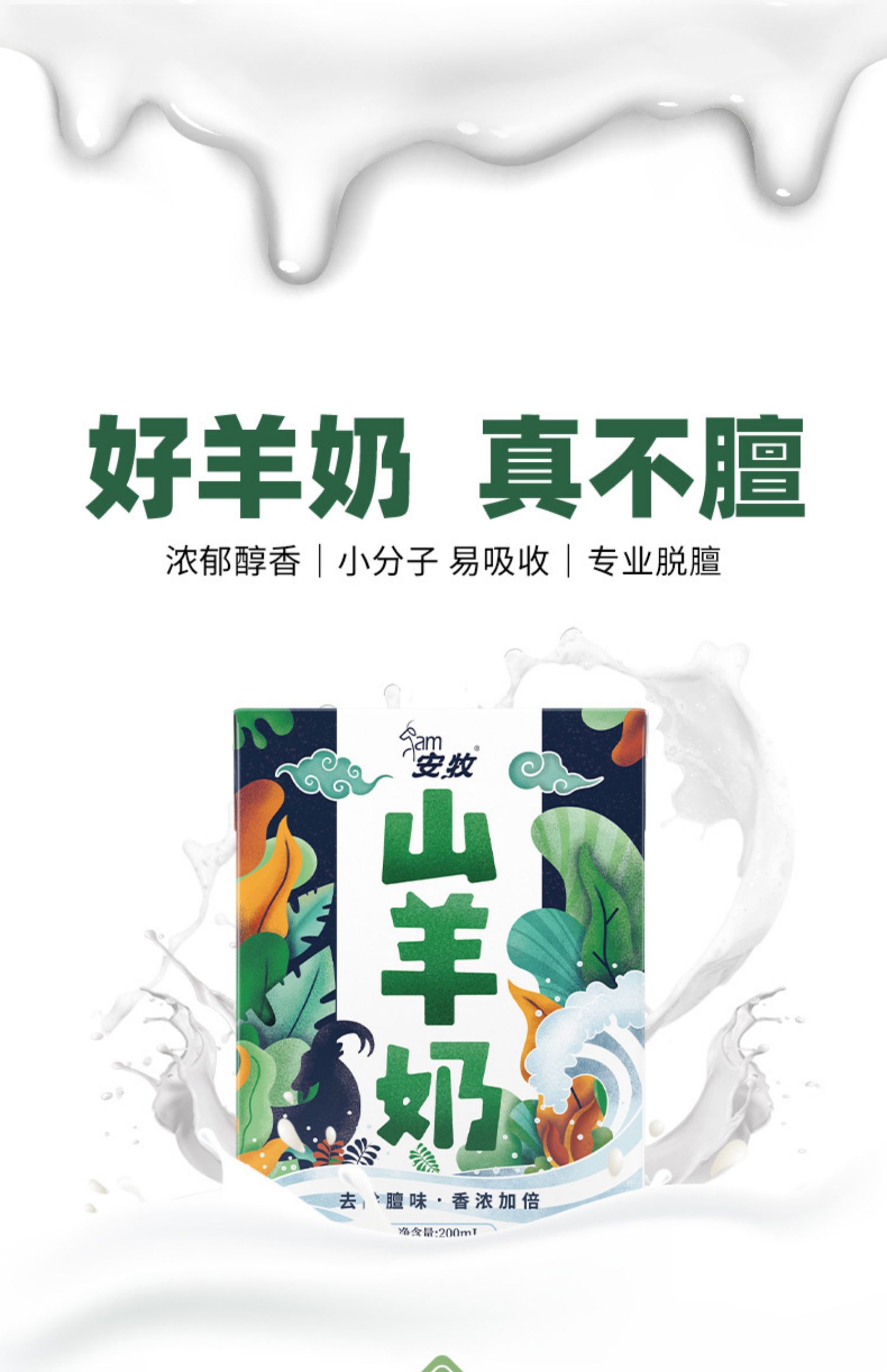 【旗舰店89一箱,我们两箱仅99元!】AMC脱膻发明专利 一点儿都不膻 小分子吸收率95% 安牧山羊奶200ml*10盒