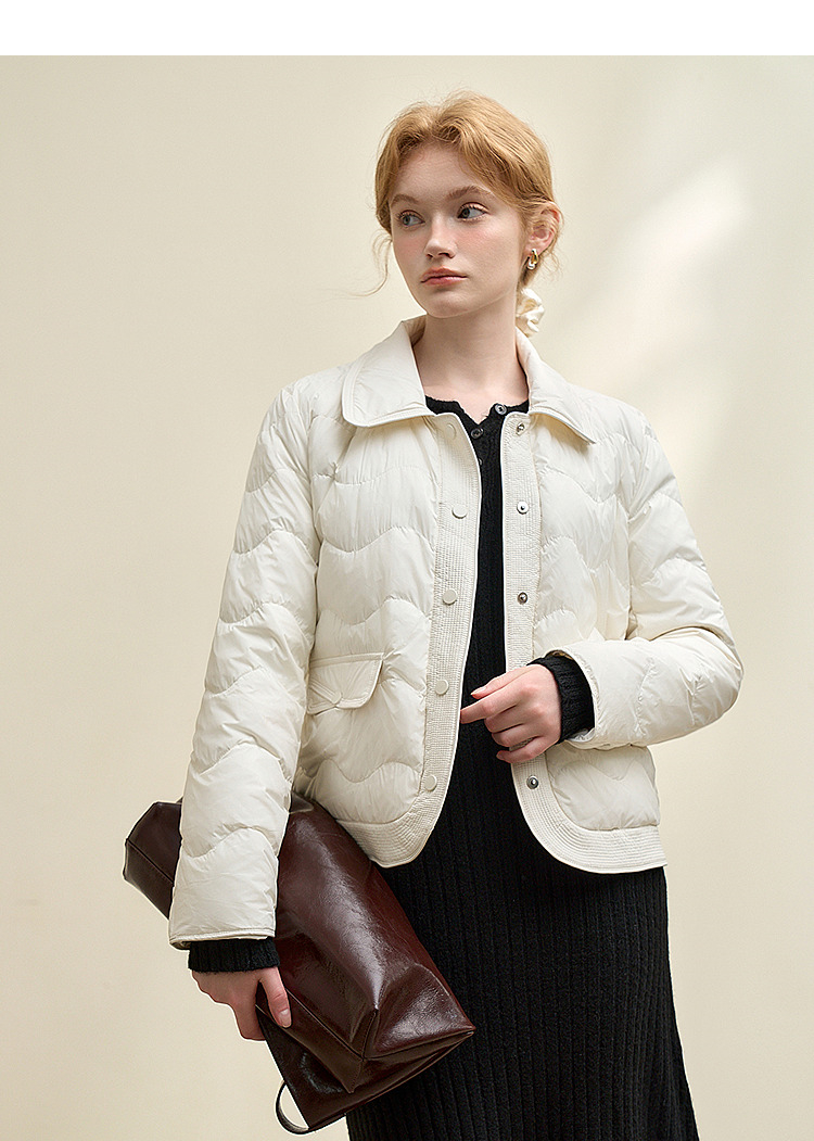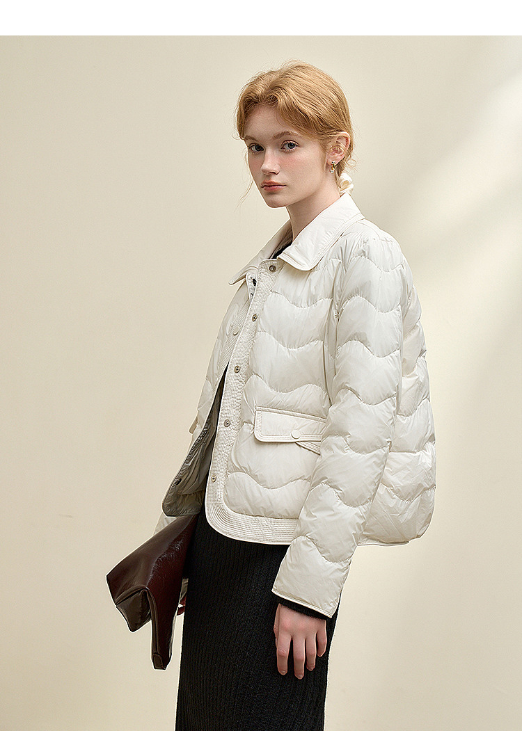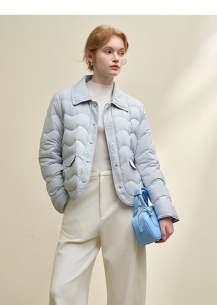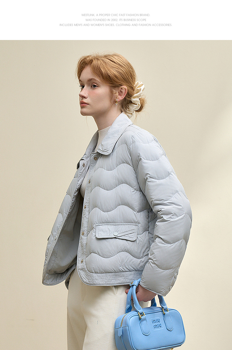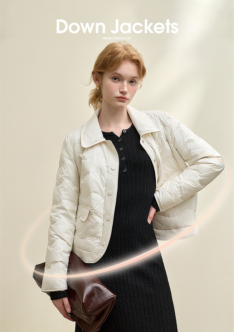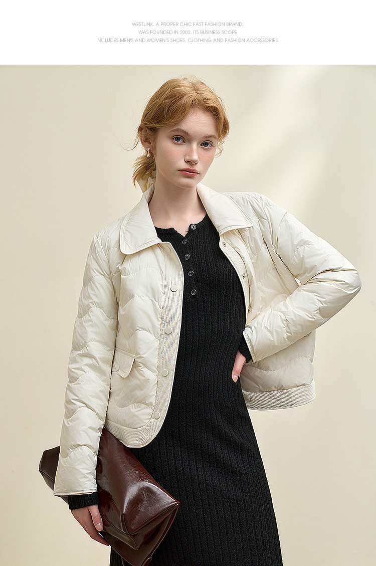 西遇立领连帽羽绒服女冬季新款小香风翻领加厚鸭绒短款外套D0043900