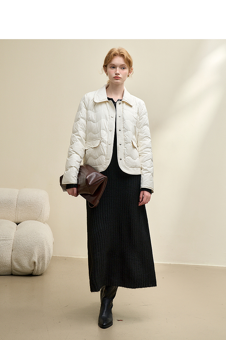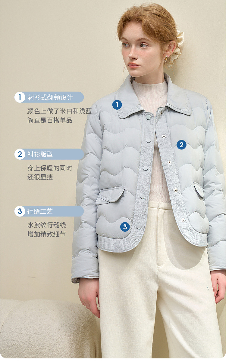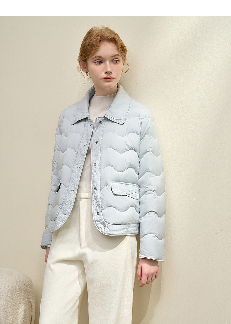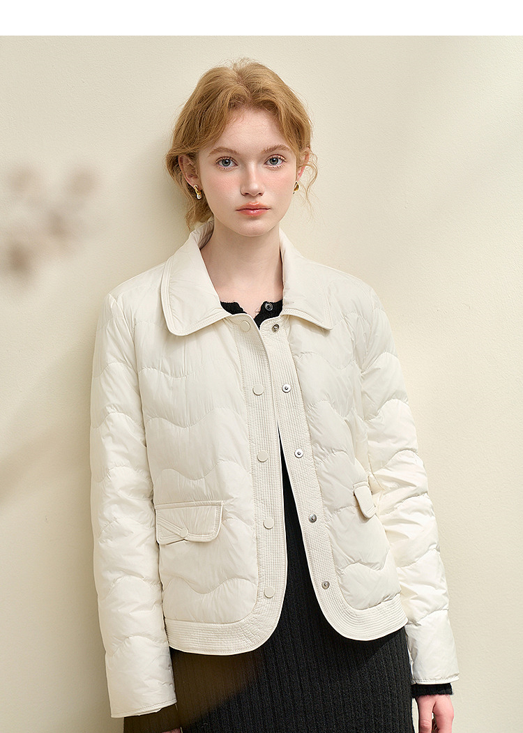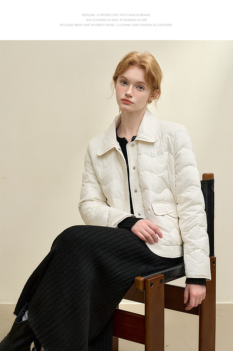 西遇立领连帽羽绒服女冬季新款小香风翻领加厚鸭绒短款外套D0043900