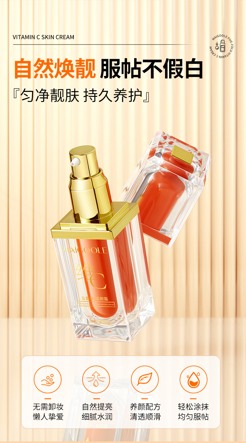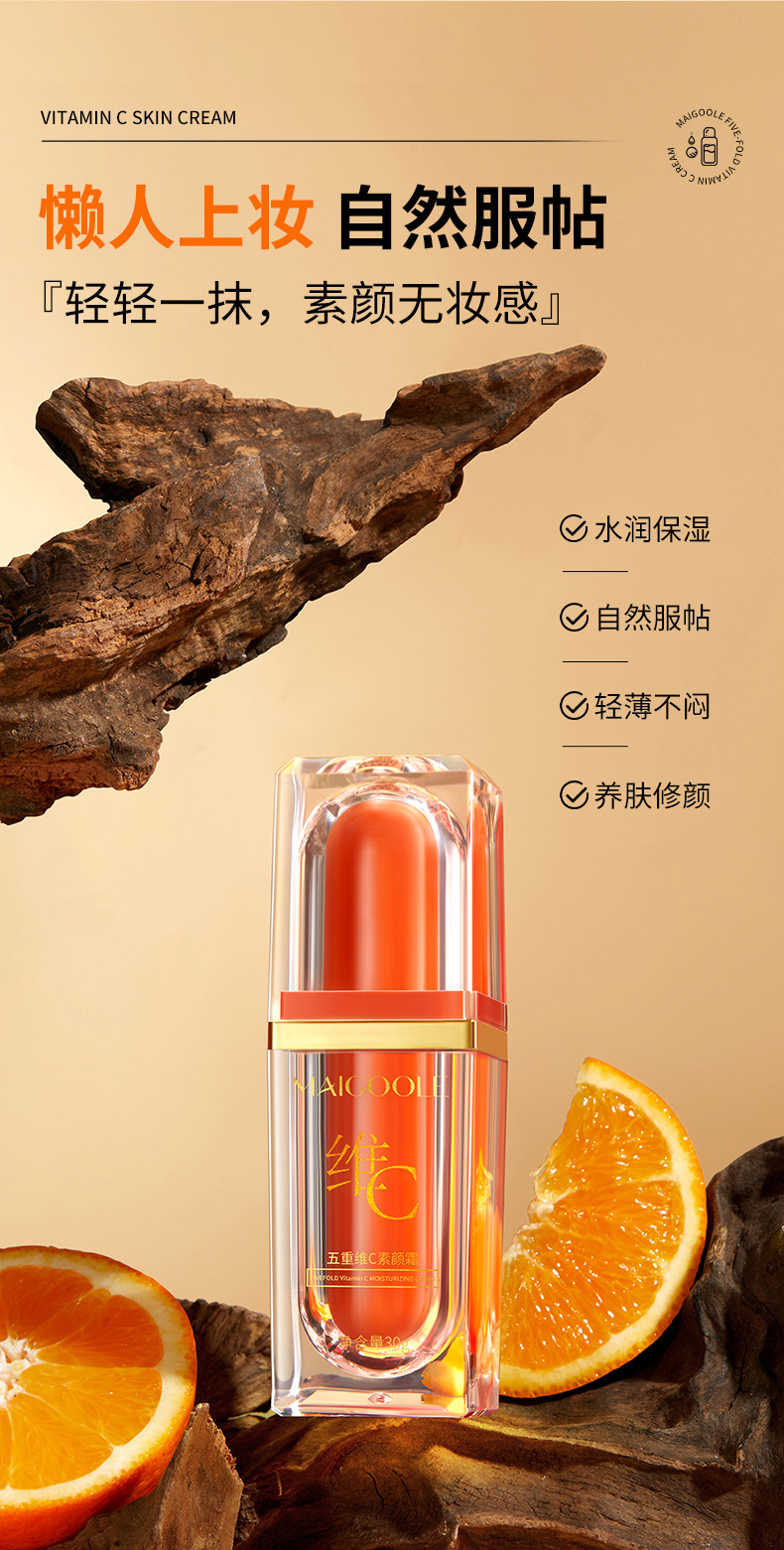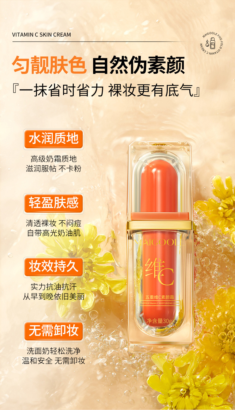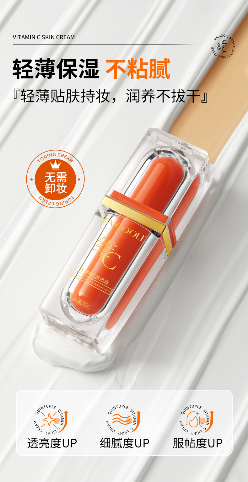 「买1送1!拼团同款」玫黛琳五重维C素颜霜 遮瑕隔离自然不假白保湿美妆懒人素颜霜妆前隔离