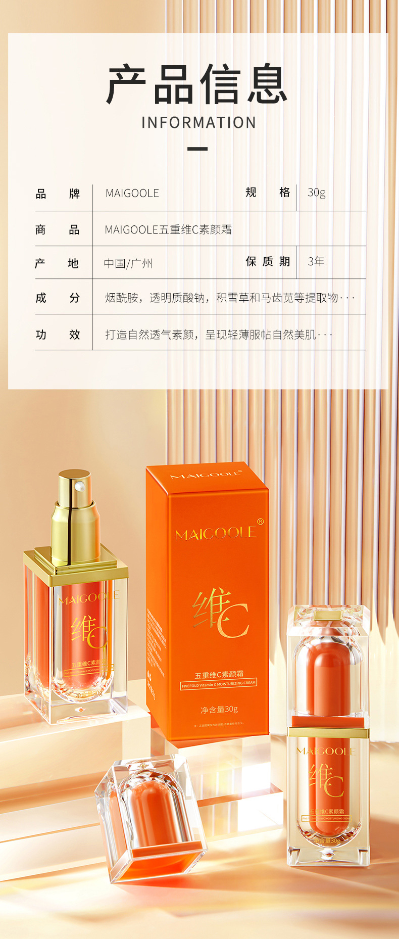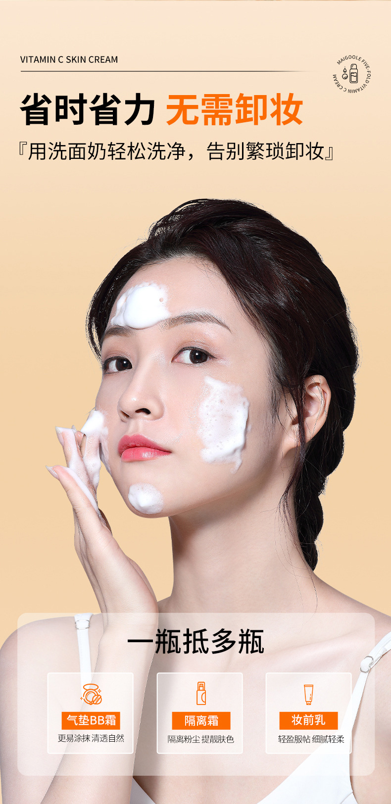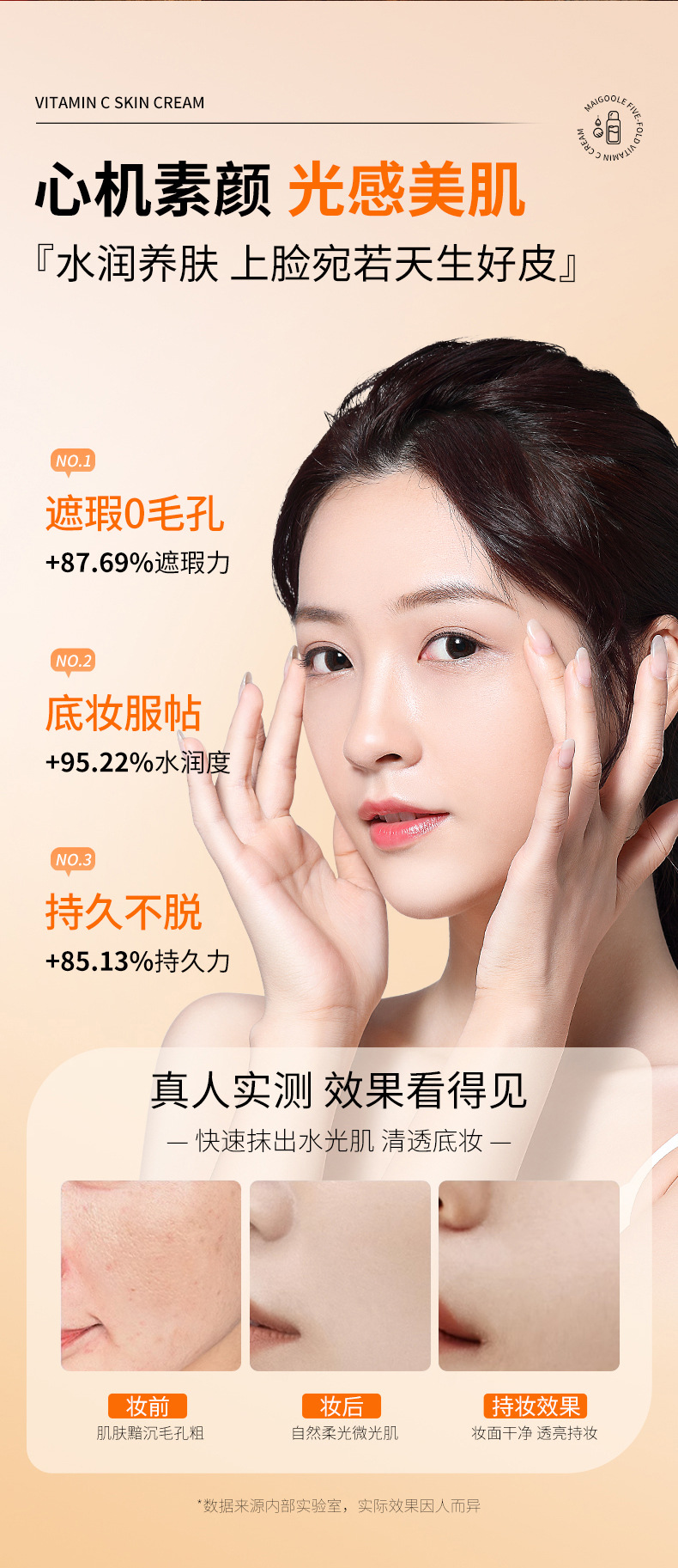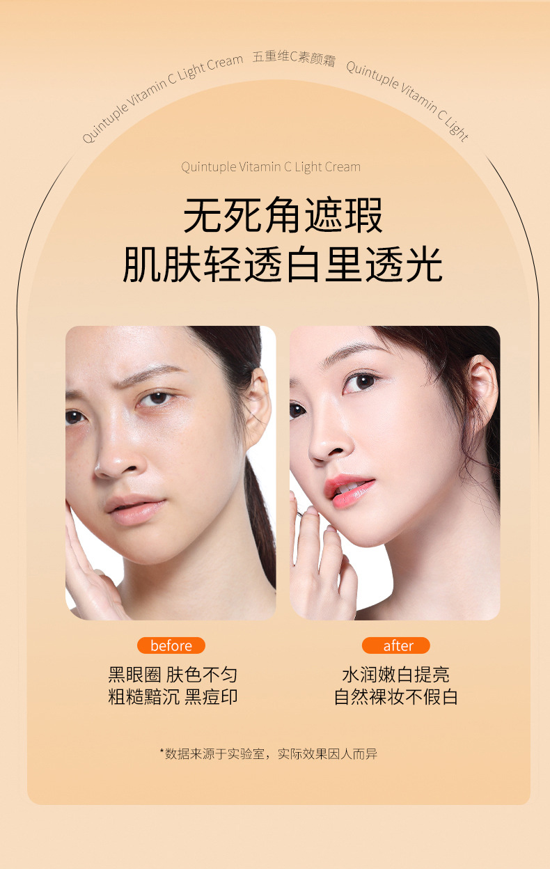 「买1送1!拼团同款」玫黛琳五重维C素颜霜 遮瑕隔离自然不假白保湿美妆懒人素颜霜妆前隔离