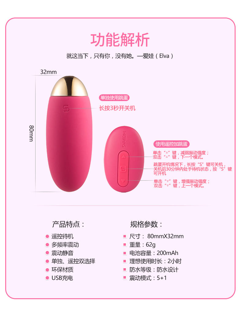 SVAKOM 司沃康 艾娃 女用智能无线遥控充电防水跳蛋