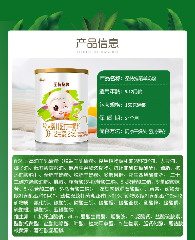 圣特拉慕羊奶粉2段150g 荷兰奶源