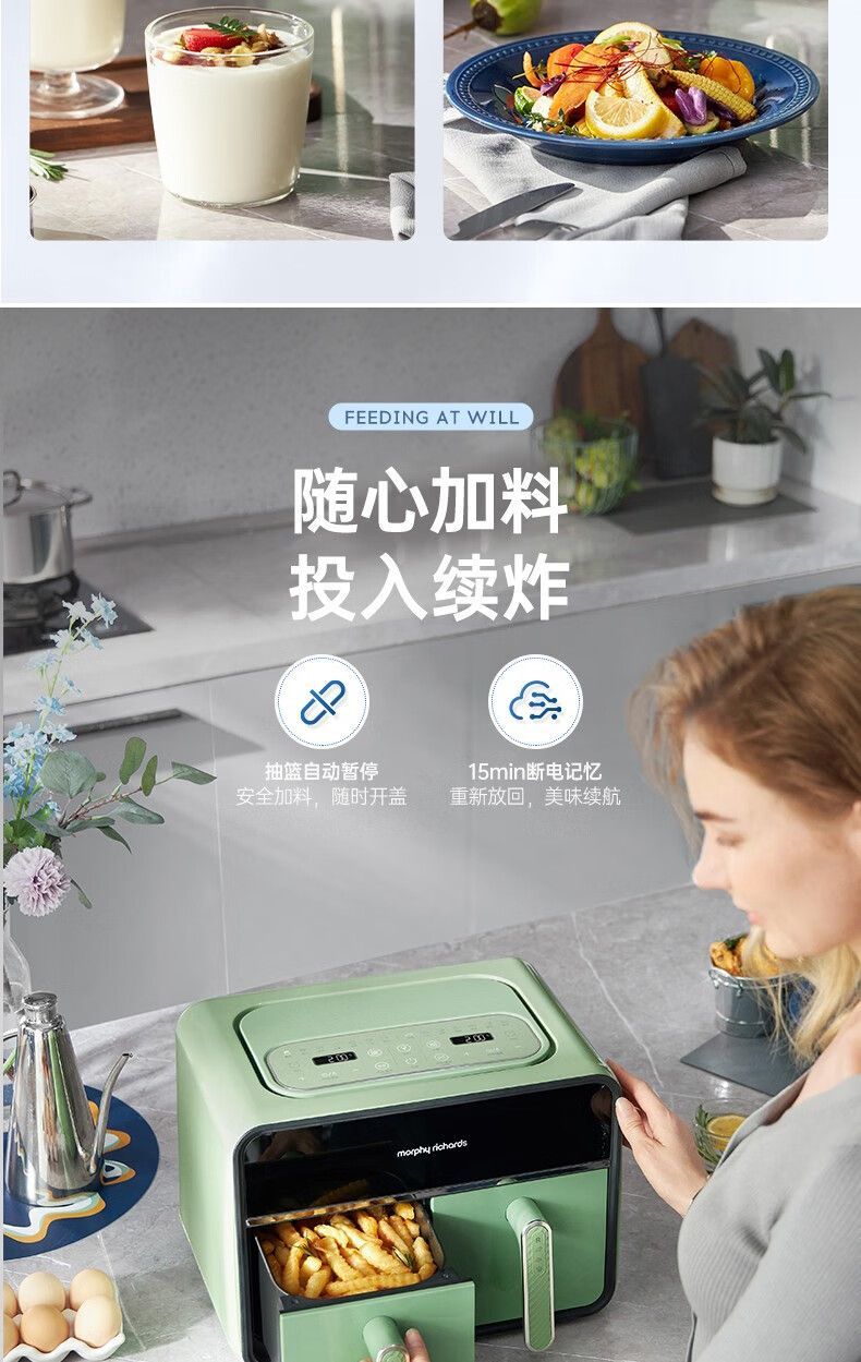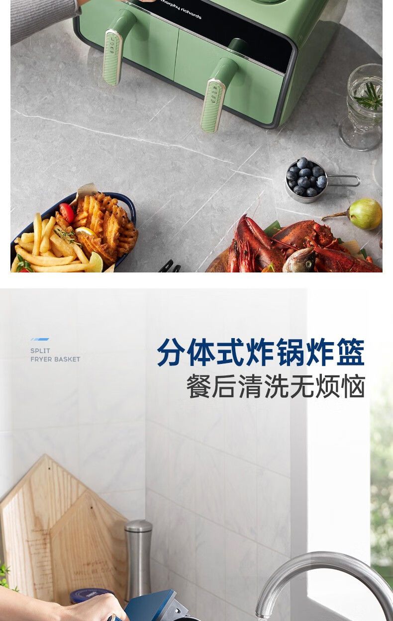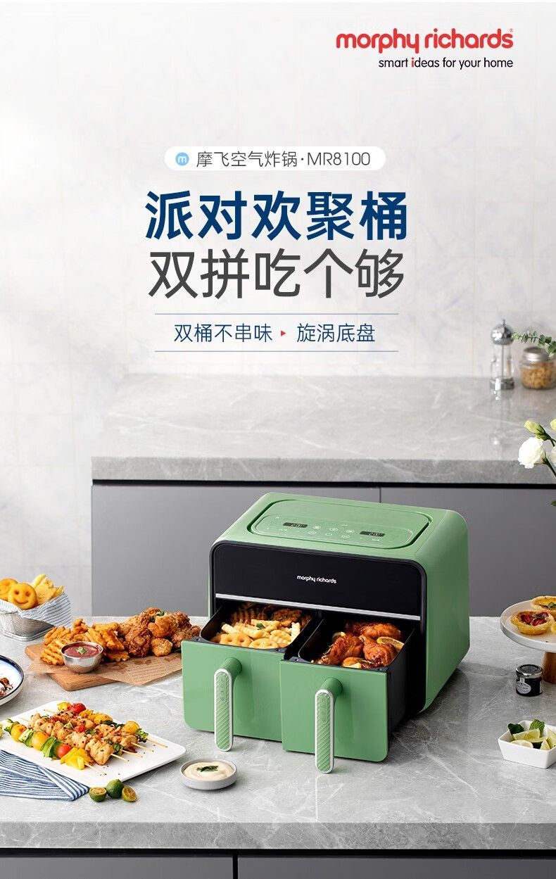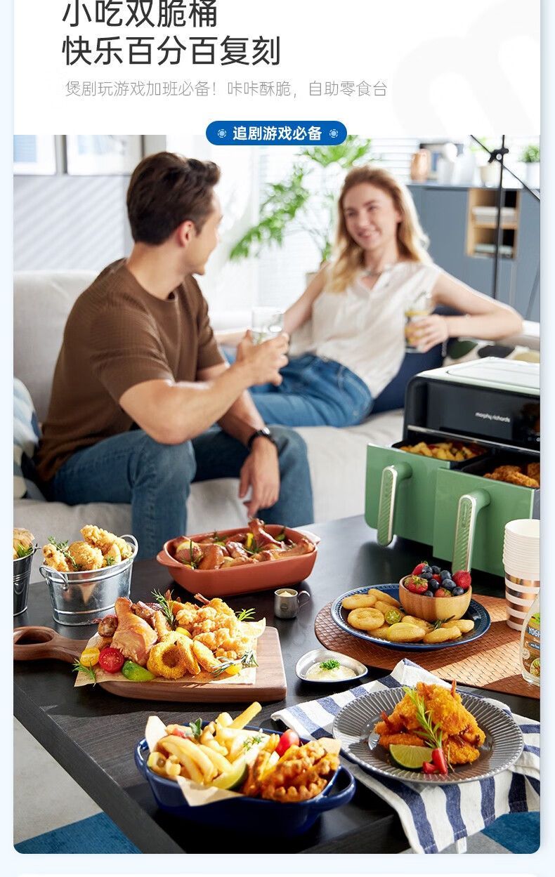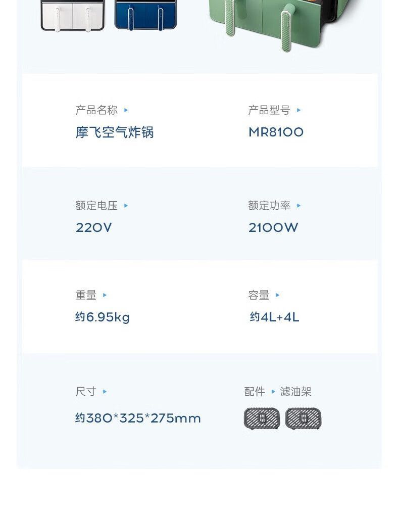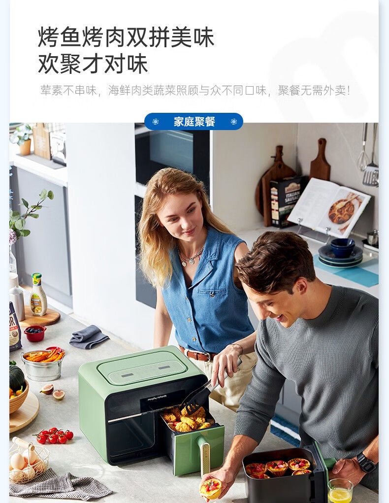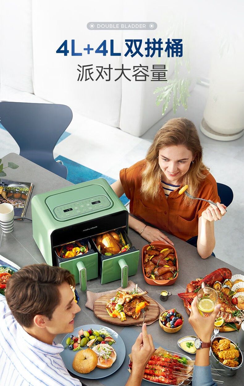 摩飞MR8100空气炸锅MR8100多功能左右双仓大容量炸薯条机可视电炸锅家用