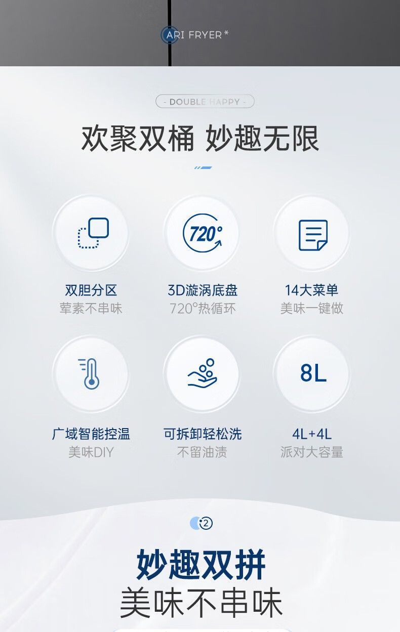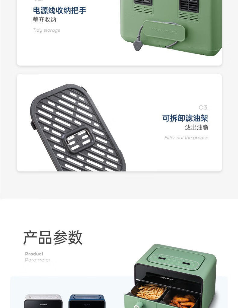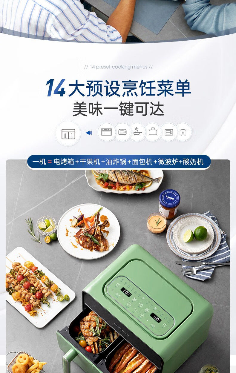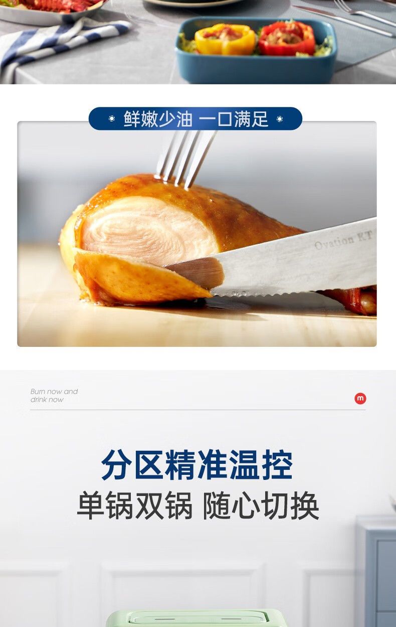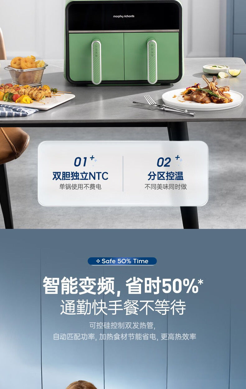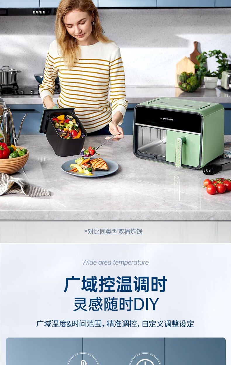 摩飞MR8100空气炸锅MR8100多功能左右双仓大容量炸薯条机可视电炸锅家用