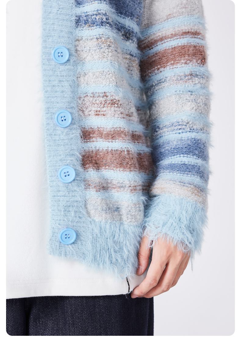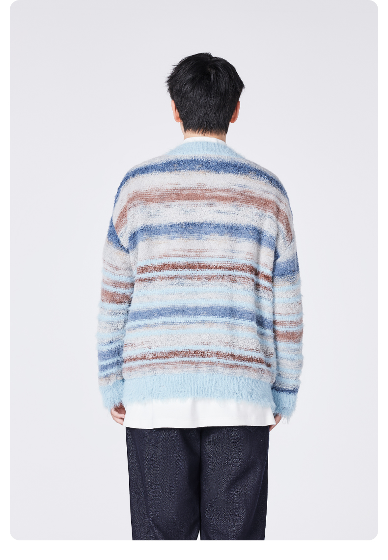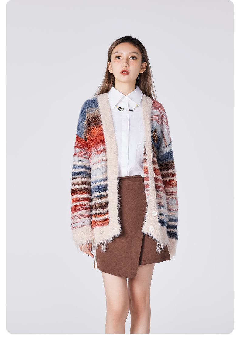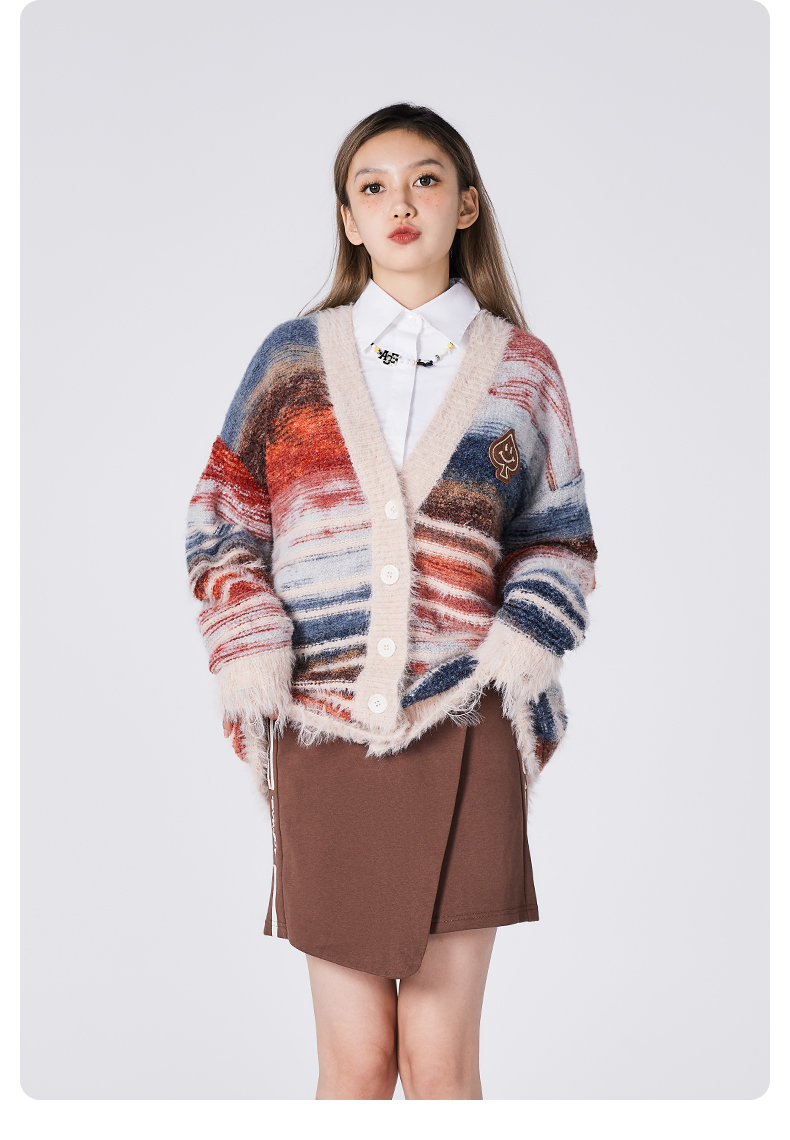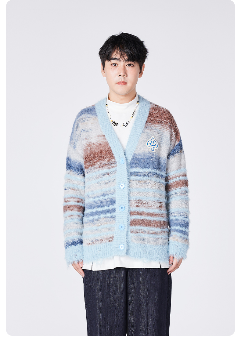 [种地吧赵小童同款]YKYB黄子韬开衫毛衣潮牌新款针织衫油画渐变个性破坏毛边宽松外套Y34NCG067