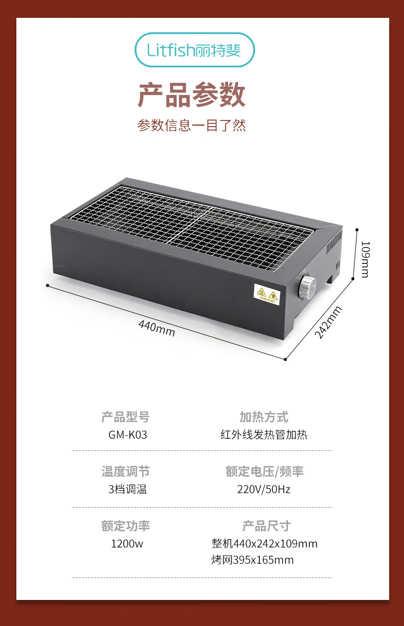 【小家电】丽特斐电炭一体烧烤炉GM-K03 HF