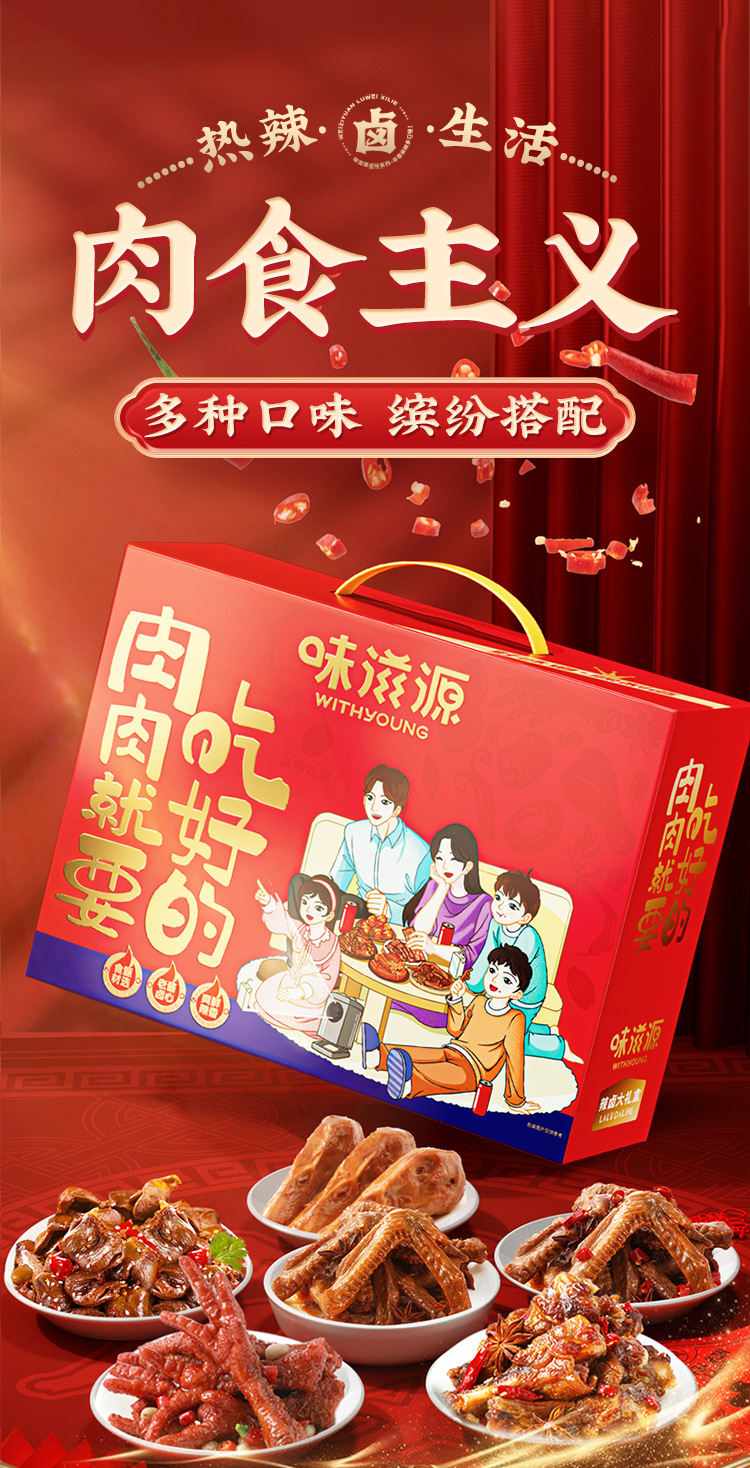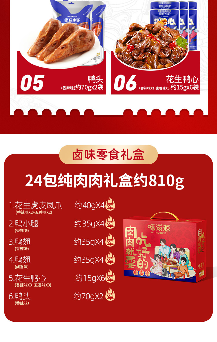 【24包纯肉礼盒】味滋源纯肉礼盒 810g虎皮凤 卤味爪鸭腿鸭翅卤味大礼包 年货礼盒