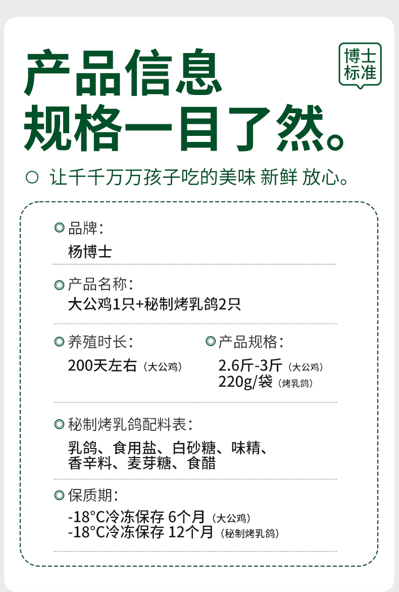【杨博士自营 公鸡+鸽子组合】美味健康 孩子爱吃