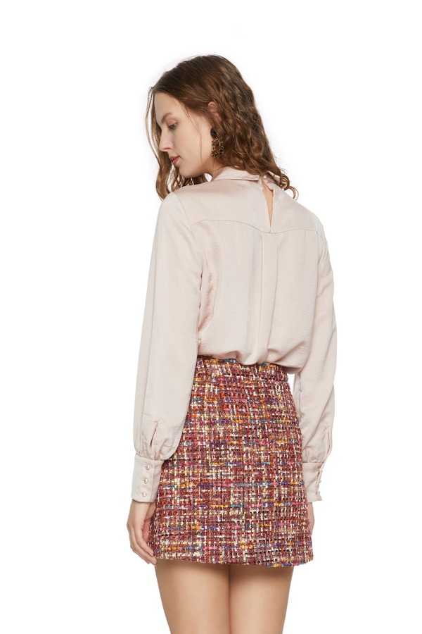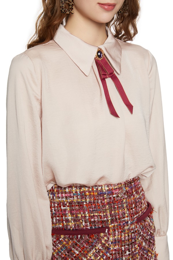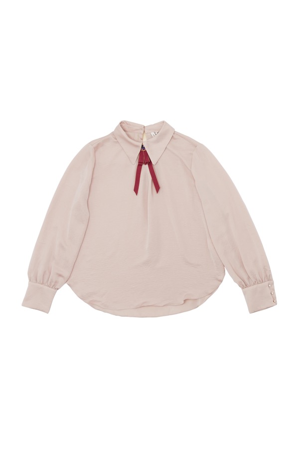 HOPESHOW红袖 粉色复古领结衬衫 5563