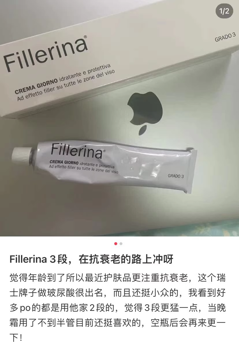 比如玻尿酸,国产80%都只是解决保湿、补水。Fillerina则是解决了,它能渗透至真皮。