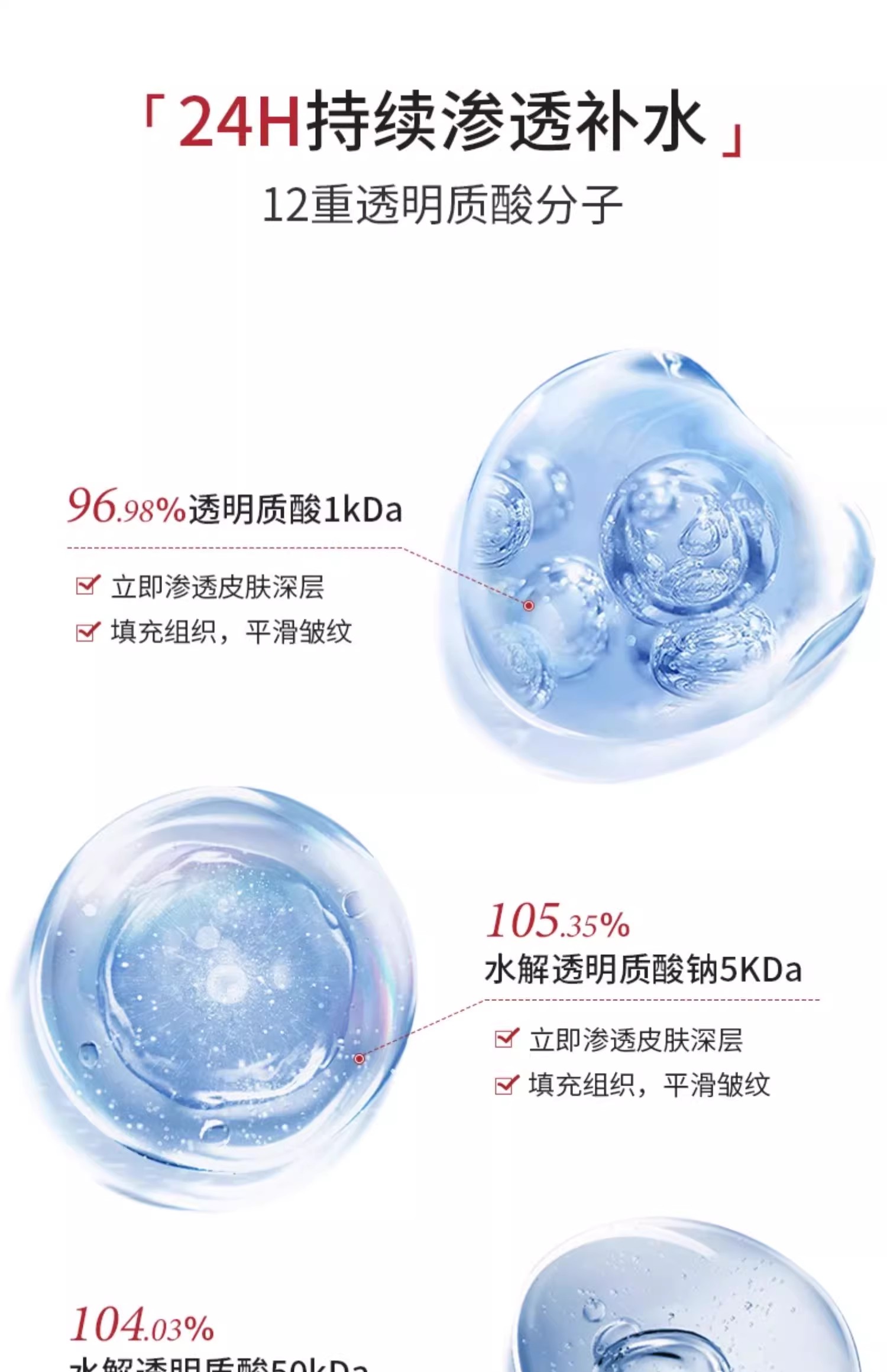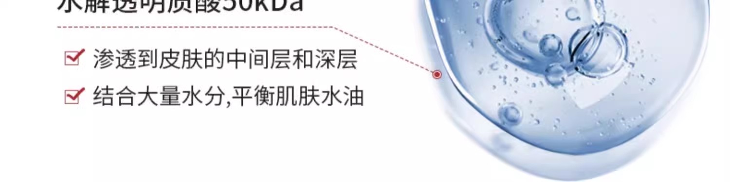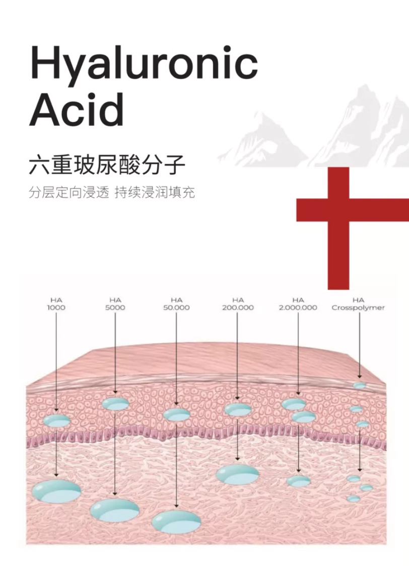 6重玻尿酸,与针剂一样!分成不同道尔顿,层层填充皮肤细胞。一下子丰盈起来!靠的就是这些。