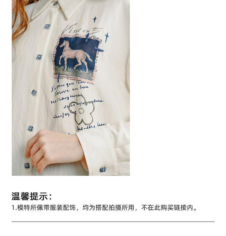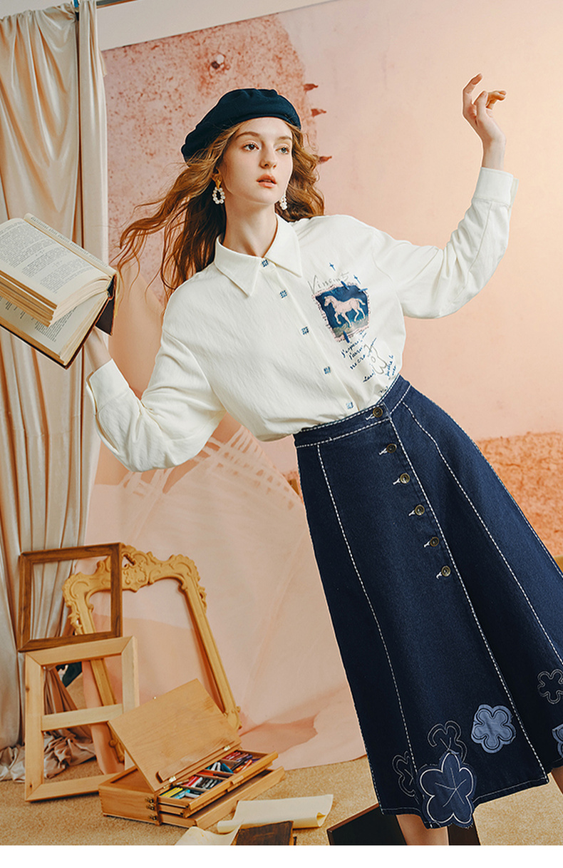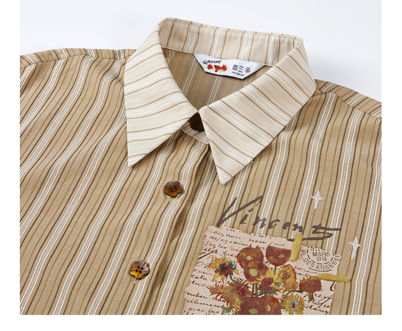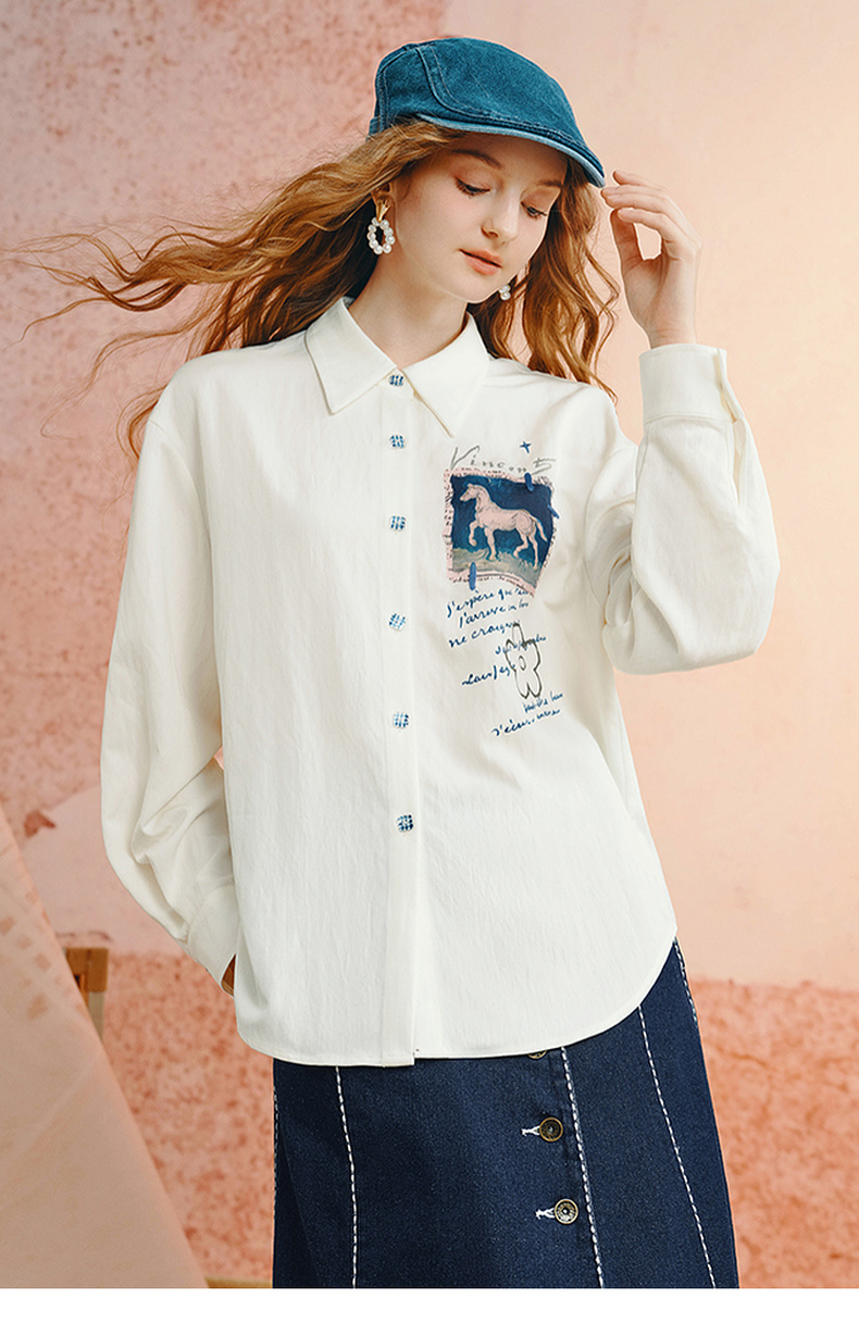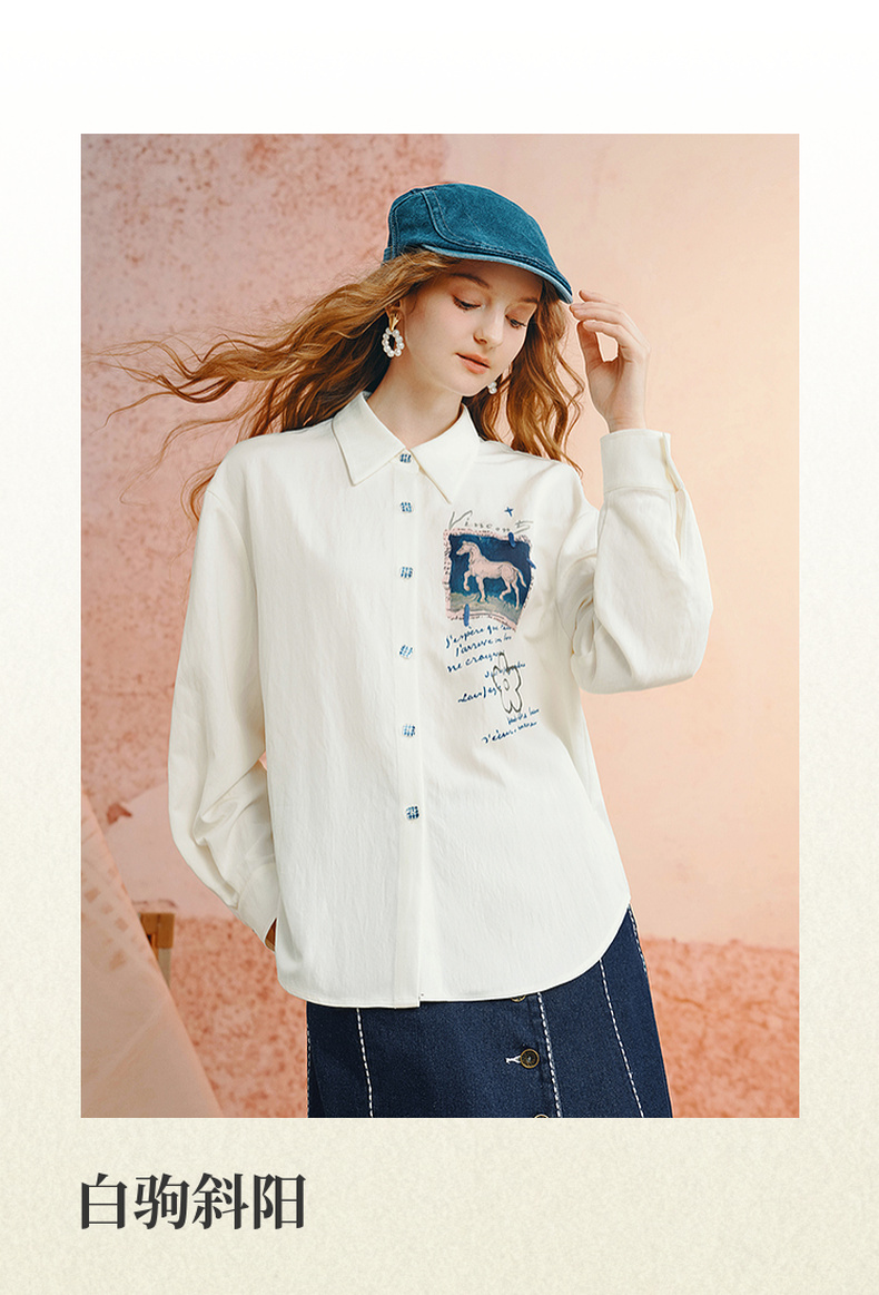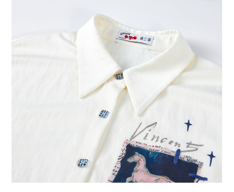两三事梵高文艺 白驹斜阳 2025秋季新款复古印花刺绣长袖衬衫女