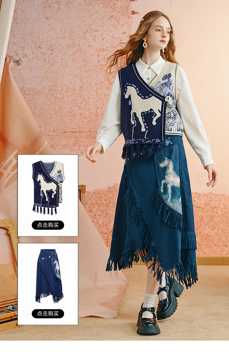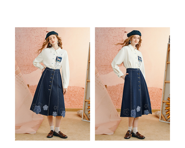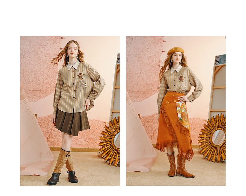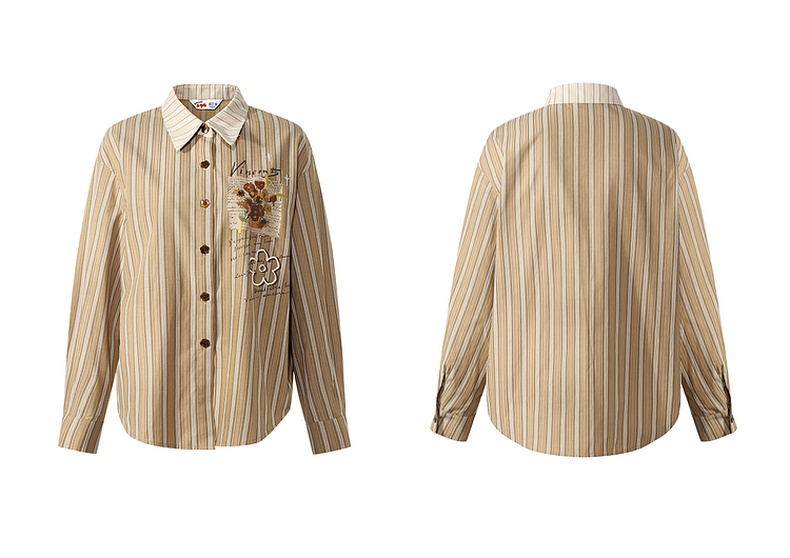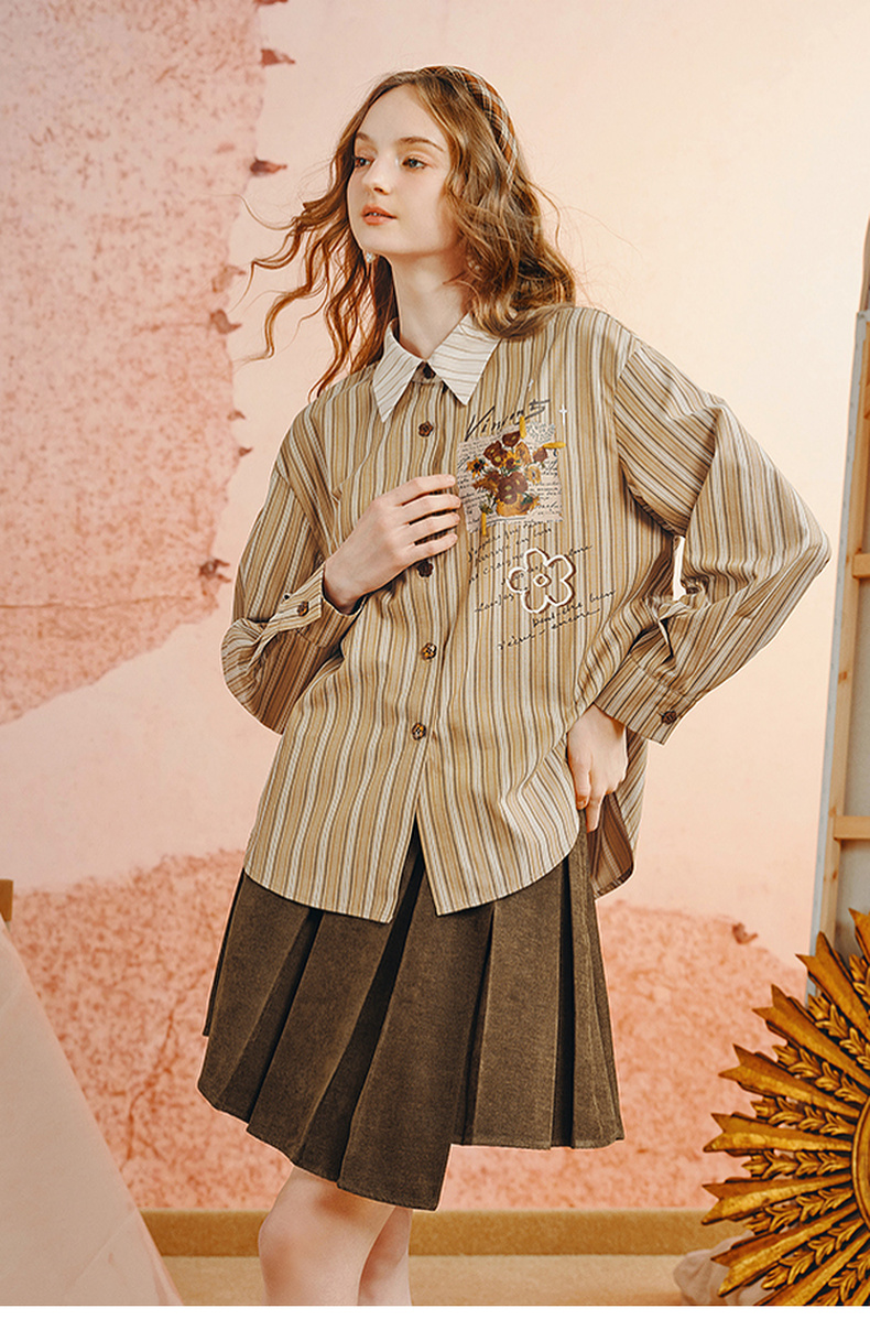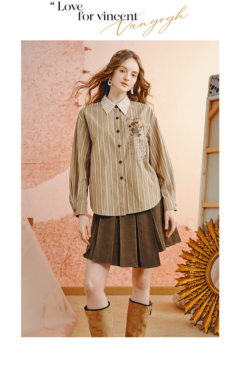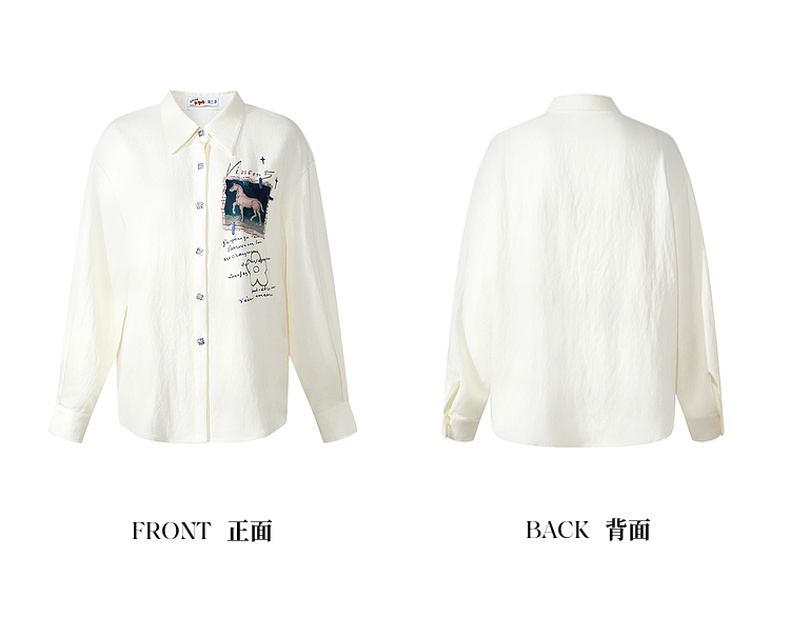 两三事梵高文艺 白驹斜阳 2025秋季新款复古印花刺绣长袖衬衫女