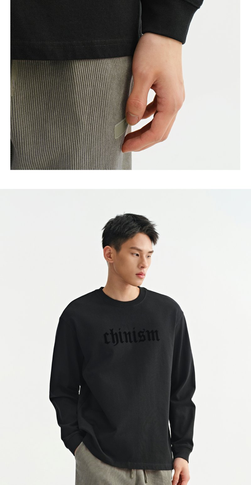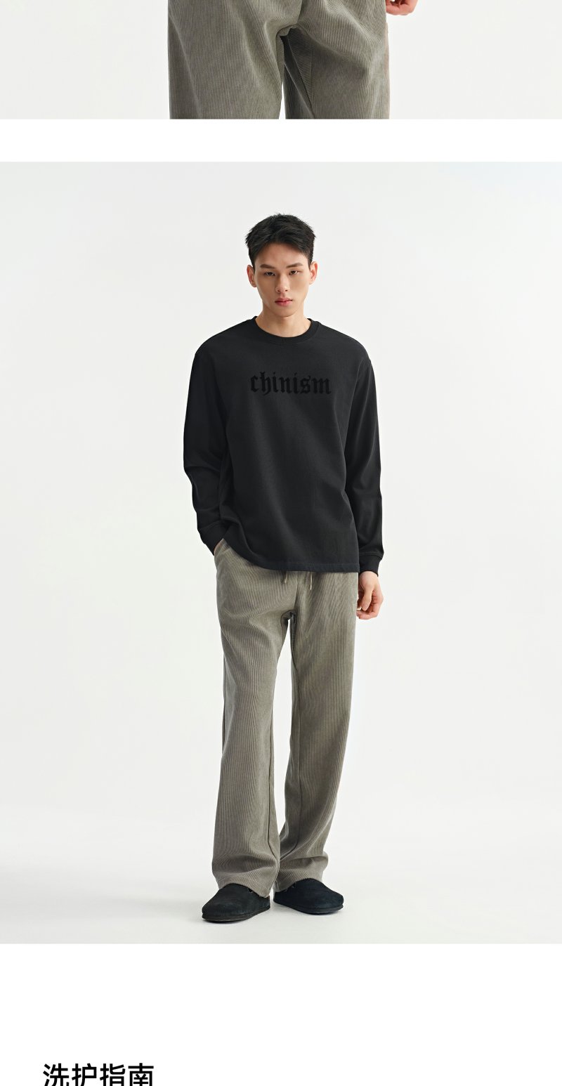 【商场同款】CHINISM赤尘 植绒印花LOGO长袖T恤男早秋纯棉打底衫