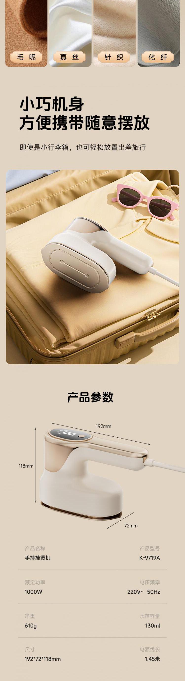 奥戈那 手持挂烫机家用熨烫机便携大蒸汽机电熨斗小型迷你差旅熨衣服除皱不伤衣 K-9719A