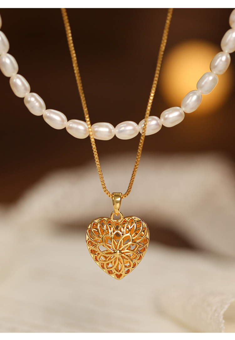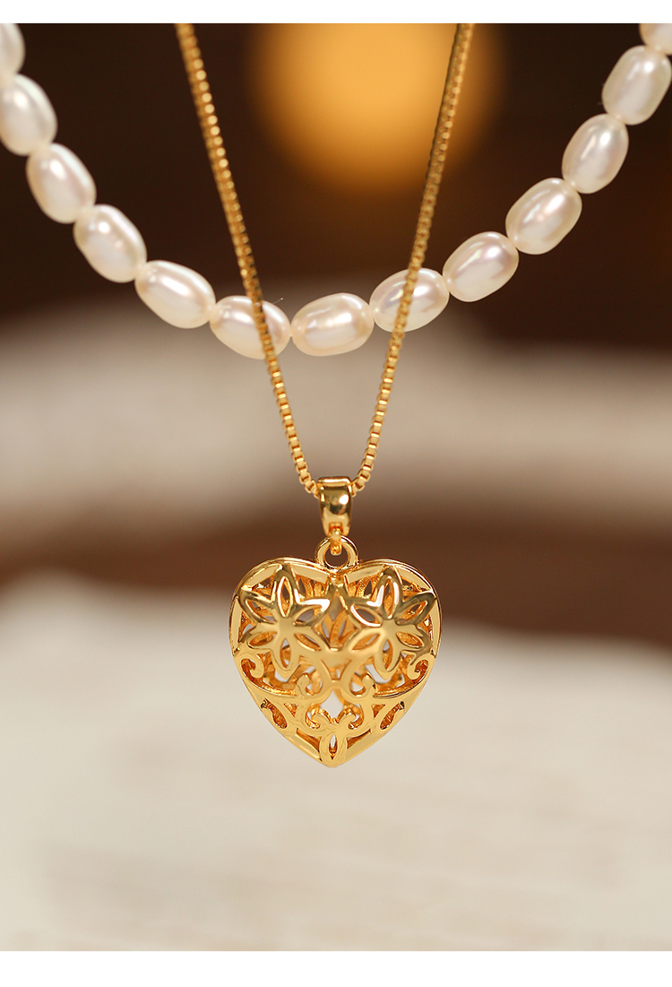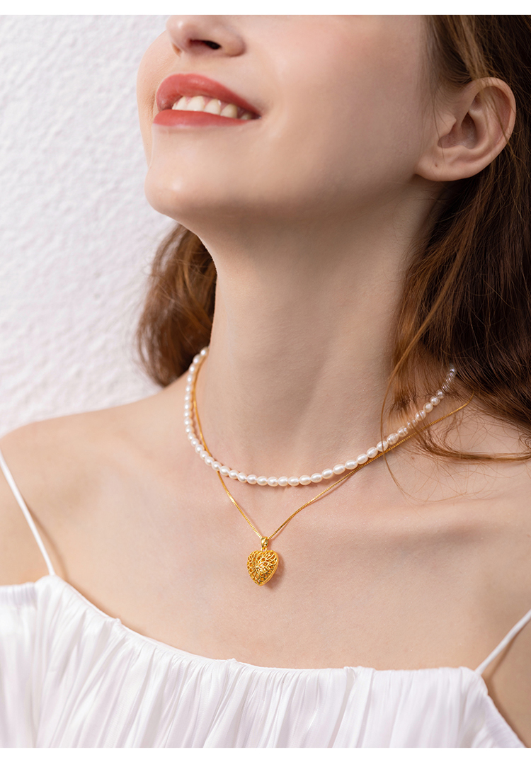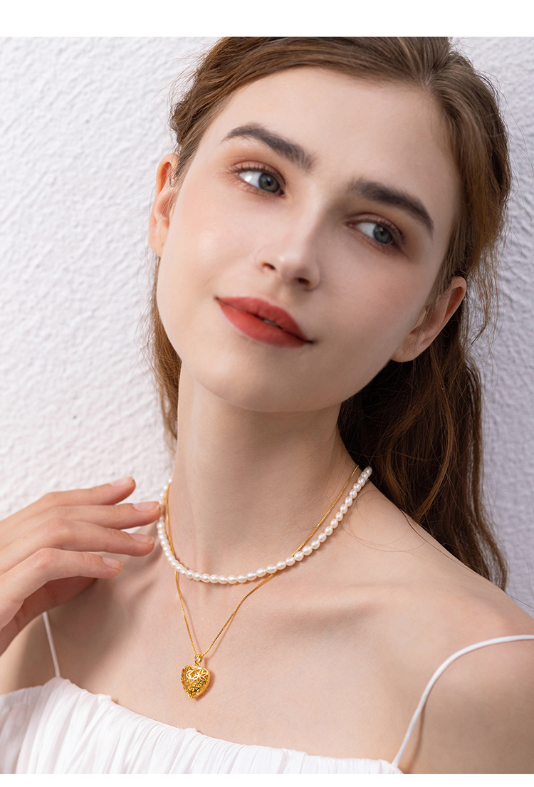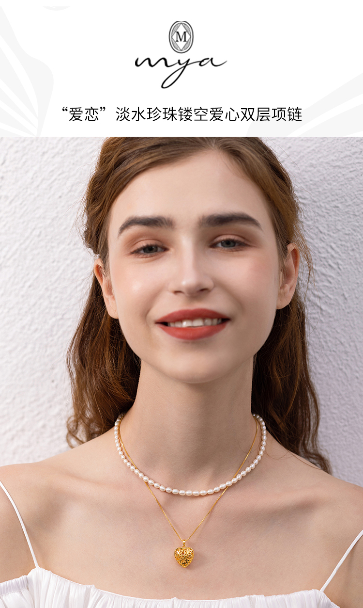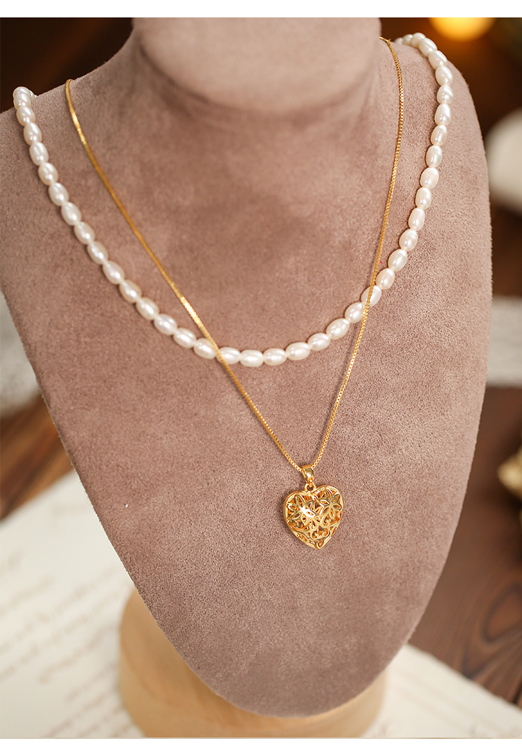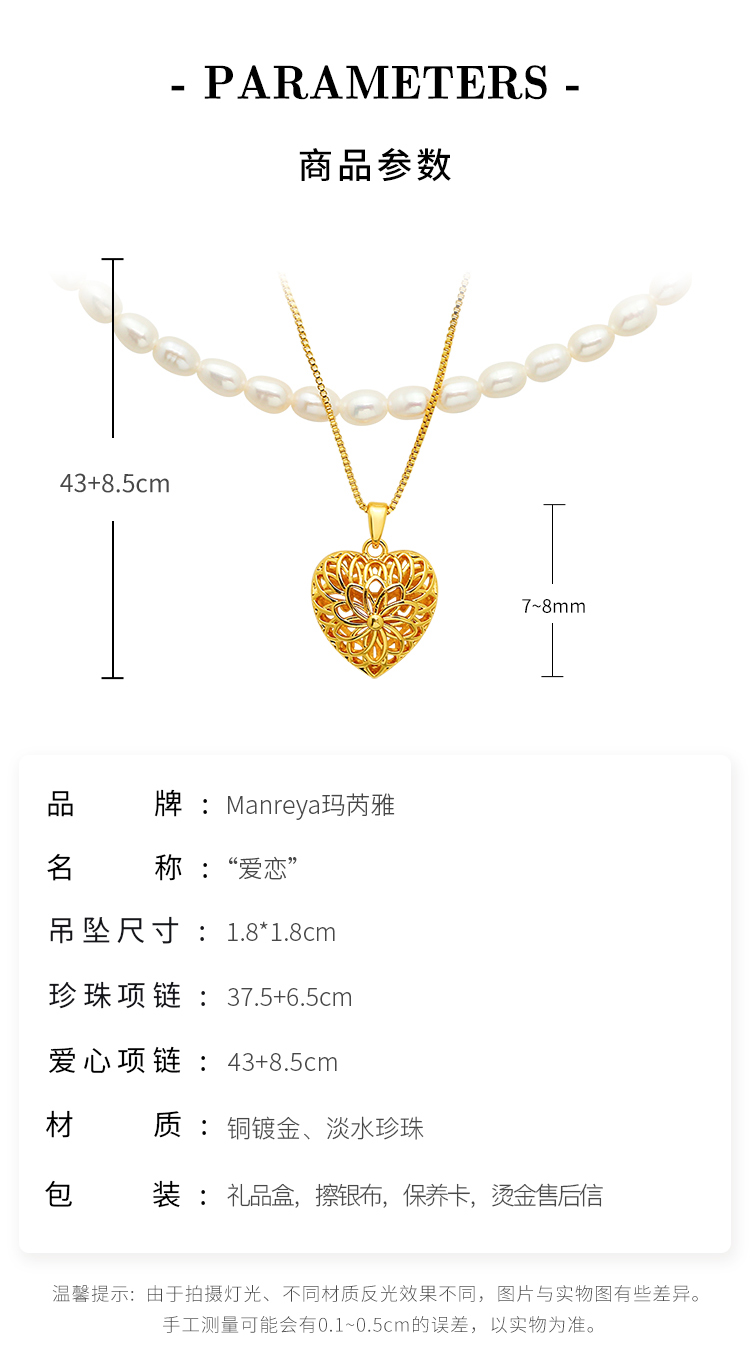 Manreya玛芮雅「以爱之名-爱恋」淡水珍珠镂空爱心双层项链