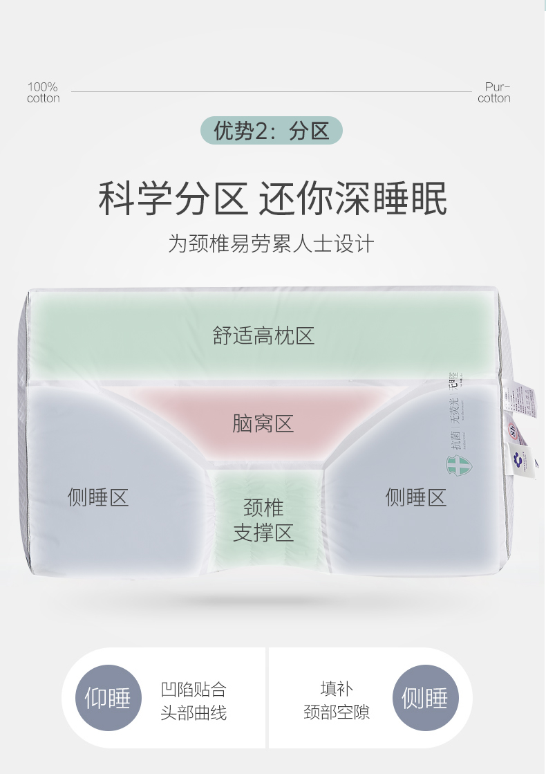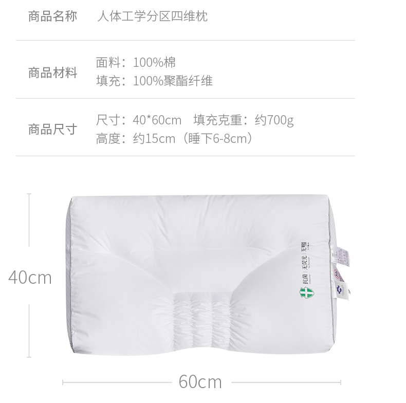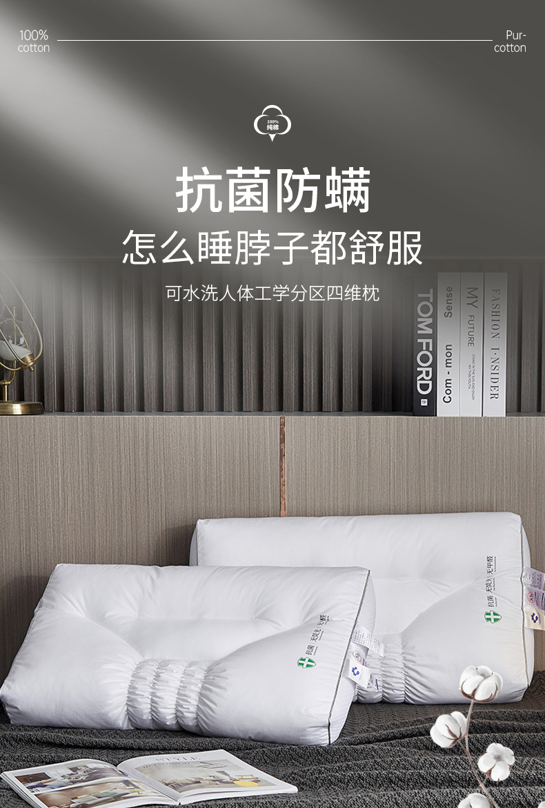 自然醒可水洗人体工学分区四维枕超柔助深睡眠枕头枕芯家用一对护颈椎睡觉专用酒店低枕头男XK