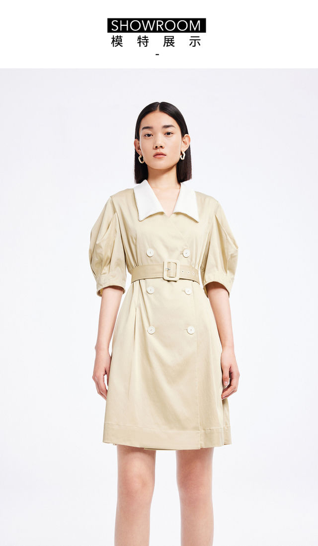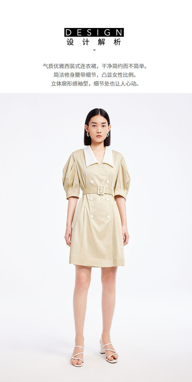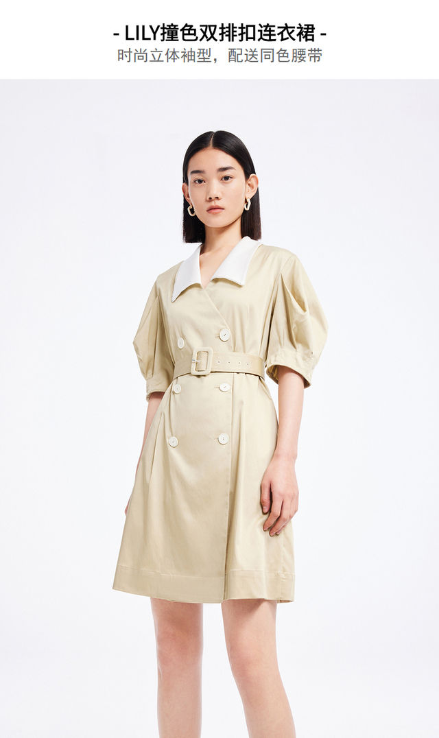 LILY2022夏新款女装气质通勤款别致撞色西装式连衣裙122240C7599